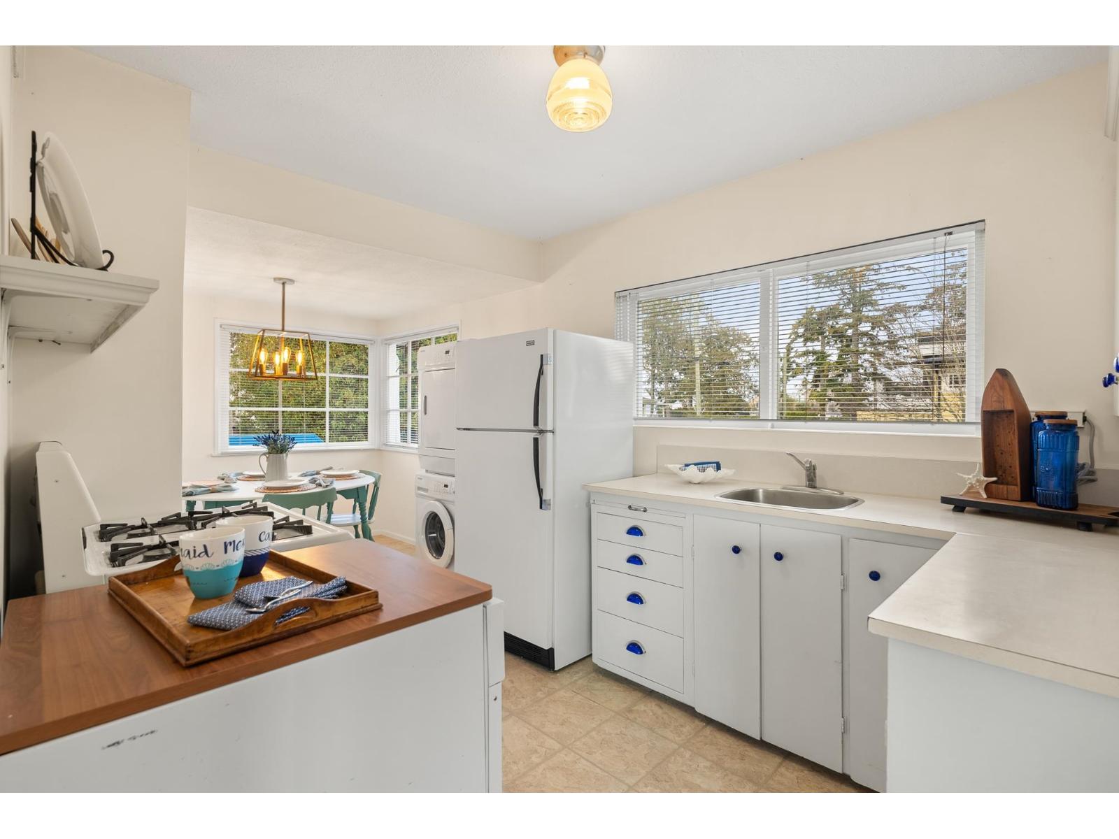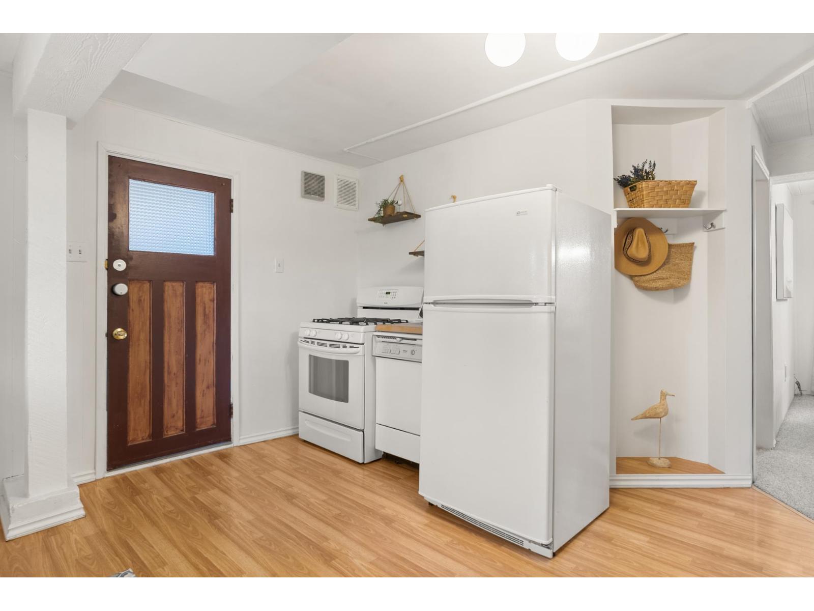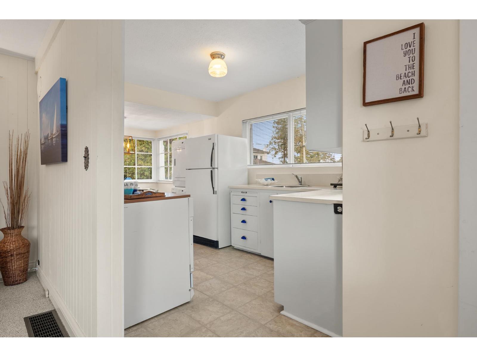 This 2-level home captures the essence of the Crescent Beach lifestyle. It offers two distinct living spaces with separate entrances-ideal for investment, holding or building, extended family, or making it your primary home while exploring the idea of an Airbnb on one level-so many possibilities. The bright upper level features a kitchen, spacious living room, 2 BDs, 1 BA, laundry, and a back deck perfect for morning coffee or sunsets. The character-filled lower level boasts a kitchen, dining/living room with a fireplace, 2 BDs, 1 BA, and a laundry room. Situated on a prime 6,000 SF lot with lane access, ample parking, a west-facing fenced backyard, 2 patios, and a wired work shed. Through the back gate, you're steps from the ocean, promenade, and all this vibrant seaside community offers. (id:52823)