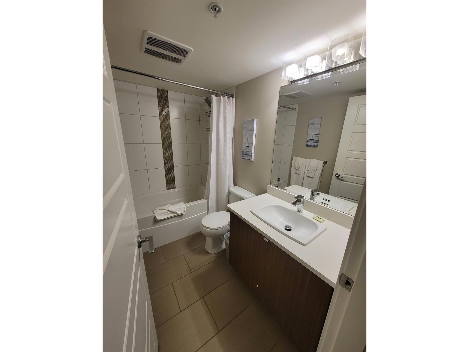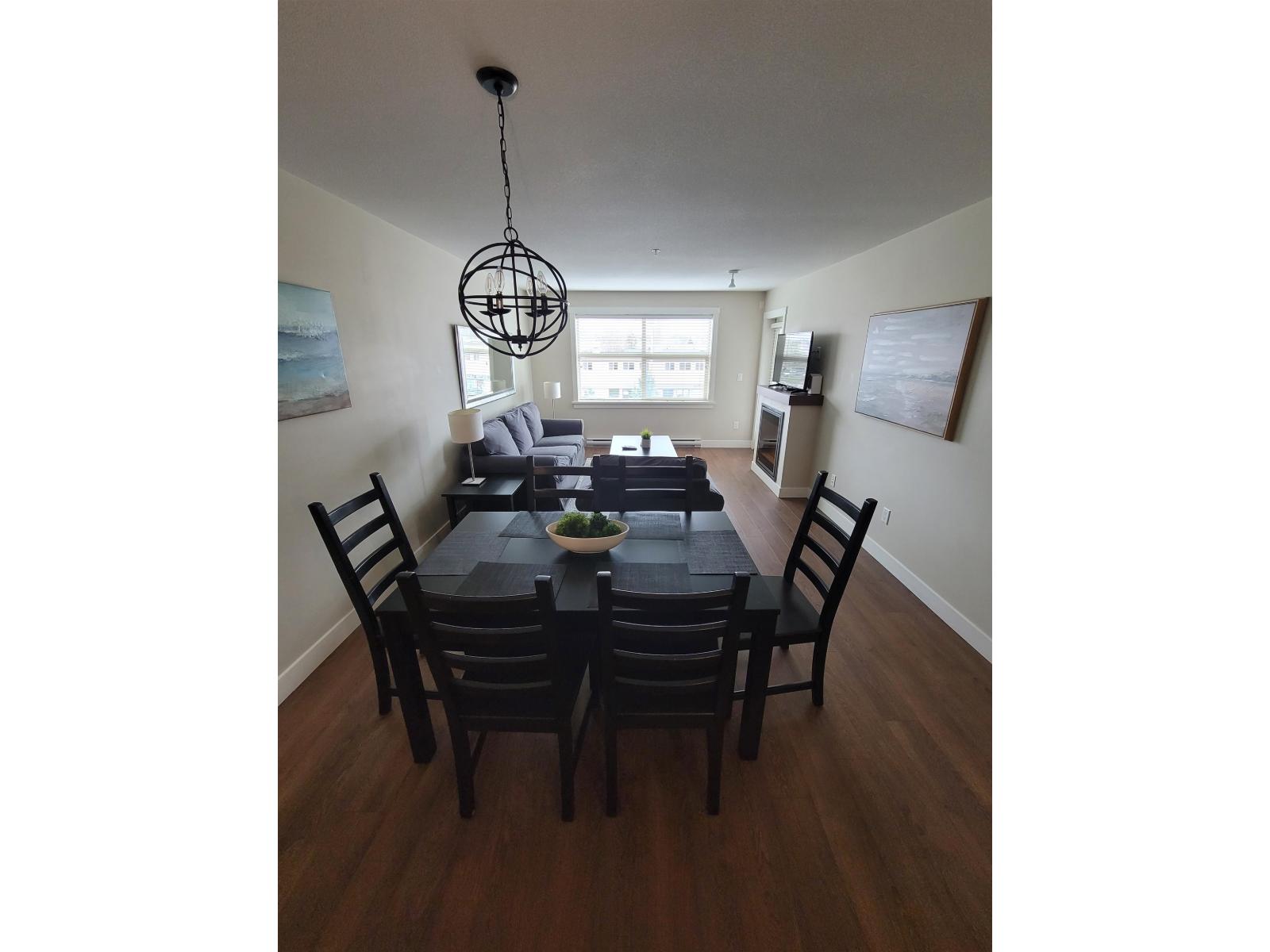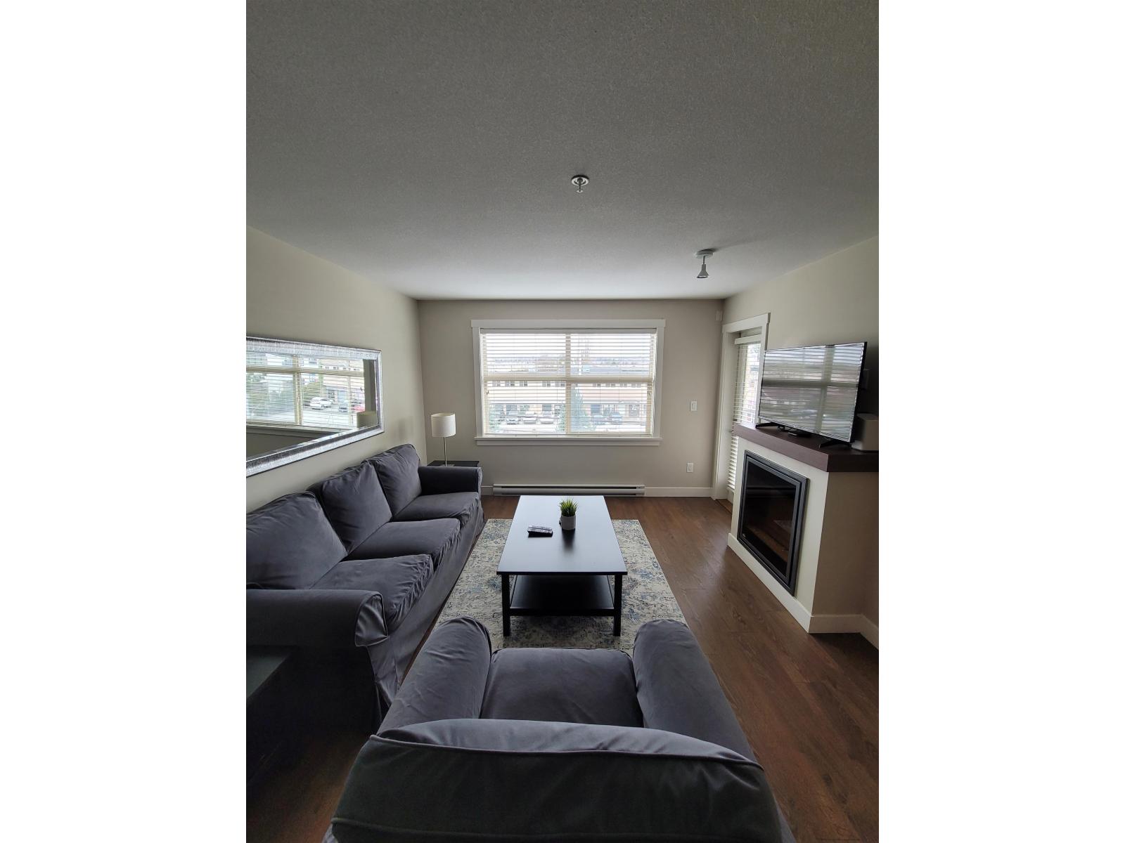 Fully Furnished 1000 square feet condo is located in fantastic location in Langley at Bearing Pointe! Walking distance to 200th street and a 5 min drive to Willowbrook Mall! Functional open floor plan features a gourmet kitchen with sleek stainless steel appliances, contemporary full wrap cabinets and under cabinet lighting. Good size living/dining area perfect for entertaining with a built-in fireplace & access to covered deck. Stacked front loading washer-dryer nicely tucked away out of sight w/ extra storage space. Utilities not included, No Pets Please. Features: 1 Living Room 1 Kitchen 2 Bedrooms 2 Bathrooms What else is included: - Fridge / Stove/dishwasher - Washer/Dryer - 1 underground parking spot. (id:52823)