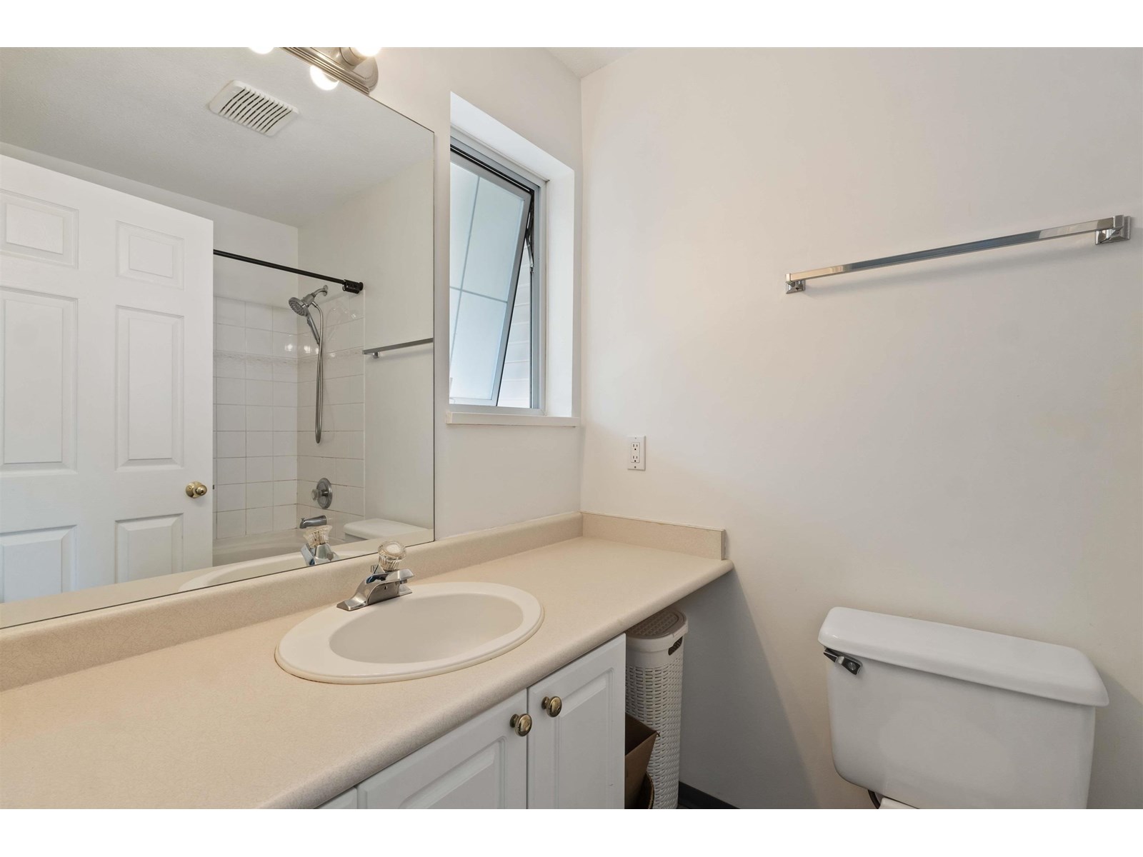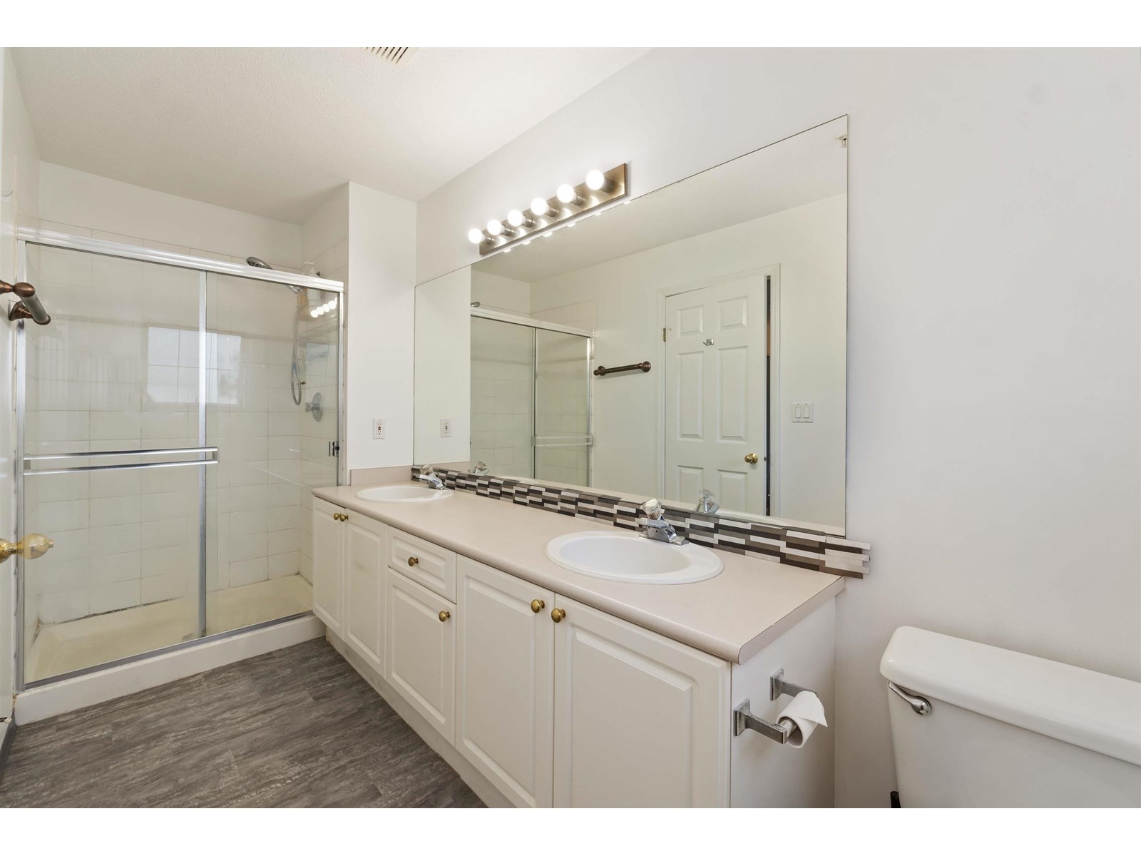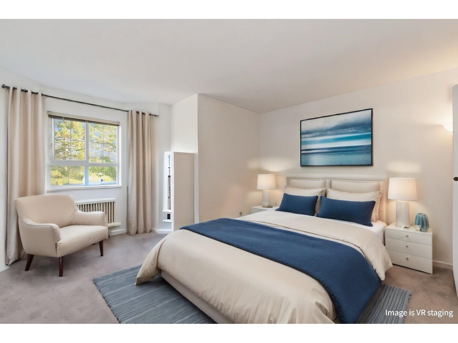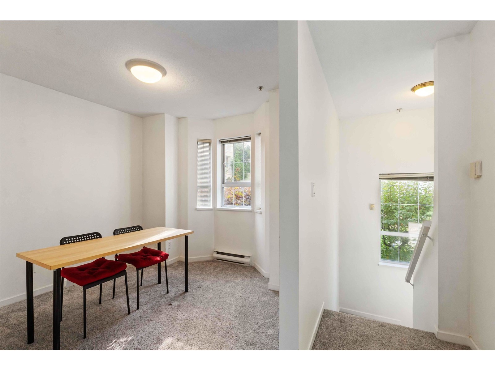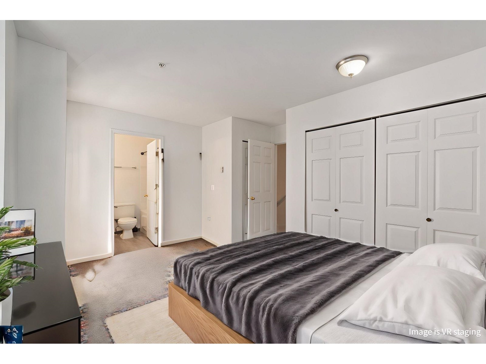 $696.45 MonthlyRARE opportunity to own a top floor townhouse in the established community of Georgian Gardens. Painted top to bottom & most all NEW FLOORING in 2023. This two levels south/north facing unit with gorgeous, sunny, spacious, good layout is being offered generous-sized living room for entertaining, kitchen & eating area with bay window & a 2 piece bathroom with laundry on the main floor. Upstairs are two large ENSUITE bedrooms. Enjoy your morning coffee while relaxing on your quiet, private terrace with a beautiful garden aspect. How nice is that! Two parking stalls & a locker. There is an exercise room & lounge. only steps away from Guildford Recreation Centre, Guildford Mall, all restaurants, and the transit. Ideal starter home or investment. (id:52823)