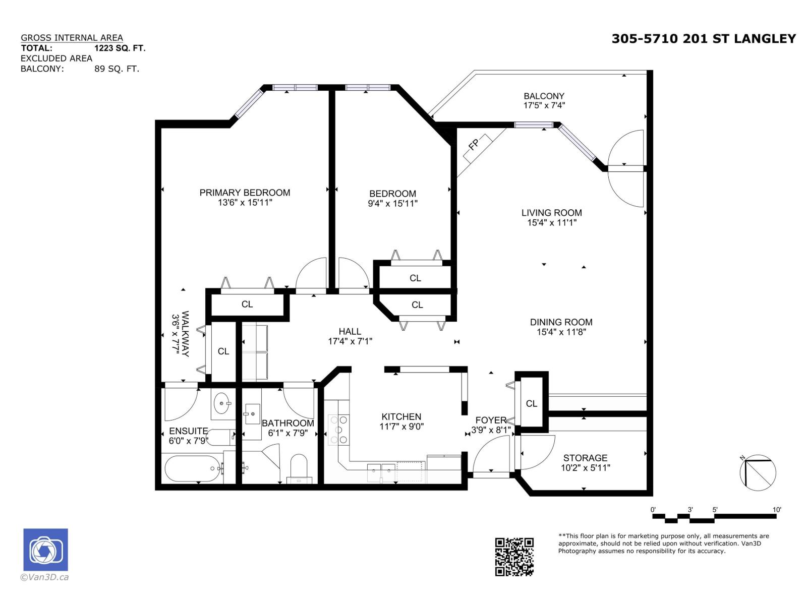 $404.04 MonthlyWelcome to White Oaks - Penthouse Living! Rarely available 1,223 SF top-floor suite featuring 2 Bedrooms + Den & 2 Full Bathrooms. Bright, spacious layout with laminate flooring, updated bathrooms including jacuzzi tub, crown moulding, stainless steel appliances, cozy fireplace & large living/dining area perfect for entertaining. Massive den makes an ideal home office, guest room or extra storage. Enjoy your 72 SF private balcony, 1 parking & 1 locker. Well-managed, pet-friendly building (dogs & cats welcome) with plenty of visitor parking & LOW STRATA FEE. Located on a quiet cul-de-sac yet just steps to Fraser Highway & under a 10-min walk to the future Langley City Centre SkyTrain Station. A rare find offering incredible space, comfort & convenience! (id:52823)