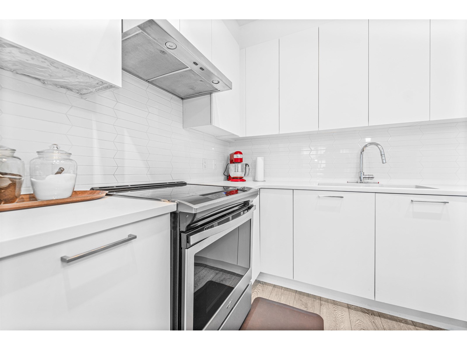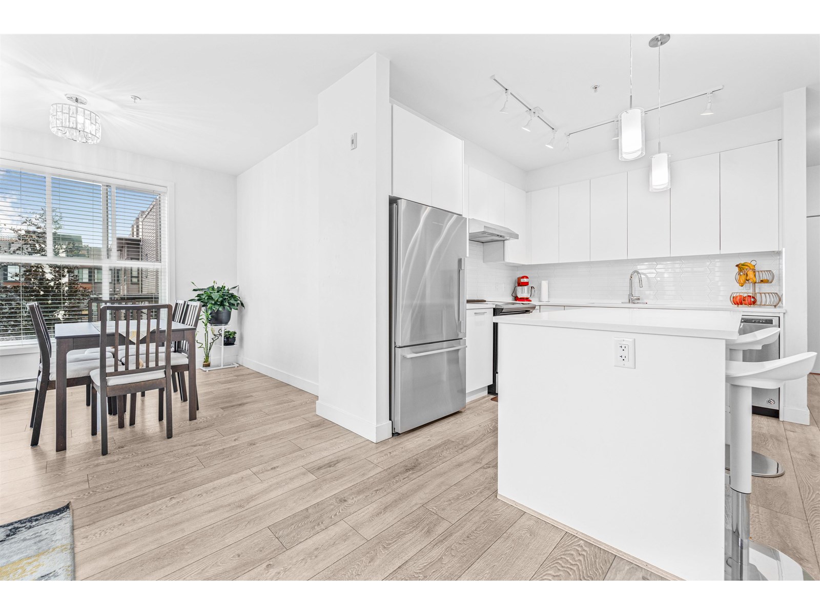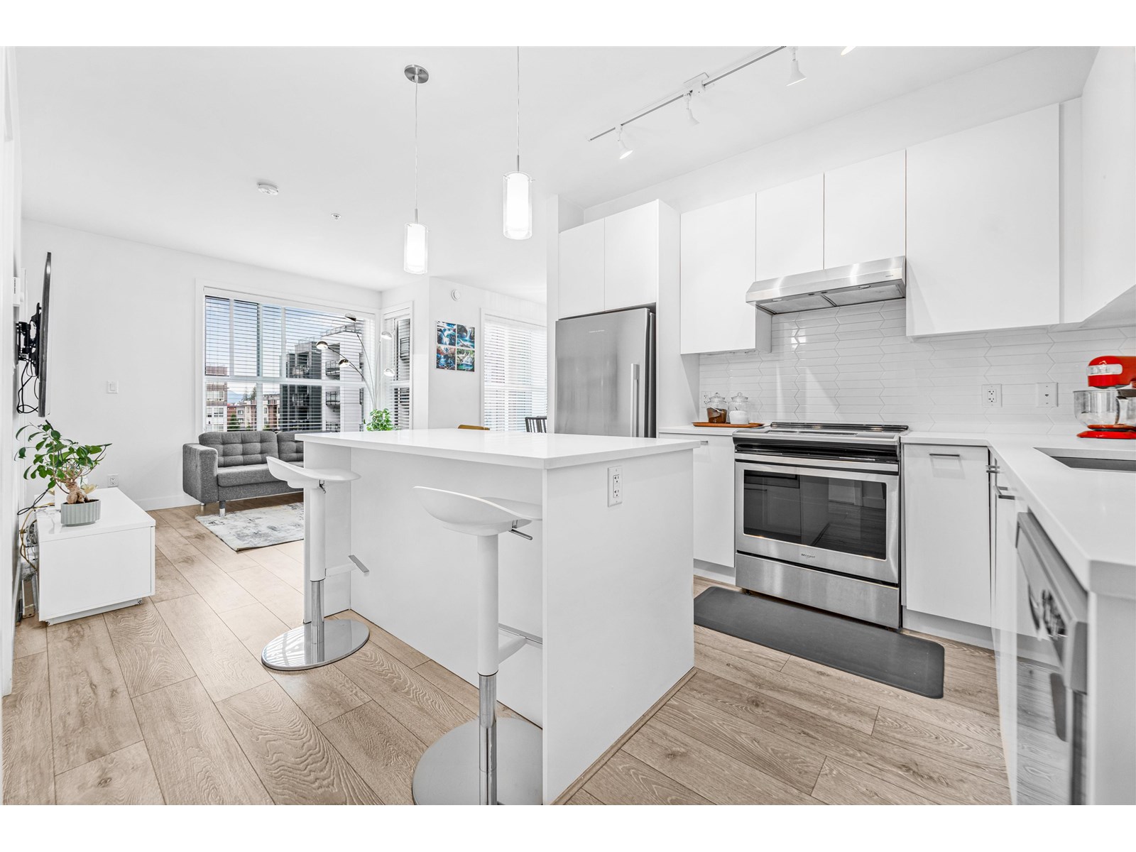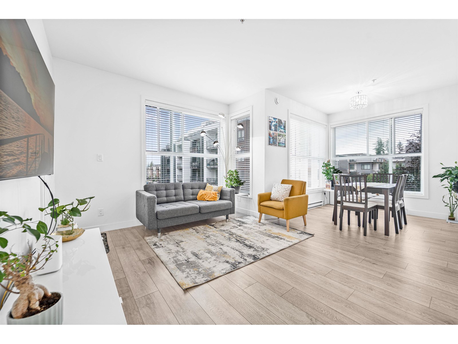$383.68 MonthlyWelcome to this bright and spacious 2 Bed, 2 Bath condo in the heart of Willoughby! This thoughtfully laid-out home boasts 11' vaulted ceilings, a functional open concept floorplan, and oversized windows that flood the space with natural light. The stylish kitchen features quartz countertops, stainless steel appliances, and plenty of cabinetry for all your storage needs. Enjoy the generous living and dining area, perfect for entertaining or cozy nights in. The bedrooms are located on opposite ends for enhanced privacy, ideal for families or roommates. Step outside to a covered balcony, a great spot to relax. Located just steps from Willoughby Town Centre, close to Hwy 1, Carvolth Exchange, schools, parks, and more. Includes 2 side-by-side parking stalls and a large storage locker. (id:52823)