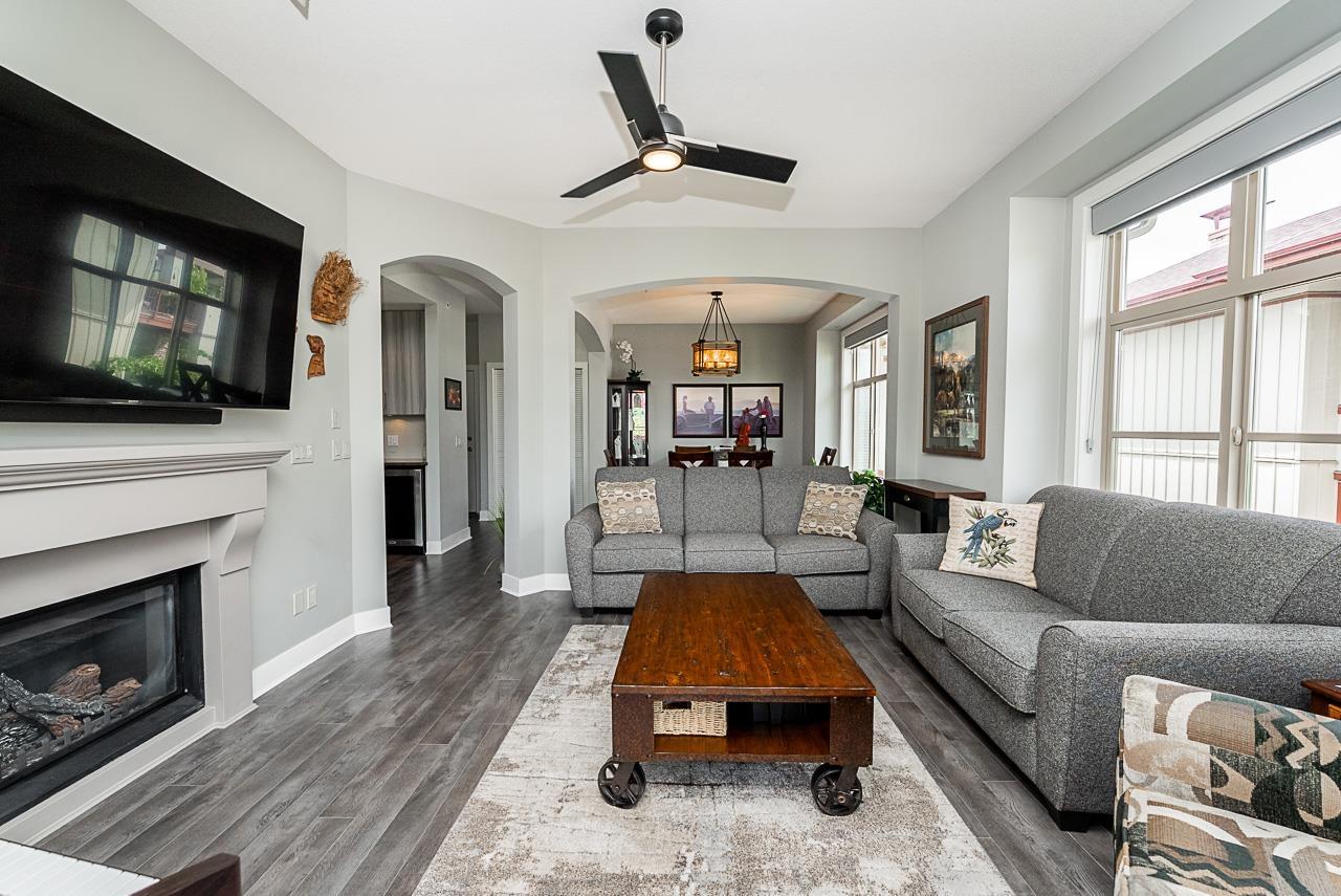 $798.64 MonthlyPremier top-floor corner penthouse in St. Andrews with unrivaled Northview Golf Course & mountain views, Open-concept with 14 ft. ceilings in living room, flooding in light. Features 2 beds, den, 2 baths, spacious master with huge walk-in closet & ensuite with shower,double sinks. New hardwood (2 yrs), updated appliances incl. washer/dryer (2 yrs), refaced cabinets, remote electric blinds, granite counters, double gas fireplace, radiant in-floor heat(incl. in fees), 5 new ceiling fans, freshly repainted.Massive 400 sq ft wraparound balcony with master bedroom access, door & phantom screen. Resort amenities: pool, hot tub, sauna, theater, library, pub-style lounge with pool table & TVs. Large laundry with ample storage, 2 side-by-side parking, large storage room outside unit. Move-in ready! (id:52823)