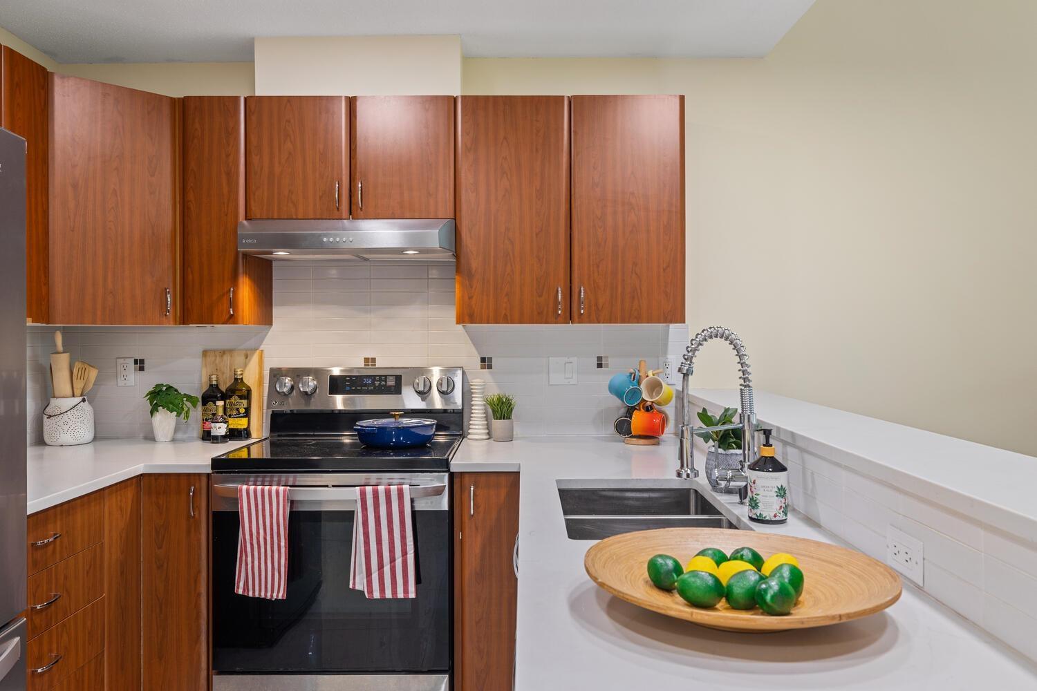 $263.76 MonthlyWelcome to Reviva, a well-managed community in the heart of Guildford! This bright and spacious 1-bedroom condo features an open layout with high ceilings, cozy living area, and private balcony for your morning coffee. The generous bedroom fits a king-size bed, while a built-in workstation offers the perfect space to work or study from home. Added perks include in-suite laundry, a storage locker, and 1 secure parking stall. A new roof in 2022, new paint and newer appliances and updates, plus access to EV charging - are all bonuses for future living. Just steps to Guildford Town Centre, T&T, Landmark Cinemas, schools, parks, and transit, with quick access to Hwy 1. Affordable, central, and move-in ready! (id:52823)
