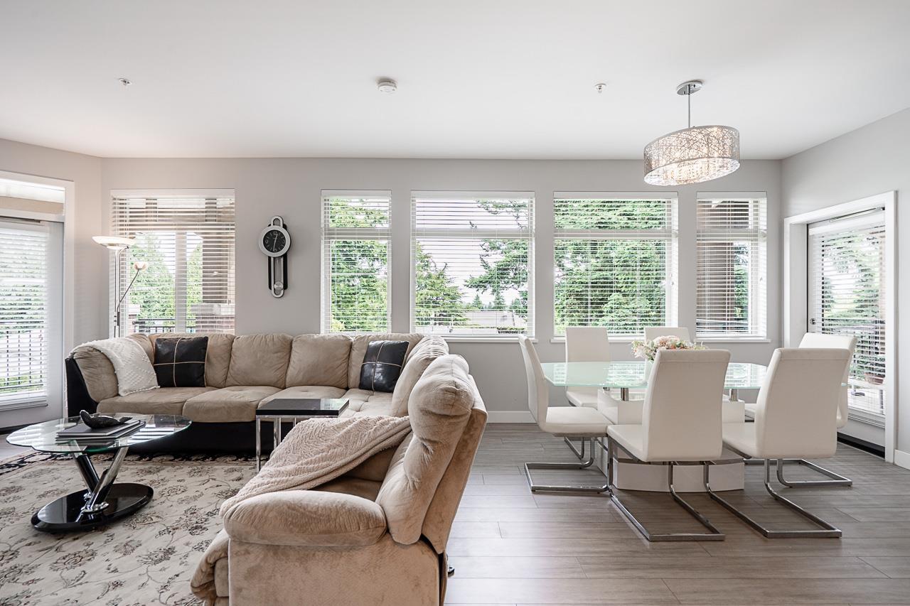 $546.77 MonthlyLuxury Living at Adagio II - 1,200 sf corner condo in South Surrey where sophisticated design meets everyday comfort. Situated on the preferred northeast corner of the building, this bright and airy 2-bed + den, 2-bath home offers open-concept living with exceptional privacy. Enjoy year-round entertaining and relaxation with two large covered patios that extend your living space. The stylish kitchen opens to a spacious living and dining area, perfect for gatherings or quiet evenings at home and the large windows fill the space with natural light. Resort-style amenities including a clubhouse with full kitchen, pool table, a fitness centre with steam room, and a quaint courtyard to unwind - nearby golf courses, shopping, transit and beach. (id:52823)