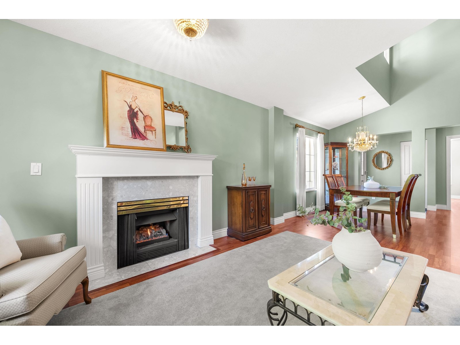 $399.20 MonthlyWelcome to this spacious DUPLEX style RANCHER in Stonecroft built by Polygon! This END unit offers over 1,500 sq/ft of living space with 2 bedrooms & 2 baths. Enter into the foyer where you are greeted by over height ceilings in the large dining area which leads to the living room with vaulted ceilings & cozy gas fireplace. The kitchen leads to an eating area & family room with another gas fireplace & access to the peaceful back patio backing onto a huge GREEN SPACE, perfect for the grandkids to play! The large primary bedroom features a W/I closet, ensuite with double sink, shower & bathtub! Good sized second bedroom & family bathroom w/tub. Bonus 4 parking! 2 in the over height garage (Perfect for storage) & 2 more on the pad in front! Amazing 55+ complex with a great community & strata! (id:52823)