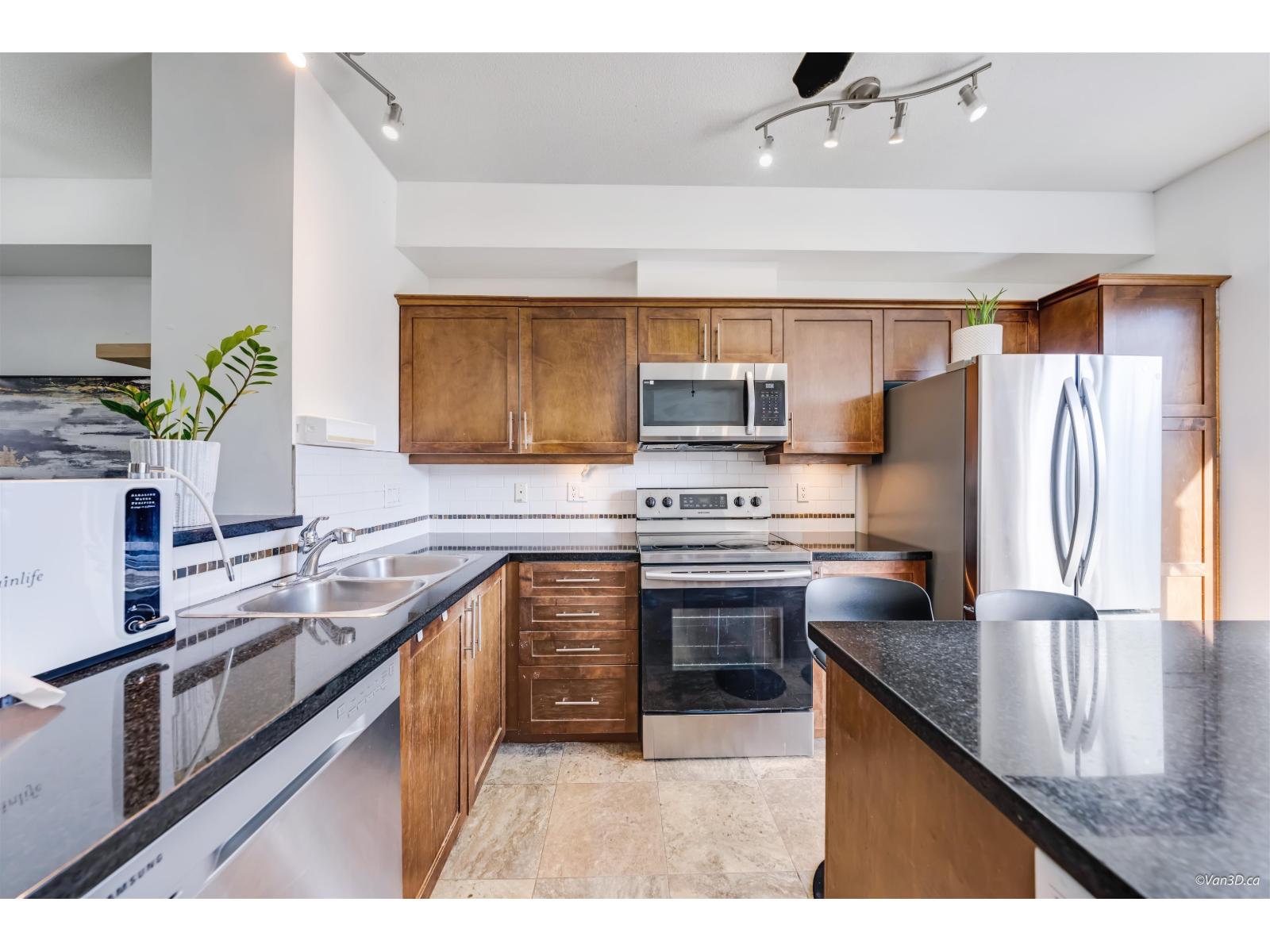 $481.04 MonthlyUnit 31 offers a unique location within the complex with SW exposure from the sundeck, overlooking open yards and no through traffic. Enjoy 3 bedrooms up plus a versatile flex room below-perfect for an additional bedroom or office. The main floor features 9' ceilings, laminate flooring, and a bright open living/dining area with a cozy gas fireplace. The kitchen is designed for cooks, showcasing granite countertops, stainless steel appliances, and a granite island with bar seating. Upstairs, the spacious primary bedroom includes his-and-hers closets and a double-sink ensuite. Oversized tandem garage. Steps to greenspace and just minutes to shopping, schools, and transit in Langley and close to future skytrain station. Quick possession (id:52823)