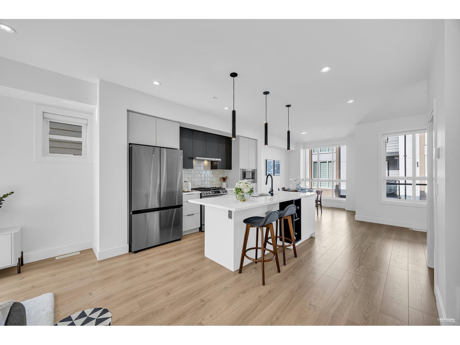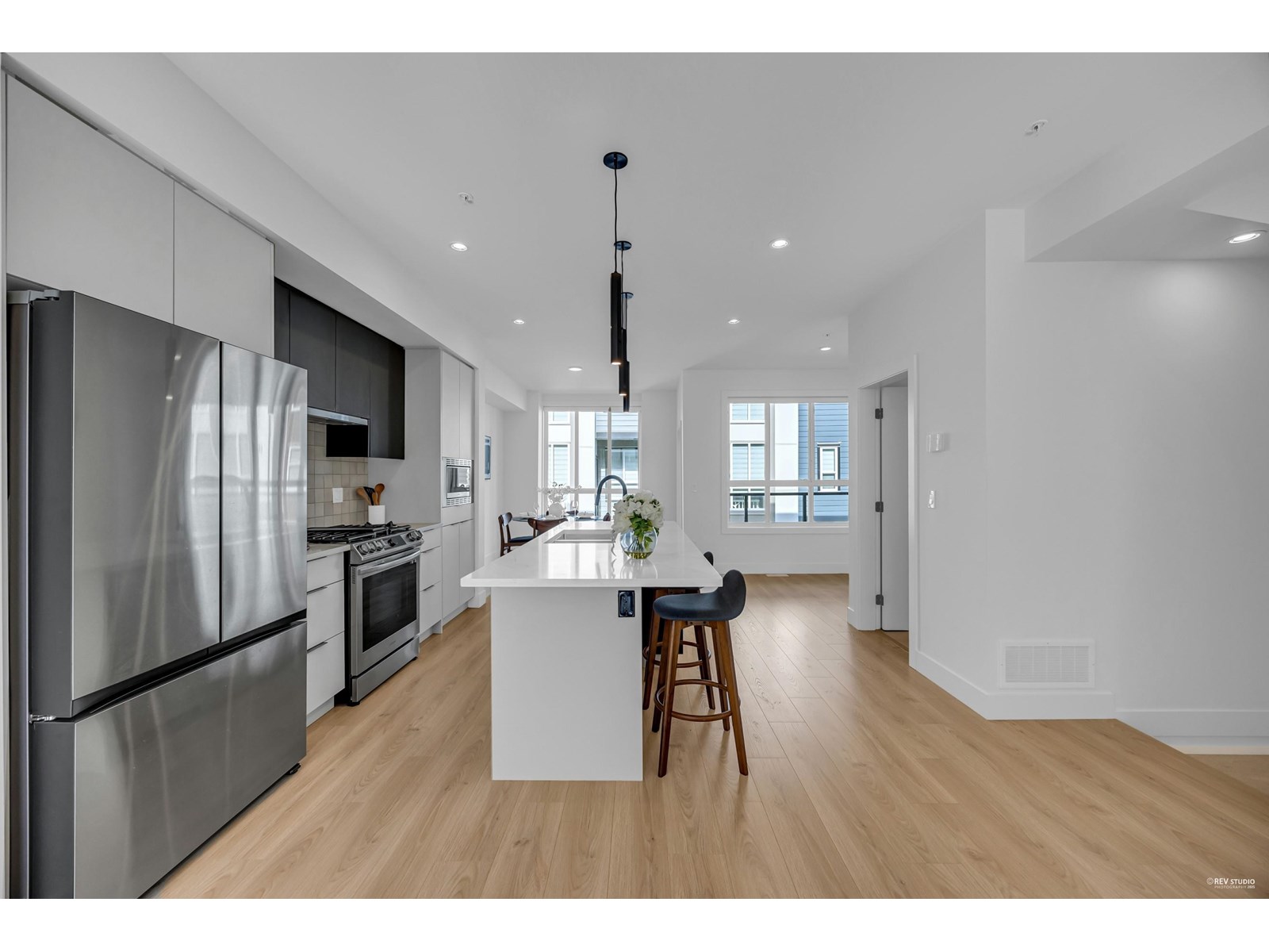 $220.95 MonthlyWelcome to Union - the latest in luxury townhomes in Willoughby. This almost-new, meticulously maintained 4-bedroom townhome feels like new. it boasts a prime location minute from Willoughby Town Centre. The expansive floor plan includes 4 bedrooms and 2.5 bathrooms, 1 flex, featuring a large primary suite with vaulted ceilings. Enjoy a double side-by-side garage with a 220-volt outlet for EV charging, forced air heating, on-demand hot water, stainless steel appliances, a gas stove, and A/C. With low strata fees, EV readiness, top-quality construction, and an ideal location close to HWY-1, shopping, and restaurants, this townhome offers everything you need. (id:52823)