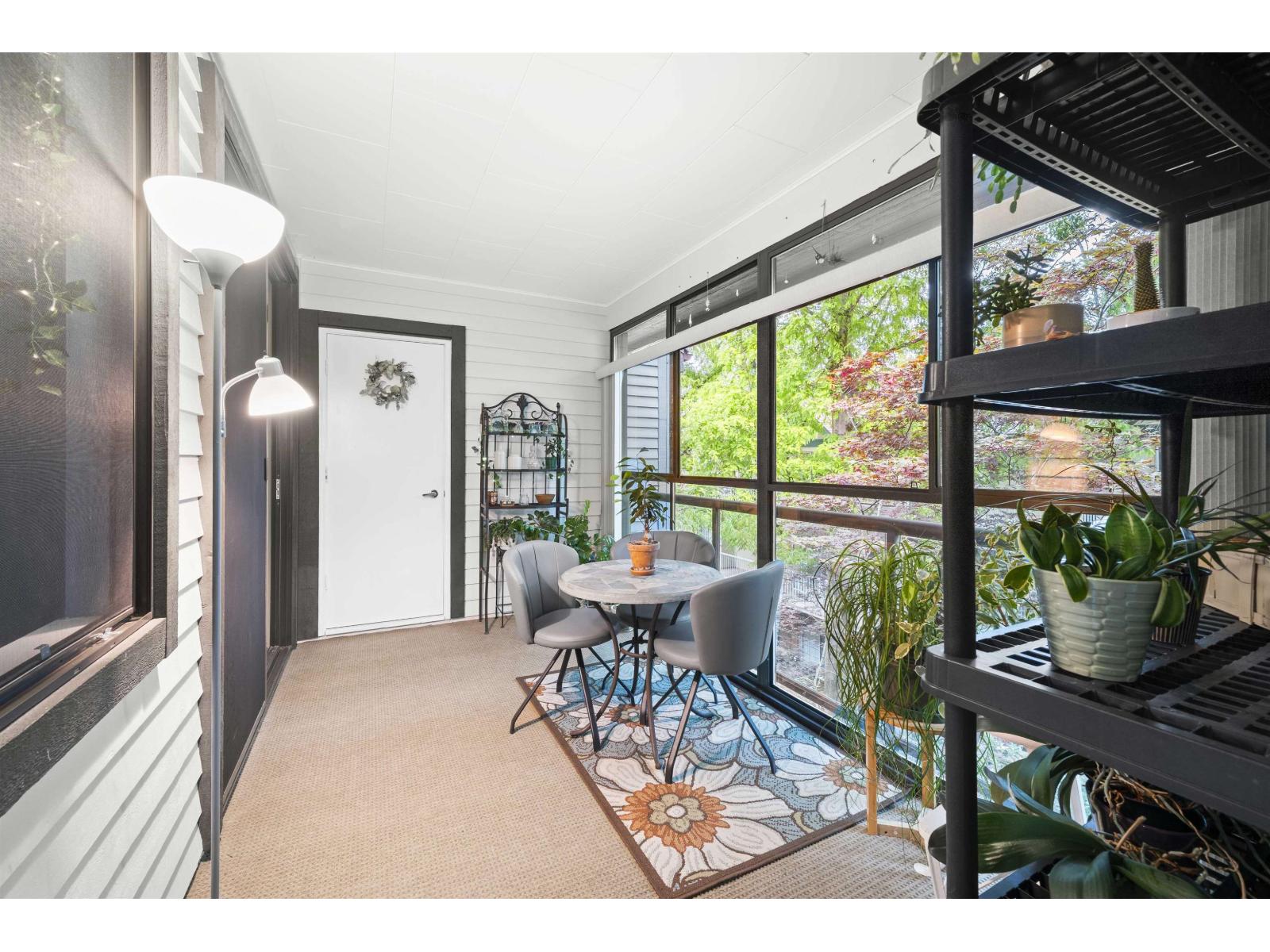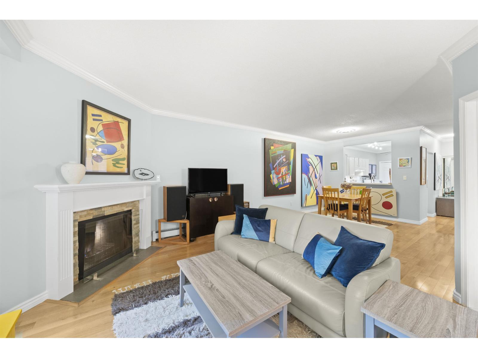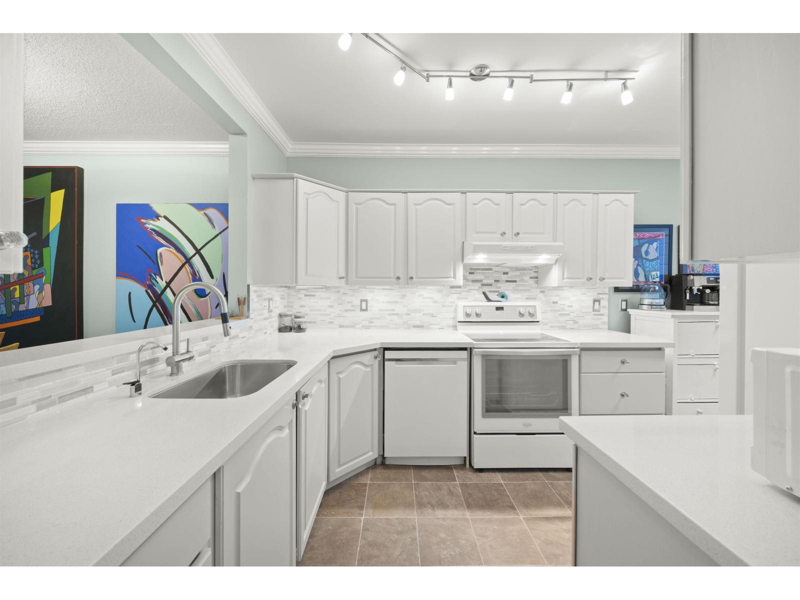 $631.77 MonthlyPENTHOUSE CONDO - Spacious and beautifully updated 2 bed, 2 bathroom, 1,410 SF home in quiet, central Cambridge II, a well-maintained complex. This move-in ready suite offers skylights for natural light, warm hardwood floors, fresh paint & updated kitchen. Excellent floor plan with generous rooms: the living room has a cozy gas fireplace & sliders to the solarium, perfect for year-round living. Large primary bedroom features a fabulous walk-in closet and ensuite with tub & separate shower. Bonus storage in laundry room, flex room, and solarium with a large locker area. Fees include secure parking, gas, heat, hot water, workshop & amenities room. No age restrictions. Walk to Semiahmoo Mall, library, recreation, transit & hospital. South Surrey living, minutes to the Highway, beach & border. (id:52823)