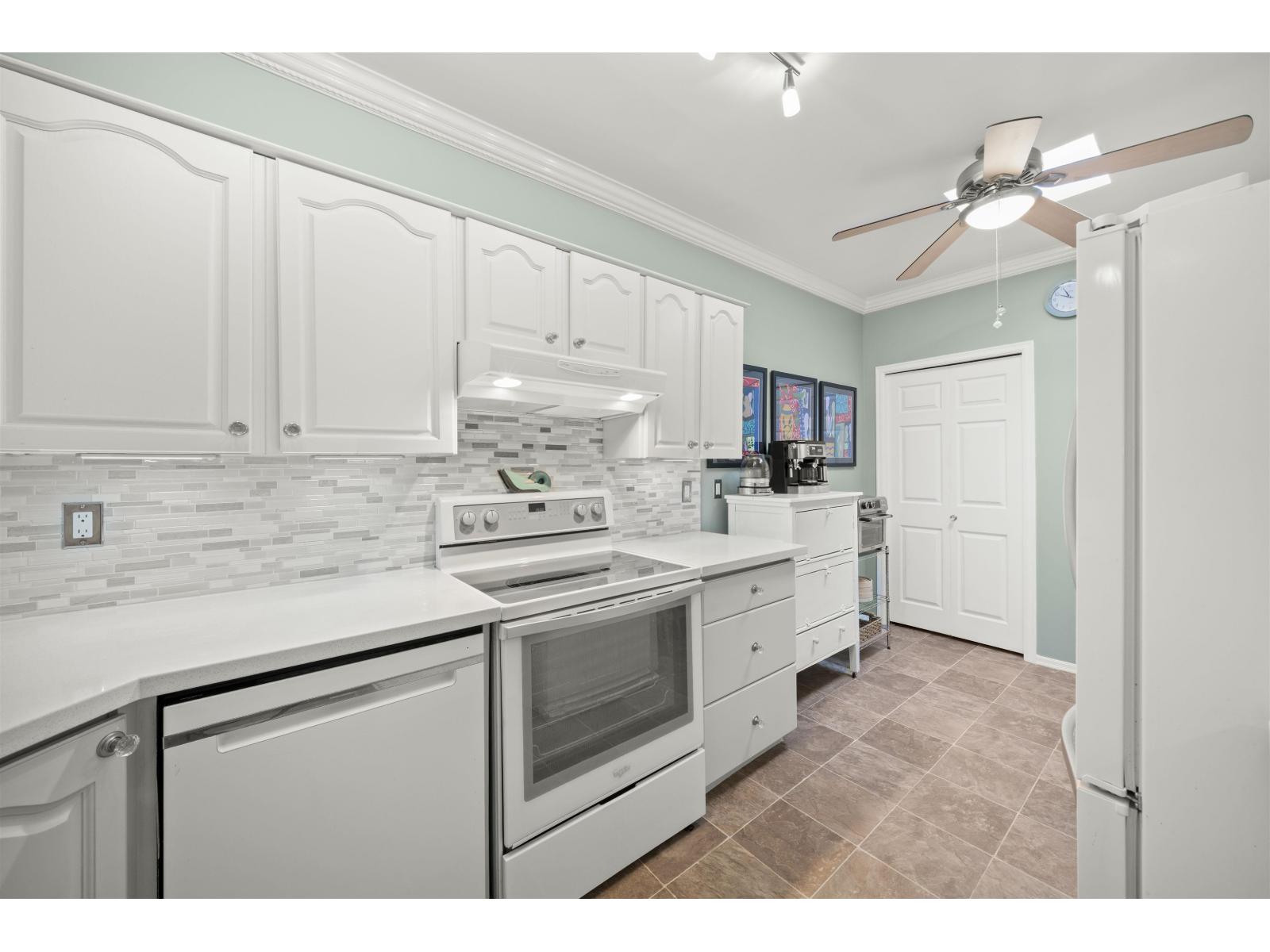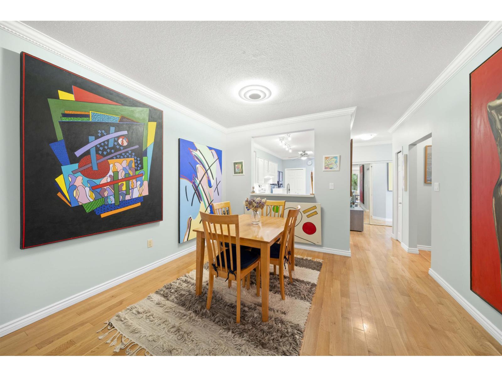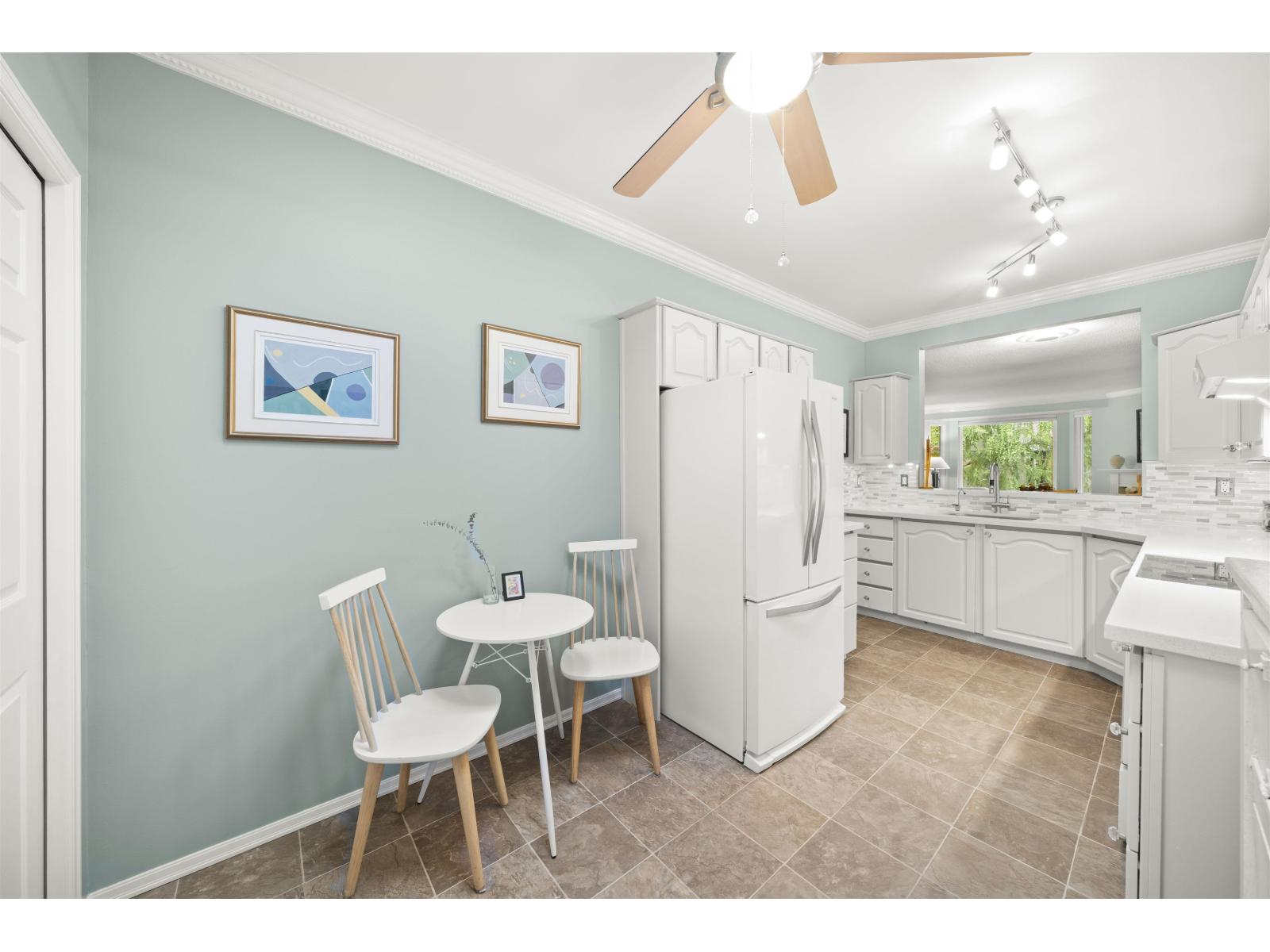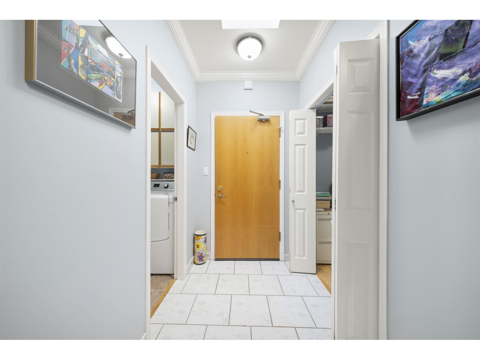 $631.77 MonthlyPENTHOUSE CONDO - Spacious and beautifully updated 2 bed, 2 bathroom, 1,410 SF home in quiet, central Cambridge II, a well-maintained complex. This move-in ready suite offers skylights for natural light, warm hardwood floors, fresh paint & updated kitchen. Excellent floor plan with generous rooms: the living room has a cozy gas fireplace & sliders to the solarium, perfect for year-round living. Large primary bedroom features a fabulous walk-in closet and ensuite with tub & separate shower. Bonus storage in laundry room, flex room, and solarium with a large locker area. Fees include secure parking, gas, heat, hot water, workshop & amenities room. No age restrictions. Walk to Semiahmoo Mall, library, recreation, transit & hospital. South Surrey living, minutes to the Highway, beach & border. (id:52823)