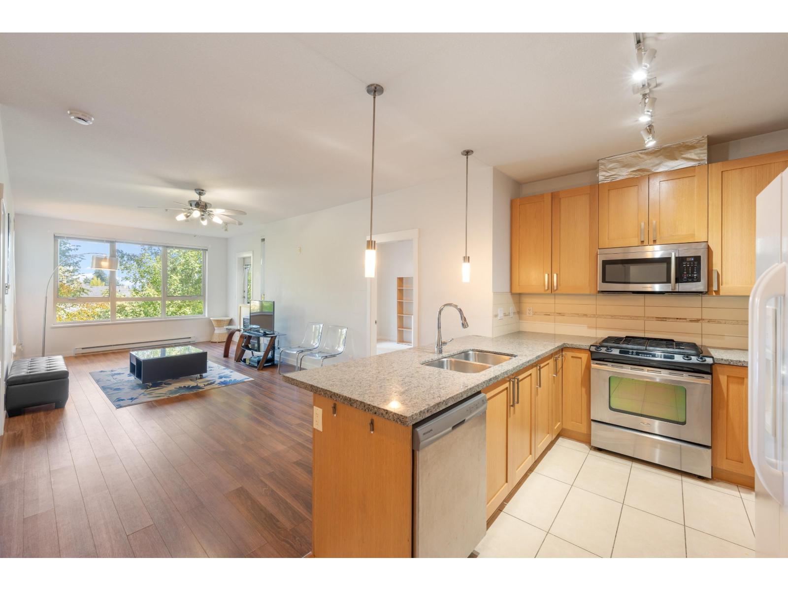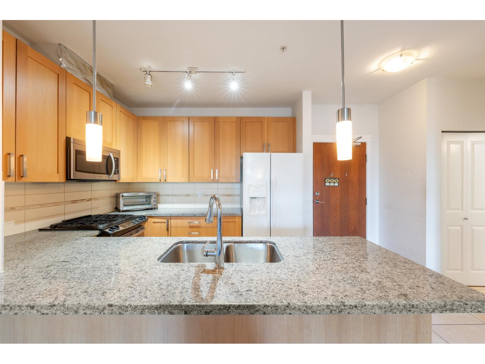 $547 MonthlyEnjoy stunning views of the North Shore Mountains from famous developer Polygon, this bright and spacious upper unit featuring an open layout, granite counters, stainless steel appliances, and soaring ceilings. Perfectly located within walking distance to shopping, southridge private school,transit, and big box stores, this well-managed complex offers resort-style amenities including a swimming pool, hot tub, fitness centre, children's play areas (indoor and outdoor)a lounge with kitchen and bar for private gatherings, a boardroom for business meetings, secure underground parking, bike storage, a storage locker, and plenty of visitor parking-making this an exceptional home in a sought-after community.1parking 1 locker included (id:52823)