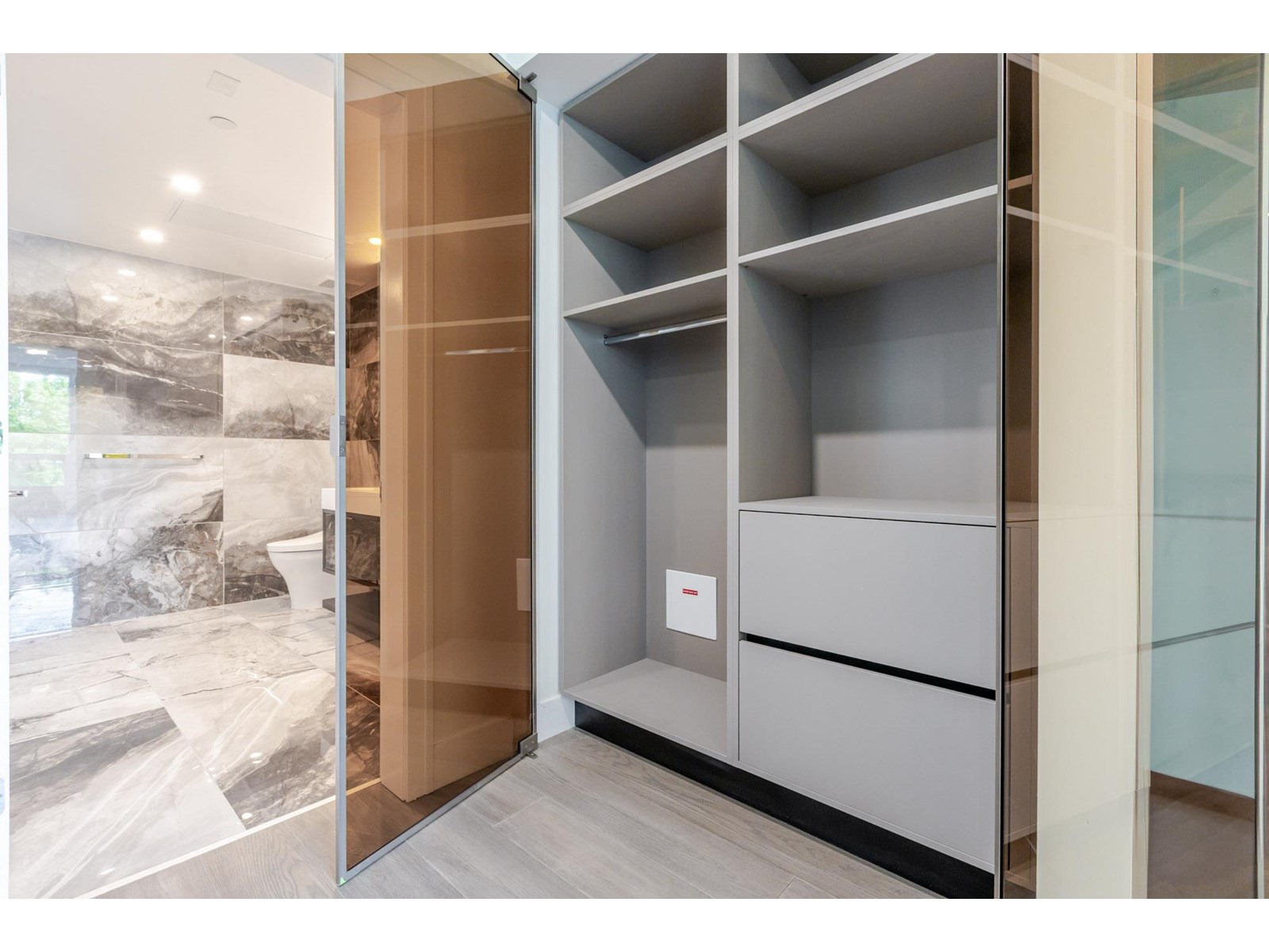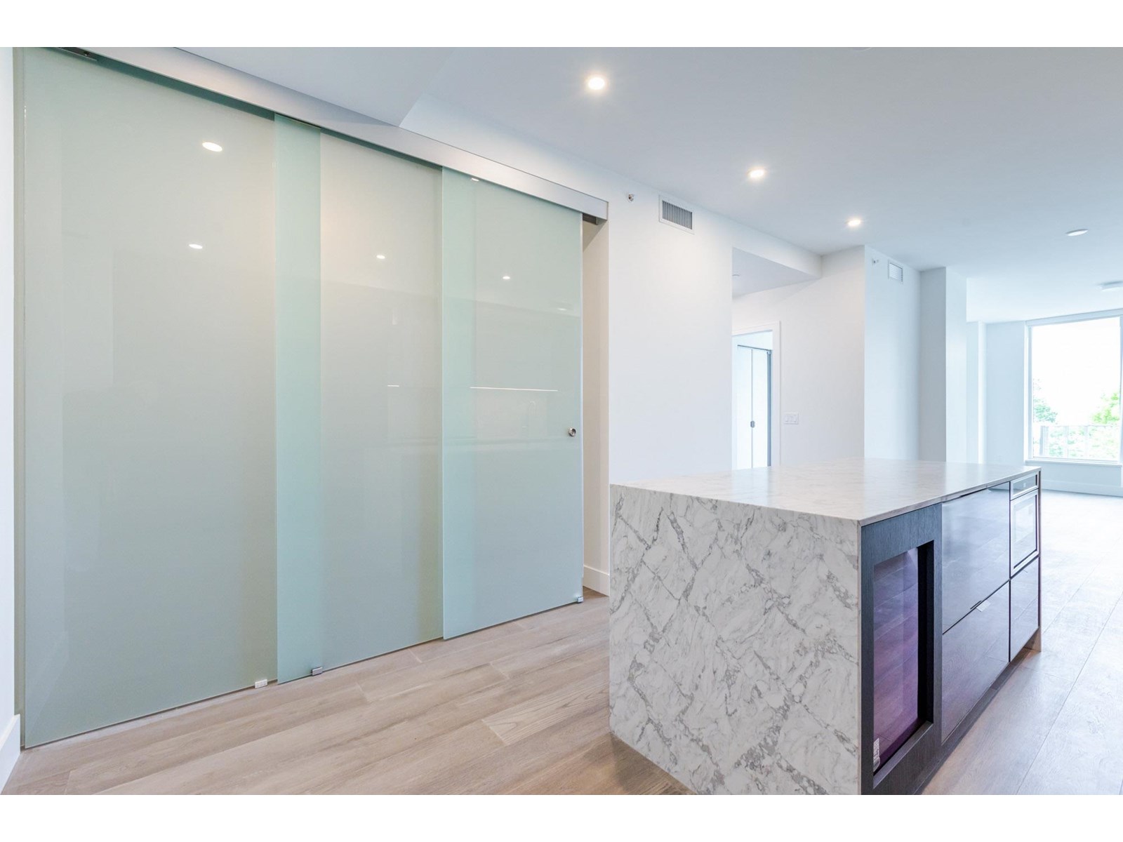 $901.54 MonthlyMonaco, White Rock's newest and most prestigious high rise. Ocean View home has it all from 18' gourmet kitchen featuring Thermador. Built in appliances from the fridge, cooktop, wine fridge, microwave, and oven. Cabinets feature pull outs everywhere. Master suite is large with massive closet space and more built ins. Ensuite is tiled to the ceiling, recessed mirrors, shelving, bidet, and heated floors. Flex space could be set up as a dining room or 3rd bedroom. Secondary bedroom is bright large and has loads of closet space. 2 Parking spaces (one with EV roughed in) storage locker. Air conditioned and ready to move in. There are 2 common social areas for entertaining a complete lounge area with kitchen and a 5th floor outdoor oasis including BBQ and Panoramic Views. Awesome gym as well. (id:52823)