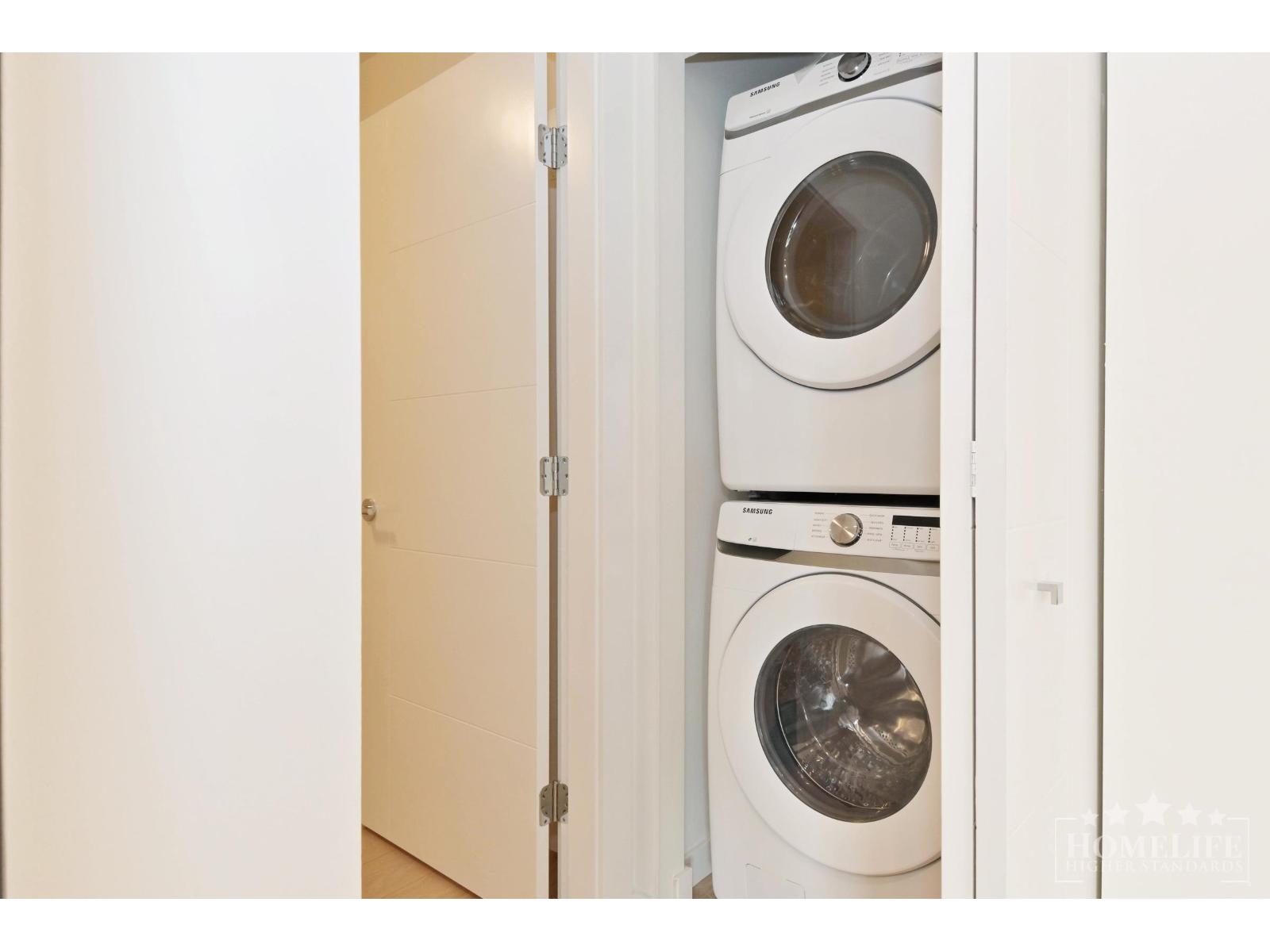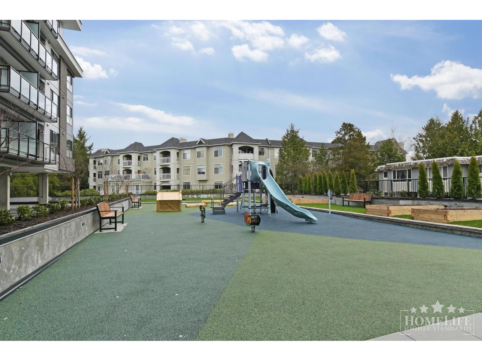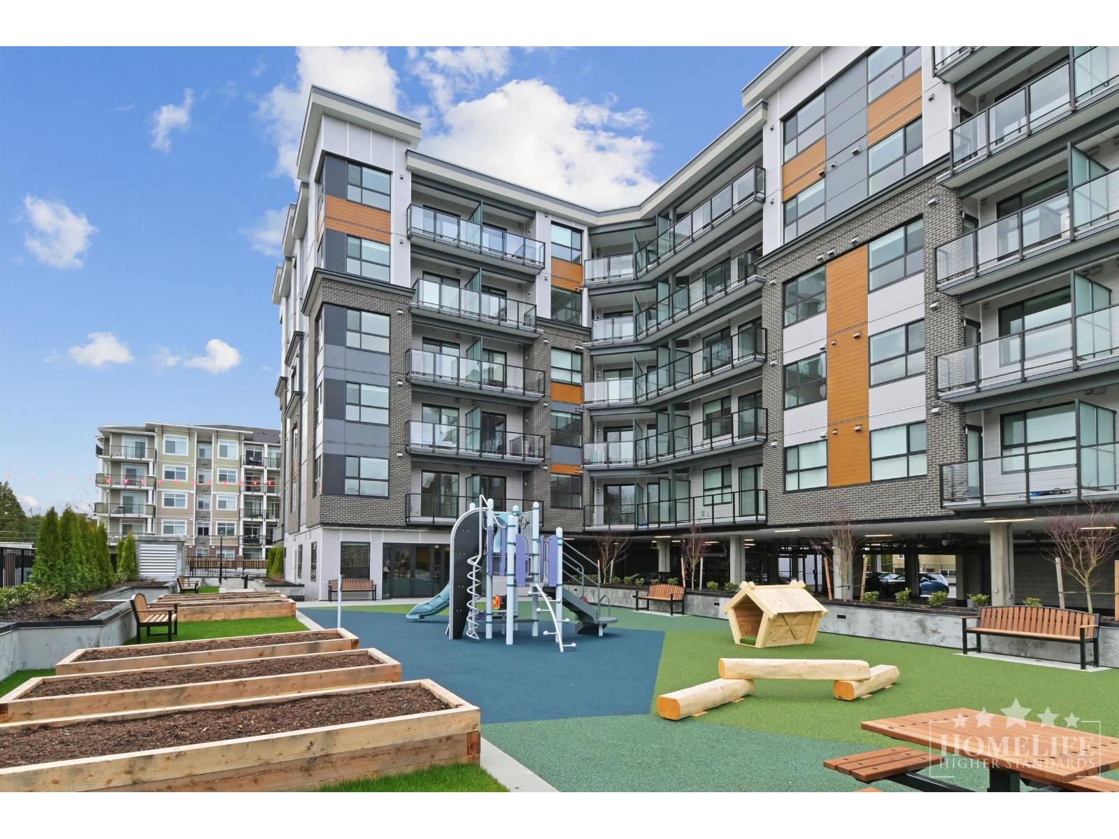 Charming 1 bed + den condo in the heart of Langley City. This modern, well-designed home features stainless steel appliances, quartz countertops, custom millwork, in-suite washer and dryer, and a functional den ideal for a home office or extra storage. Includes 1 parking stall and 1 storage locker. Located in a contemporary building with outdoor amenity space including seating, gardens, and a children's play area. Exceptional walkability just steps to Willowbrook Shopping Centre, T&T Supermarket, Costco, restaurants, parks, schools, transit, and Langley City Centre, with easy access to Hwy 1. Ideal urban living in a prime location. (id:52823)