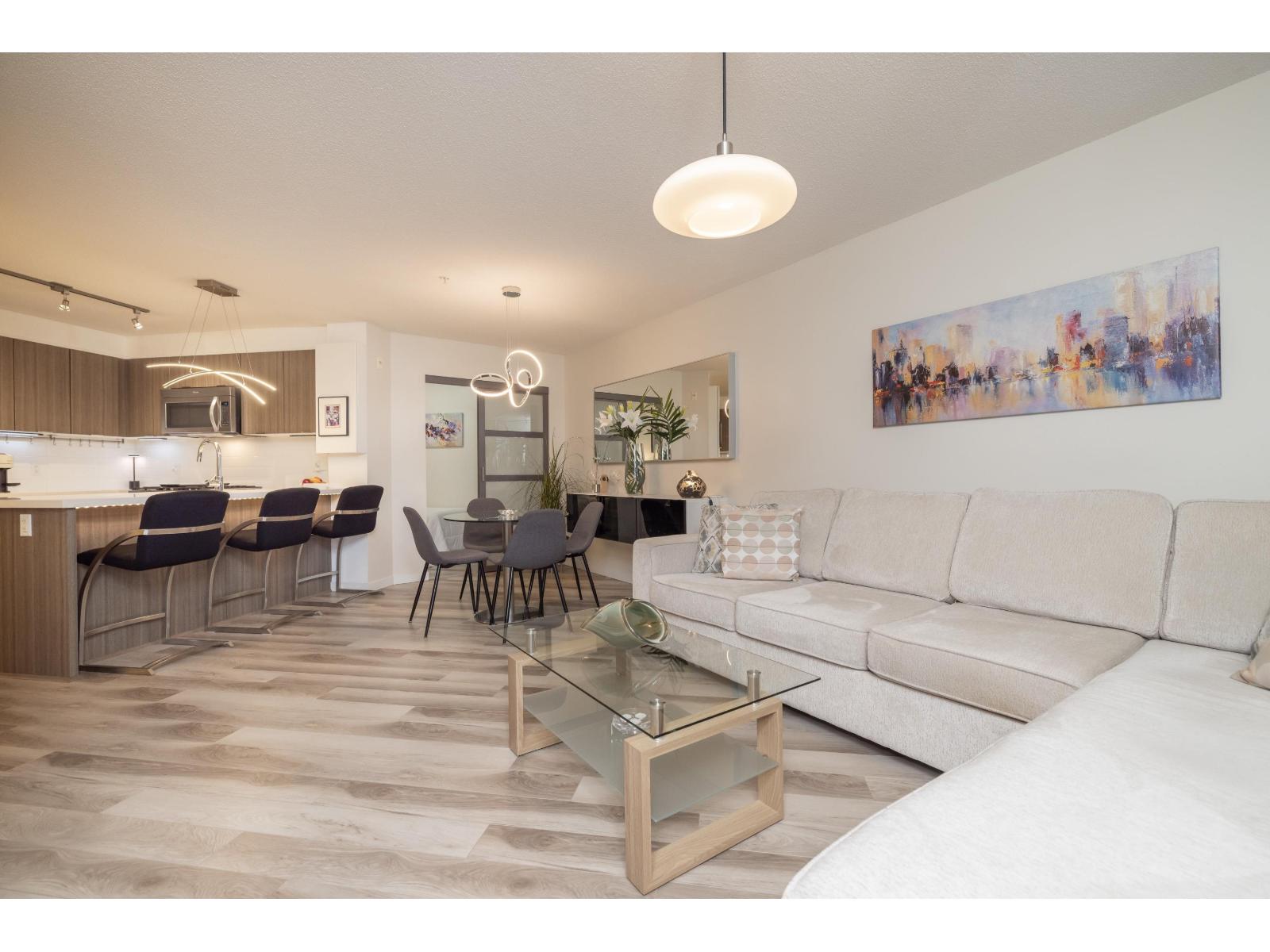 $362.40 MonthlyResort-style living awaits at Harvard Gardens. This immaculate...PRISTINE home shows like a 10! featuring 1 bedroom plus a full-size den/spare room, 1 bathroom, and a show piece electric fireplace providing an elgant ambiance. Stylish finishes include georgeous stone countertops, stainless steel appliances, impressive laminate flooring. Enjoy a spacious SW-facing deck that's fully covered-an ideal outdoor living space in every season-overlooking beautiful greenery. Residents love the 9,000 sq ft clubhouse with pool, hot tub, gym, basketball court, theatre, and more. Close to shopping, restaurants, beaches, and quick access to Hwy 99. Call to book your private showing today and be ready to fall in love! (id:52823)