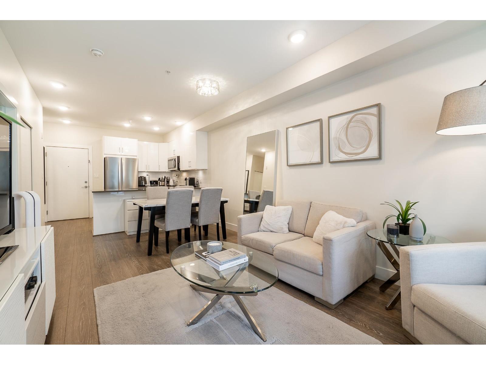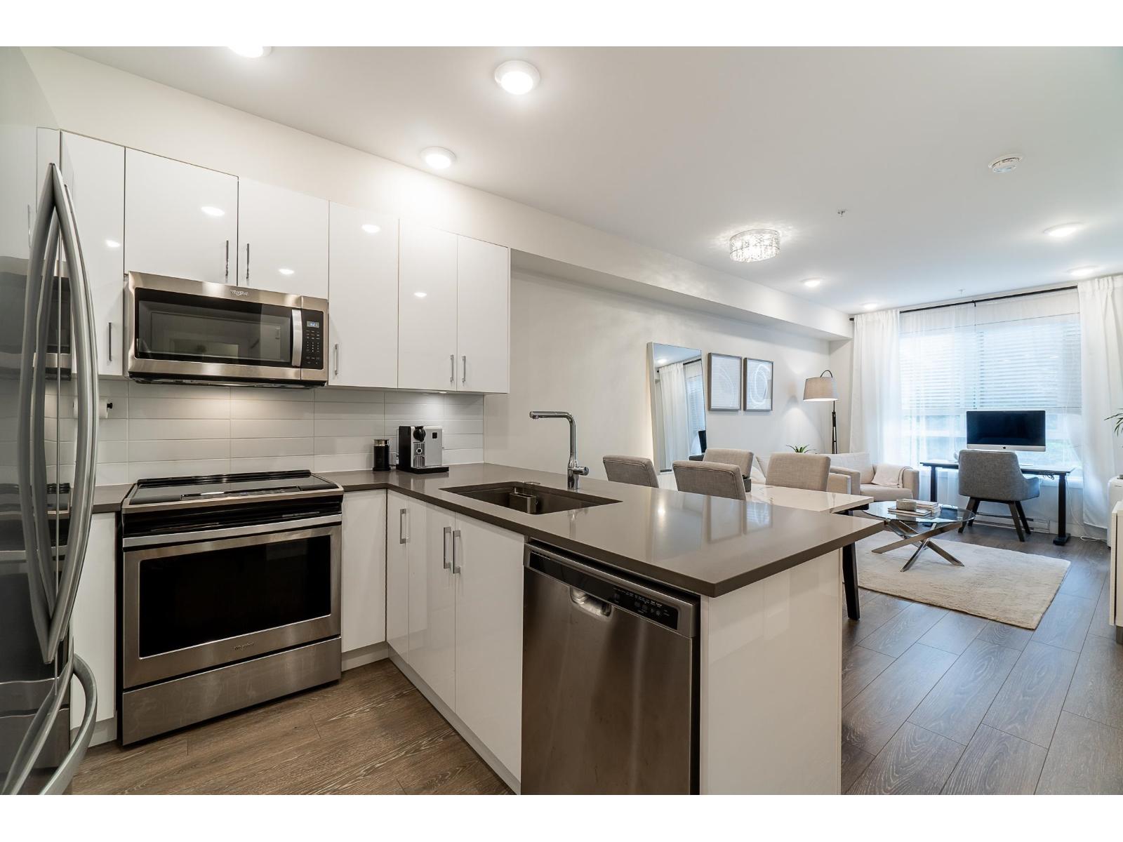 $250 MonthlyWelcome to The Guildford: A charming 1Bed and 1Bath Condo approx 589 sq.ft. This hidden gem rests in a prime location, nestled in the heart of Surrey. Imagine being just steps away from grocery stores, transits, parks, restaurants, and the Guildford Mall. Open concept floor plan With 9-foot ceilings and generously proportioned extra-large windows, natural light streams in, gives the living spaces in a warm and welcoming glow. The kitchen features S/S appliances and engineered quartz countertops. Delight in the small pleasures of life on your private and cozy patio, the perfect spot for sipping your morning coffee or unwinding after a long day or spend your time using the amenities, which include a gym facility, a fully equipped party room, and a lovely garden. Don't miss out! (id:52823)
