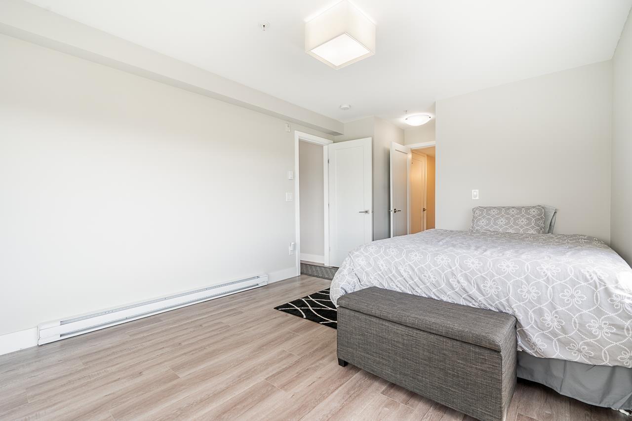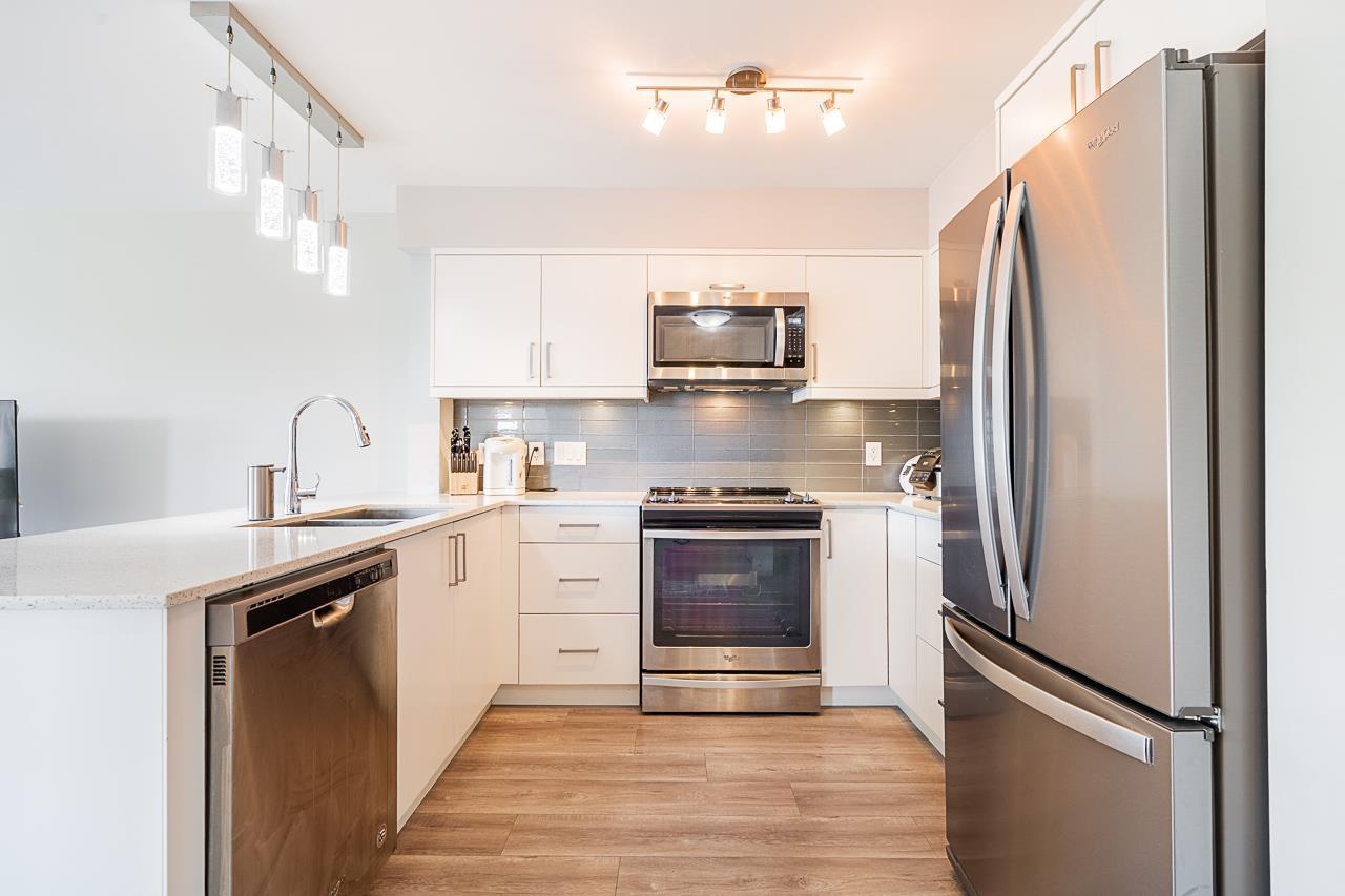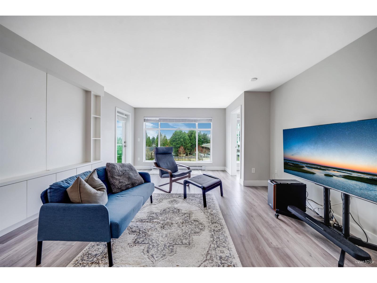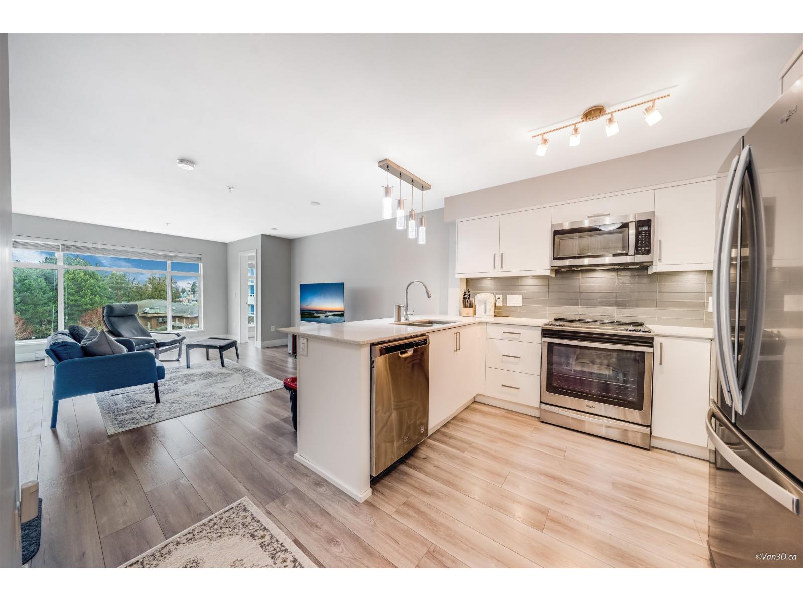 $484.61 MonthlyTOP, CORNER unit on the Quiet side of the MUSE, facing North-West with a rooftop deck above and BONUS 2 PARKING STALLS. Built 2019, this unit features a beautifully laid out floor plan with 2 good size bedrooms, a walk-in closet, quartz countertops, stainless steel appliances, soft close cabinets, laminate flooring throughout, in-suite laundry and a large bathroom with Double Sinks. Building allows pets and rentals. Situated between the Pattullo and Alex Fraser Bridge, easy access to both. Close to shopping, all level of schools, parks and transit. (id:52823)