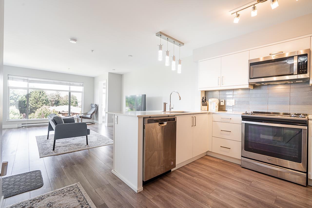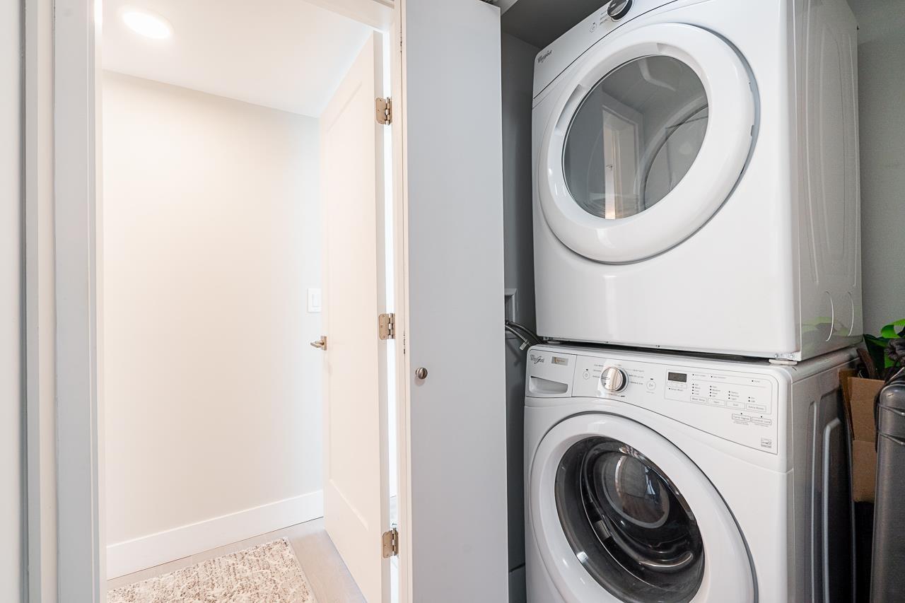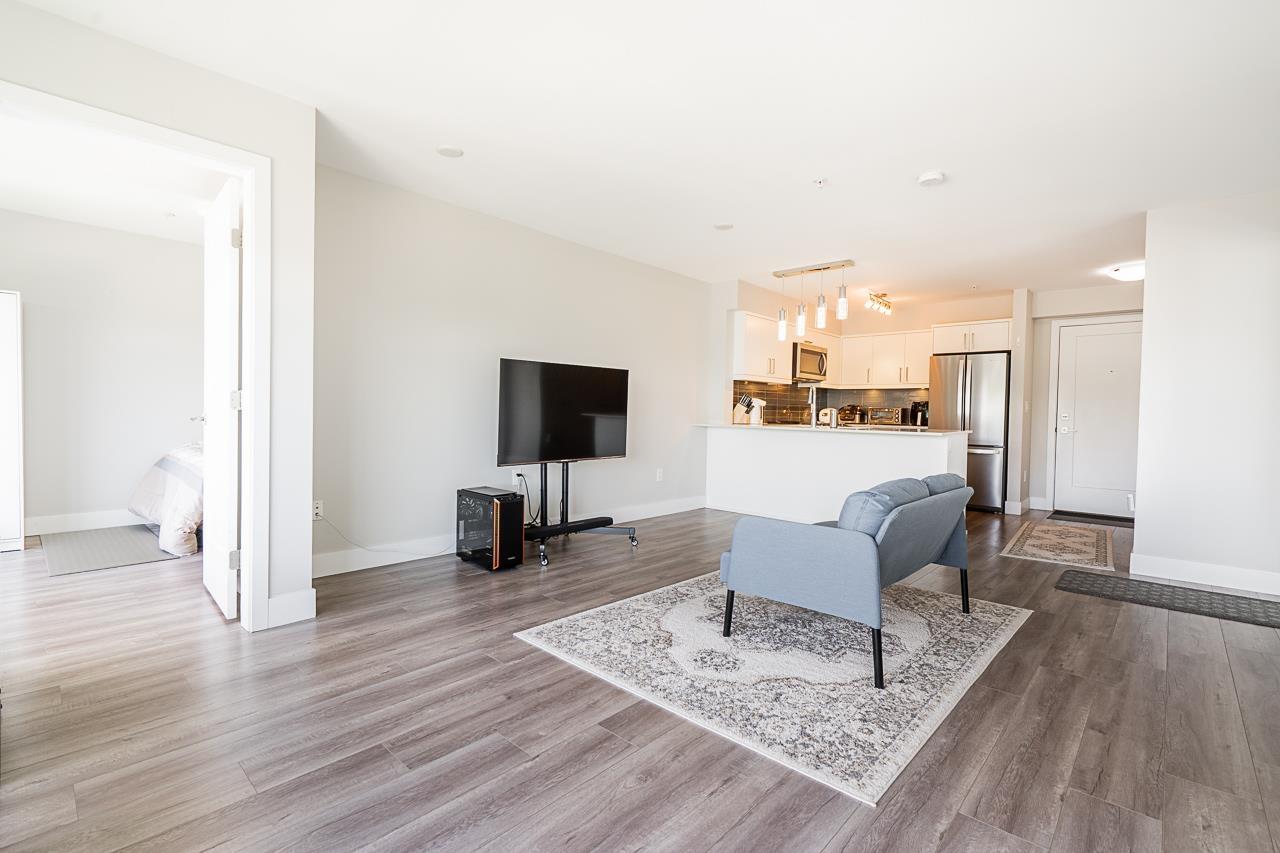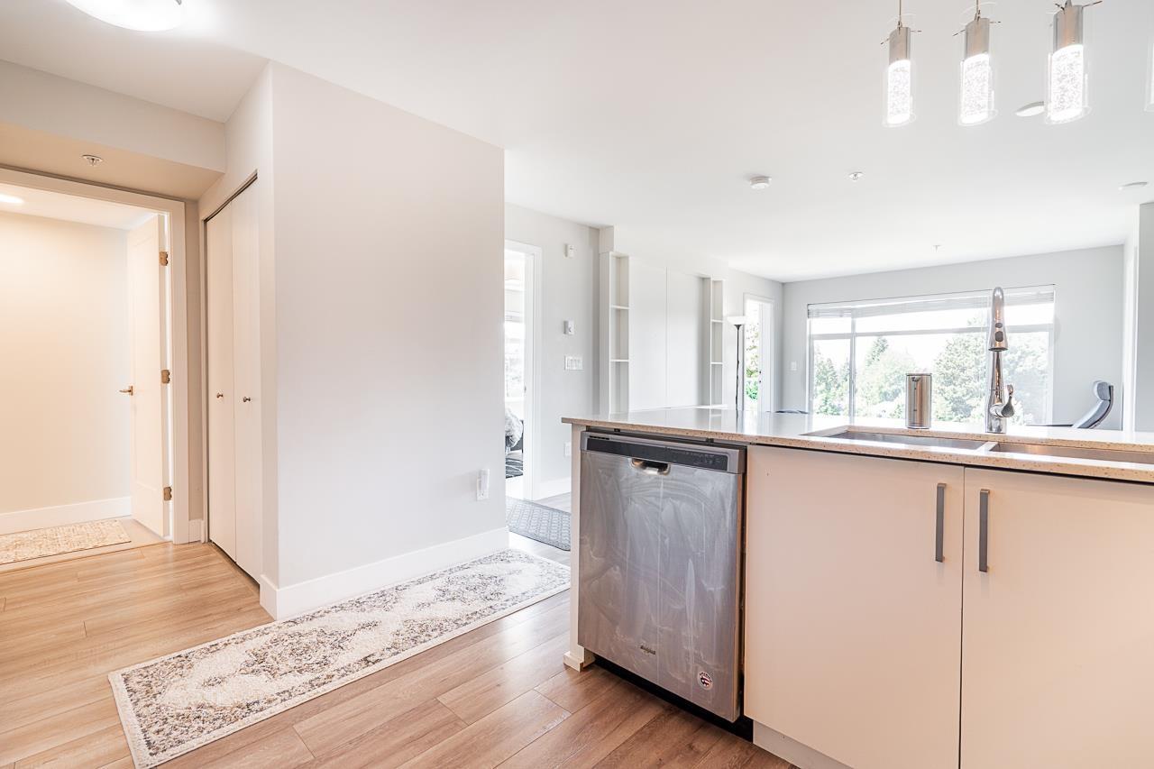 $484.61 MonthlyTOP, CORNER unit on the Quiet side of the MUSE, facing North-West with a rooftop deck above and BONUS 2 PARKING STALLS. Built 2019, this unit features a beautifully laid out floor plan with 2 good size bedrooms, a walk-in closet, quartz countertops, stainless steel appliances, soft close cabinets, laminate flooring throughout, in-suite laundry and a large bathroom with Double Sinks. Building allows pets and rentals. Situated between the Pattullo and Alex Fraser Bridge, easy access to both. Close to shopping, all level of schools, parks and transit. (id:52823)