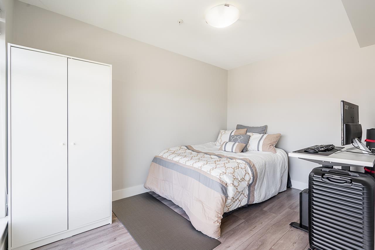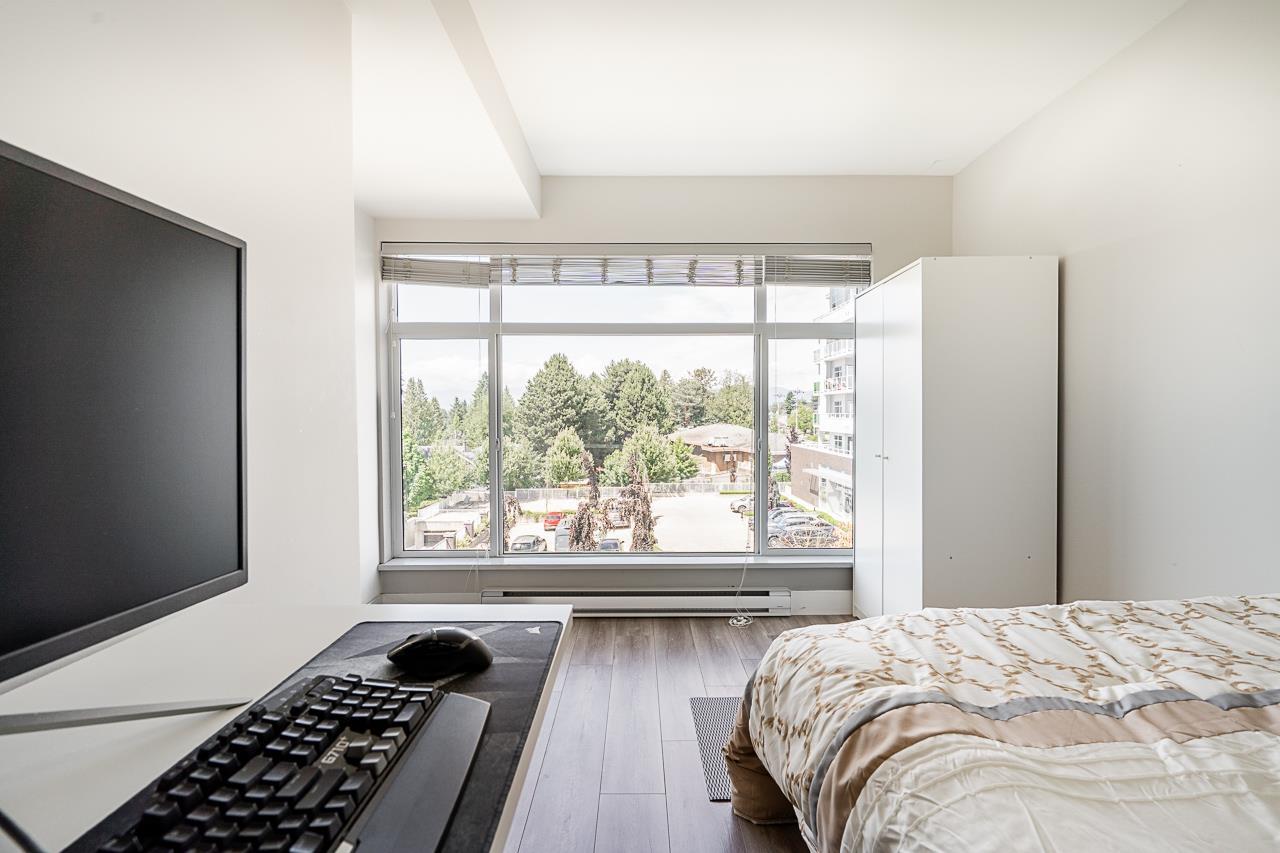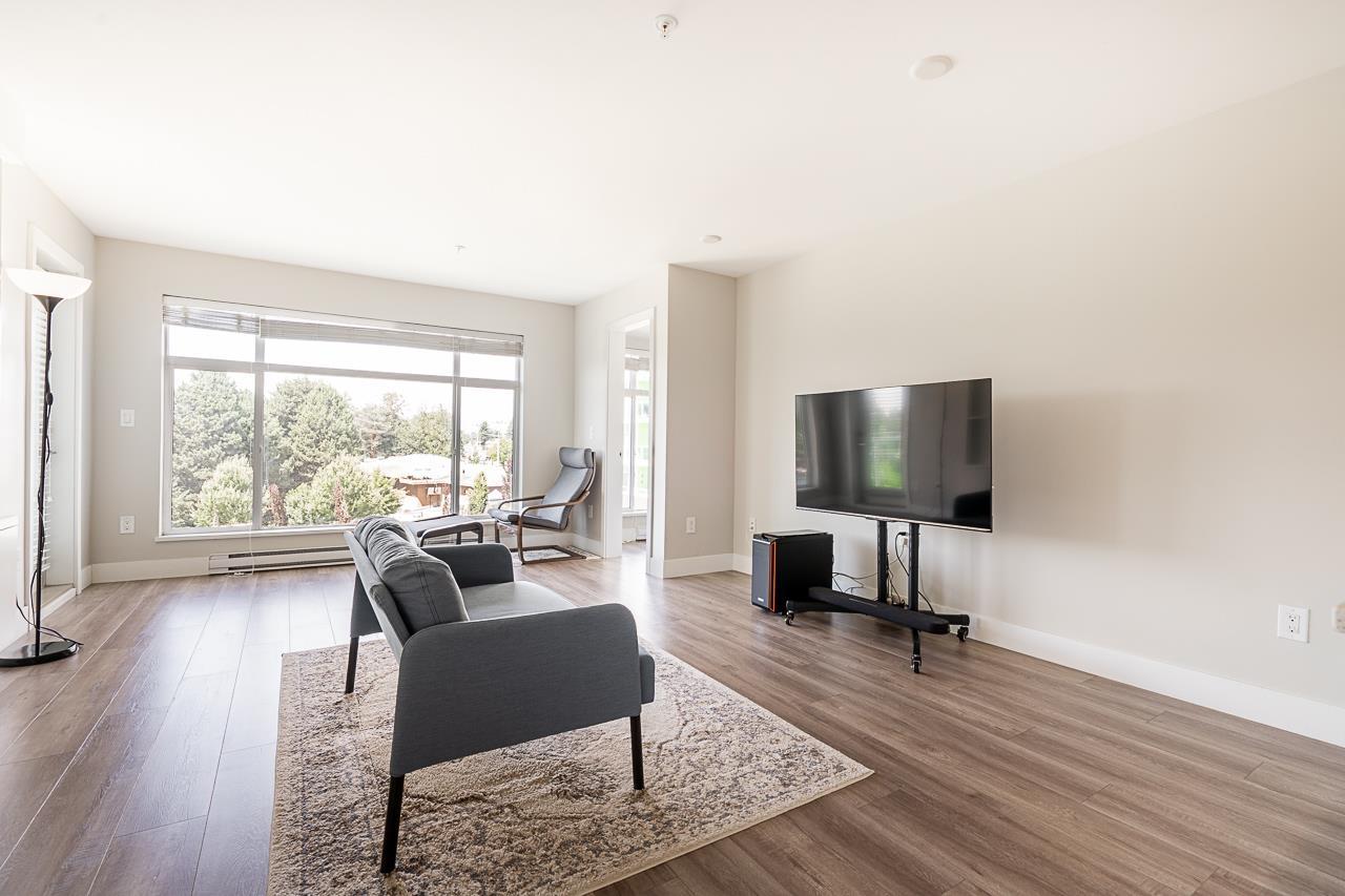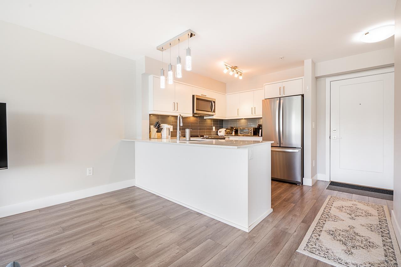 $484.61 MonthlyTOP, CORNER unit on the Quiet side of the MUSE, facing North-West with a rooftop deck above and BONUS 2 PARKING STALLS. Built 2019, this unit features a beautifully laid out floor plan with 2 good size bedrooms, a walk-in closet, quartz countertops, stainless steel appliances, soft close cabinets, laminate flooring throughout, in-suite laundry and a large bathroom with Double Sinks. Building allows pets and rentals. Situated between the Pattullo and Alex Fraser Bridge, easy access to both. Close to shopping, all level of schools, parks and transit. (id:52823)