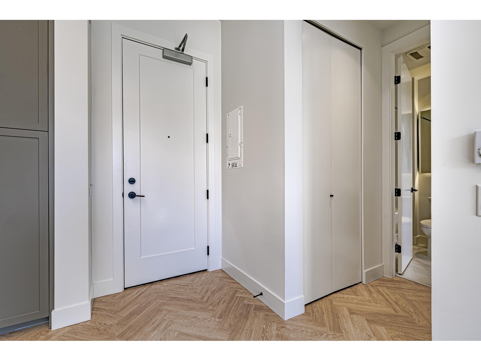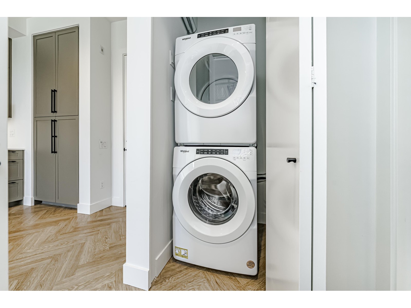 $285.64 MonthlyMove in Ready! This corner unit spacious one bedroom, one bathroom home in Parker by Mosaic includes one parking and locker. It's ideal for anyone looking to live in or invest. Upon entering, you'll immediately notice the 10-foot ceilings that add to the airy and bright feel of the home. The herringbone flooring pairs perfectly with the contemporary kitchen and bathrooms. The layout of the home is very efficient, with oversized windows and a big balcony. The location is unbeatable, with easy access to Surrey City Centre, SFU & KPU, Surrey Central skytrain, parks and more. (id:52823)
