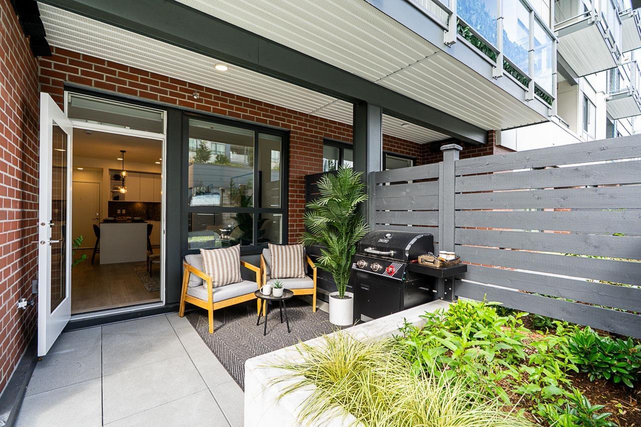 $261.27 MonthlyBrand new large, move-in ready 1 bed+ den home at Hive 2, North facing, built by award winner Apcon Group. Located in Willoughby Town Centre with restaurants, shopping, across the street from the indoor Tennis Centre and Elementary school. Shared amenities with fitness center, party room, co-working space and outdoor BBQ and play area. Inspired living built with high quality materials and modern design touches. Wide plank flooring in main living area and den, contemporary roller blinds filter natural light. Full size front stacking in-suite laundry, functional kitchen with full size stainless steel fridge, gas range and dishwasher. Beautiful bathroom with stylish hardware and undermount sink. Full 2/5/10 year new home warranty. One parking and one storage locker included. (id:52823)