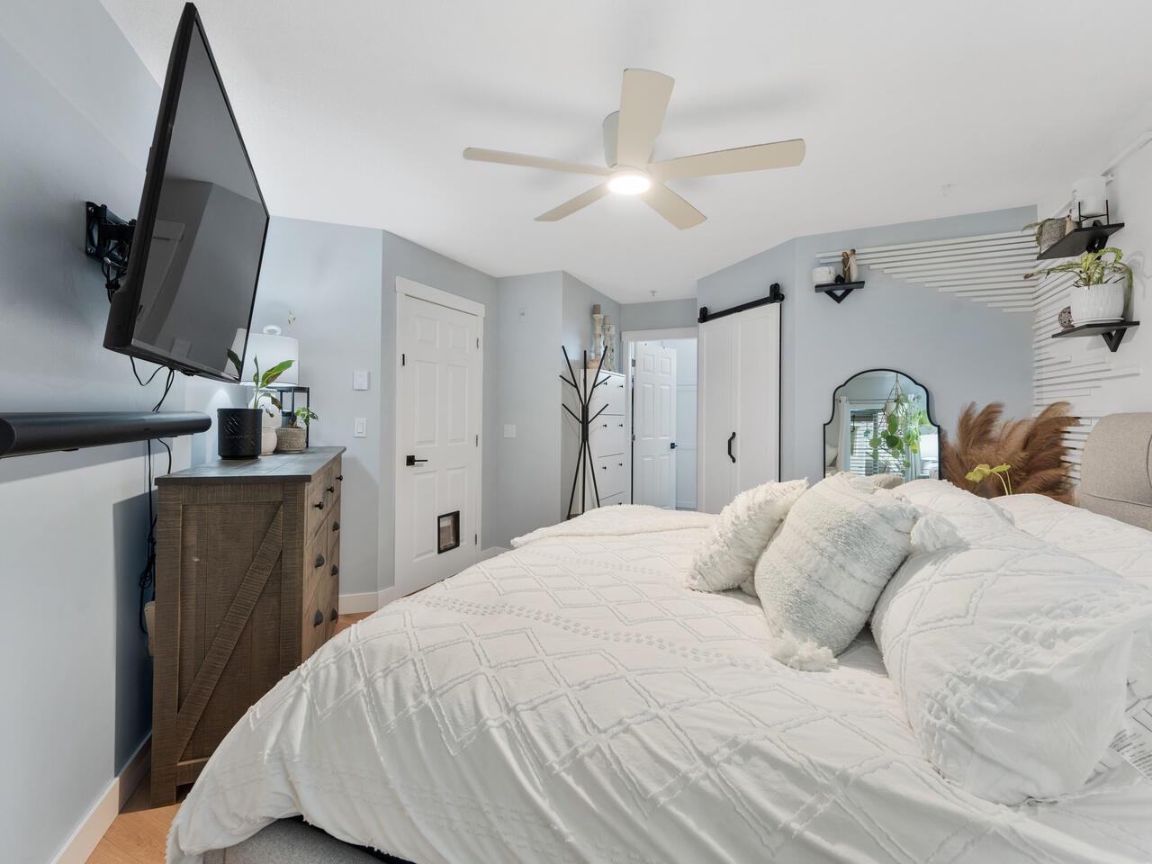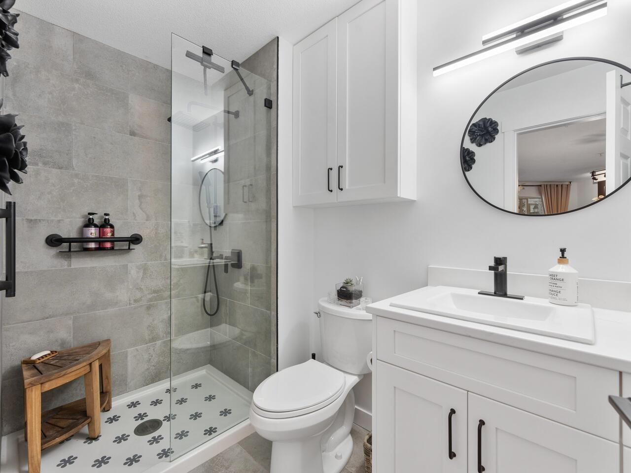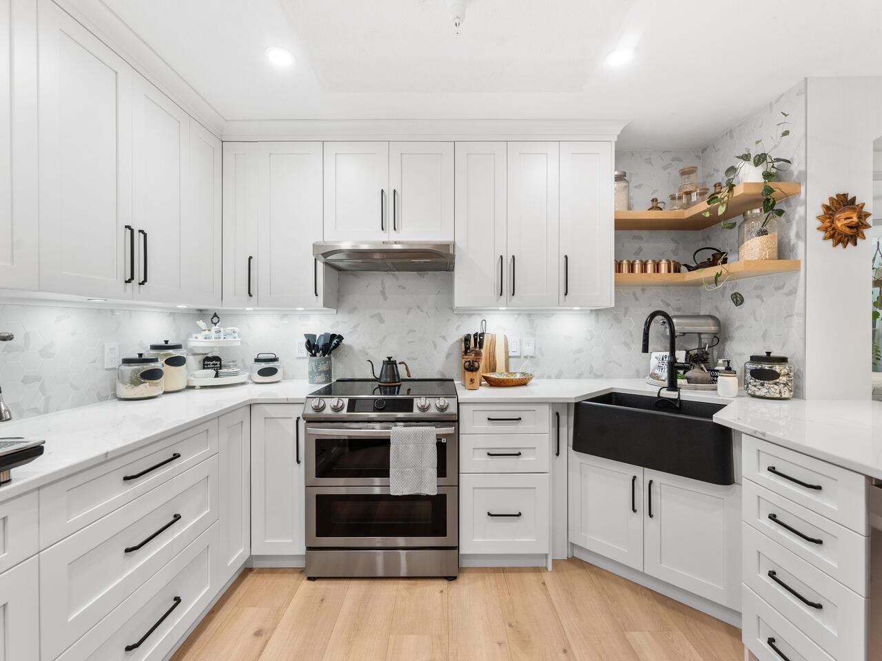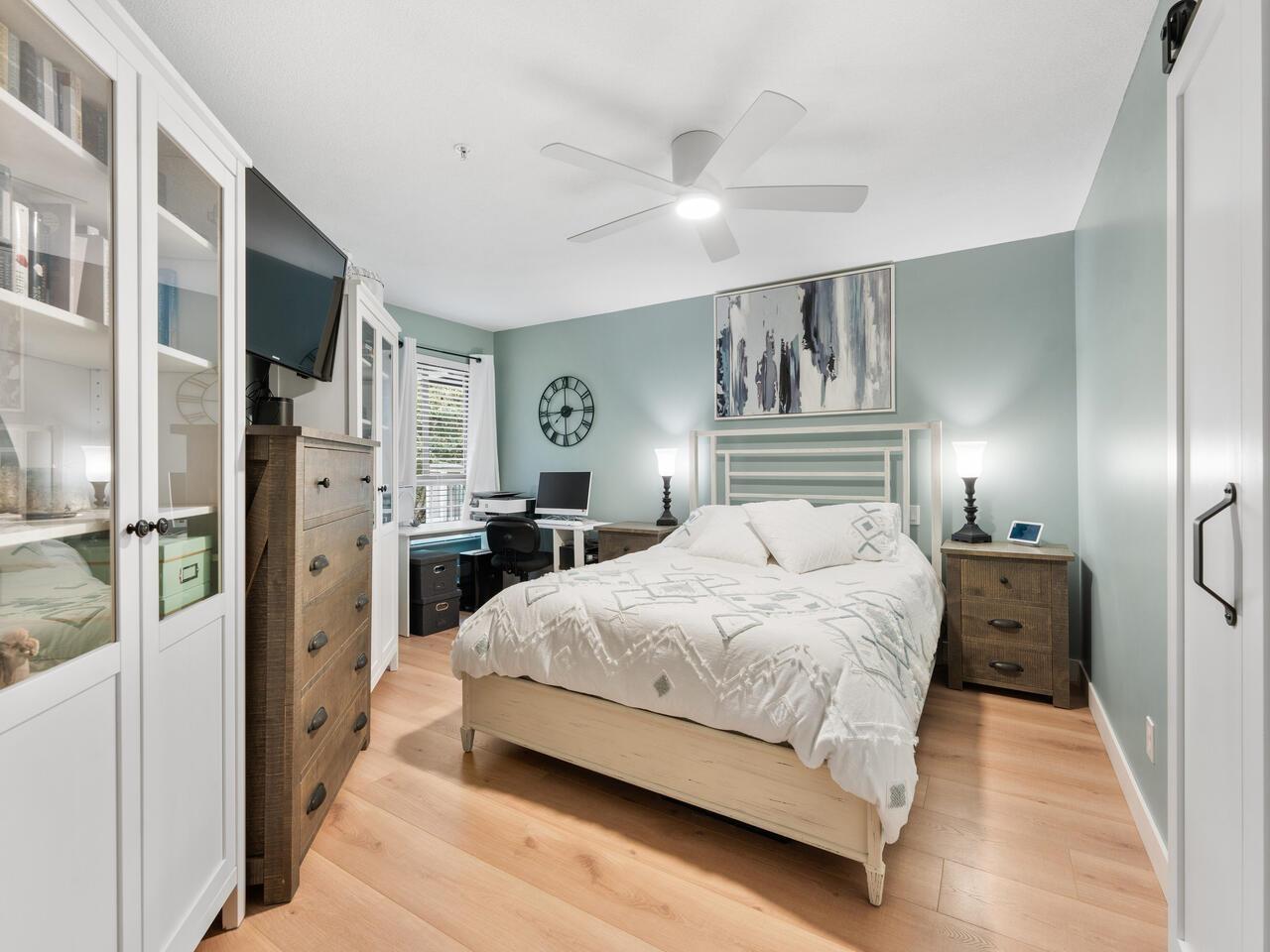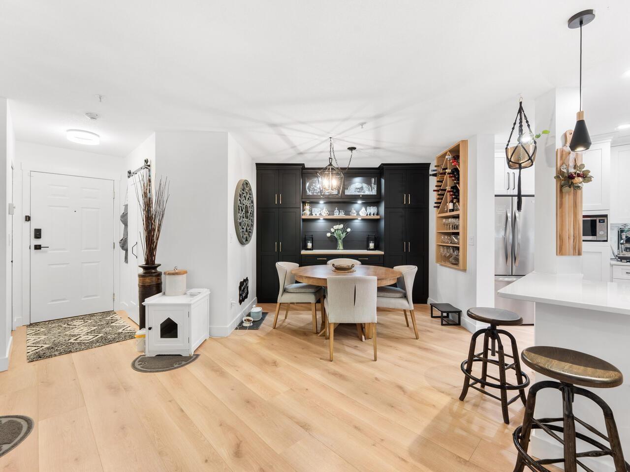 $534.20 MonthlyAbsolutely gorgeous 1,151 sf, 2 bdrm, 2 bath extensively updated condo with high end renovations including gorgeous wide plank floors, tasteful décor, updated light fixtures, entertainment sized living rm with gas fireplace & door to patio, spacious dining rm with attractive built-ins, gorgeous updated kitchen w/white shaker style cabinets, SS appliances and quartz counters w/breakfast bar, 2 spacious bdrms & 2 extensively updated baths including primary bdrm w/wi closet & spectacular 4 pce ensuite. Fantastic floor plan with the 2 bdrms separated from each other by the living area provides the utmost in privacy. 2 parking stalls and storage locker are added value. Very spacious absolutely gorgeous updated condo with fantastic layout in prime Murrayville location absolutely must be seen. (id:52823)