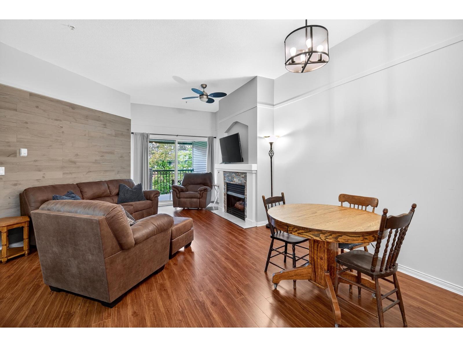 $333.25 MonthlyPenthouse! at The Fairmont. Get inside this fabulous Top Floor 2 bed unit situated far back from the Fraser Hwy and at the back of the building with 10 foot ceilings close to everything in beautiful Cloverdale/Langley. This unit offers an amazing floor plan with a spacious open living/dining area with a cozy gas fireplace and sliders leading to a covered balcony (SW) w beautiful courtyard and manicured gardens to enjoy year round. The bedrooms are located at opposite ends of the unit for extra privacy and the Primary has a nice walk in closet. The bright kitchen has enough room for 4 barstools at the breakfast bar and separate laundry/pantry area behind bifold doors. Steps to Langley's future skytrain, amazing restaurants, transit, shopping and the list goes on. Gas/Hot Water Included. (id:52823)