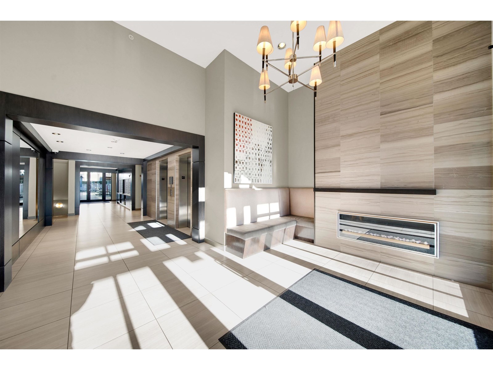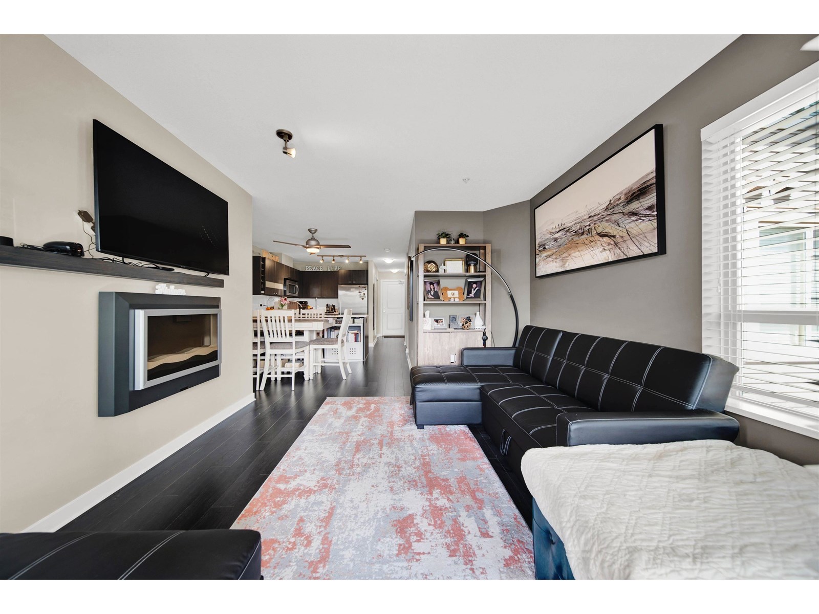 $382.94 MonthlyCORNERSTONE, a quality Marcon build, offers a bright 1-bedroom + den on the 3rd floor with southern exposure. Featuring contemporary decor, quartz counters, an open floor plan, a floating fireplace, laundry, and ample storage, it also boasts a generous covered deck for year-round use. The bedroom includes a walk-in closet with updated storage and a walk-through to a four-piece bath, while the den is ideal for a home office. The underground parking stall comes with a new bike rack, storage locker, and plenty of visitor parking, plus a new E/V charging station and an onsite caretaker. Located just a short walk from Safeway, Starbucks, restaurants, and the future Skytrain, this well-managed building welcomes 2 pets (no size restriction) and rentals. (id:52823)