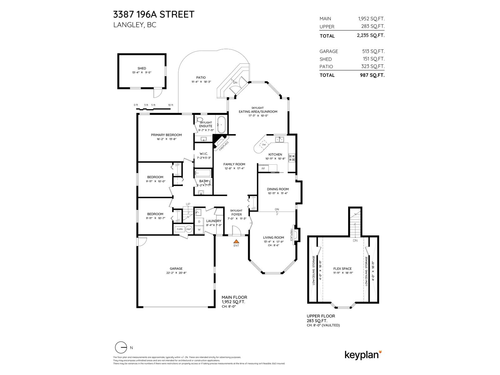 Welcome to this meticulously maintained 3 bedroom 2 bath 2,235 sq' RANCHER in Brookswood, Langley. Upstairs flex room could be a large 4th bedroom, office or rec room. Large Primary Bedroom w/walk in closet & large ensuite w skylight. Superb floor plan - expansive one level living w/space & flow for formal & informal living plus room for friends & family to enjoy! NEW Heat Pump 2025 to keep you cool in summer & warm in winter. Formal living & dining room w/fireplace, Family Room w/gas fireplace, Kitchen w/SS appliances w/lots of cupboard space STUNNING bright sunroom off the kitchen that leads to a landscaped private fenced yard. 2 car garage w/ long driveway for lots of parking & RV parking on large 10,018 lot. This one has it all! (id:52823)