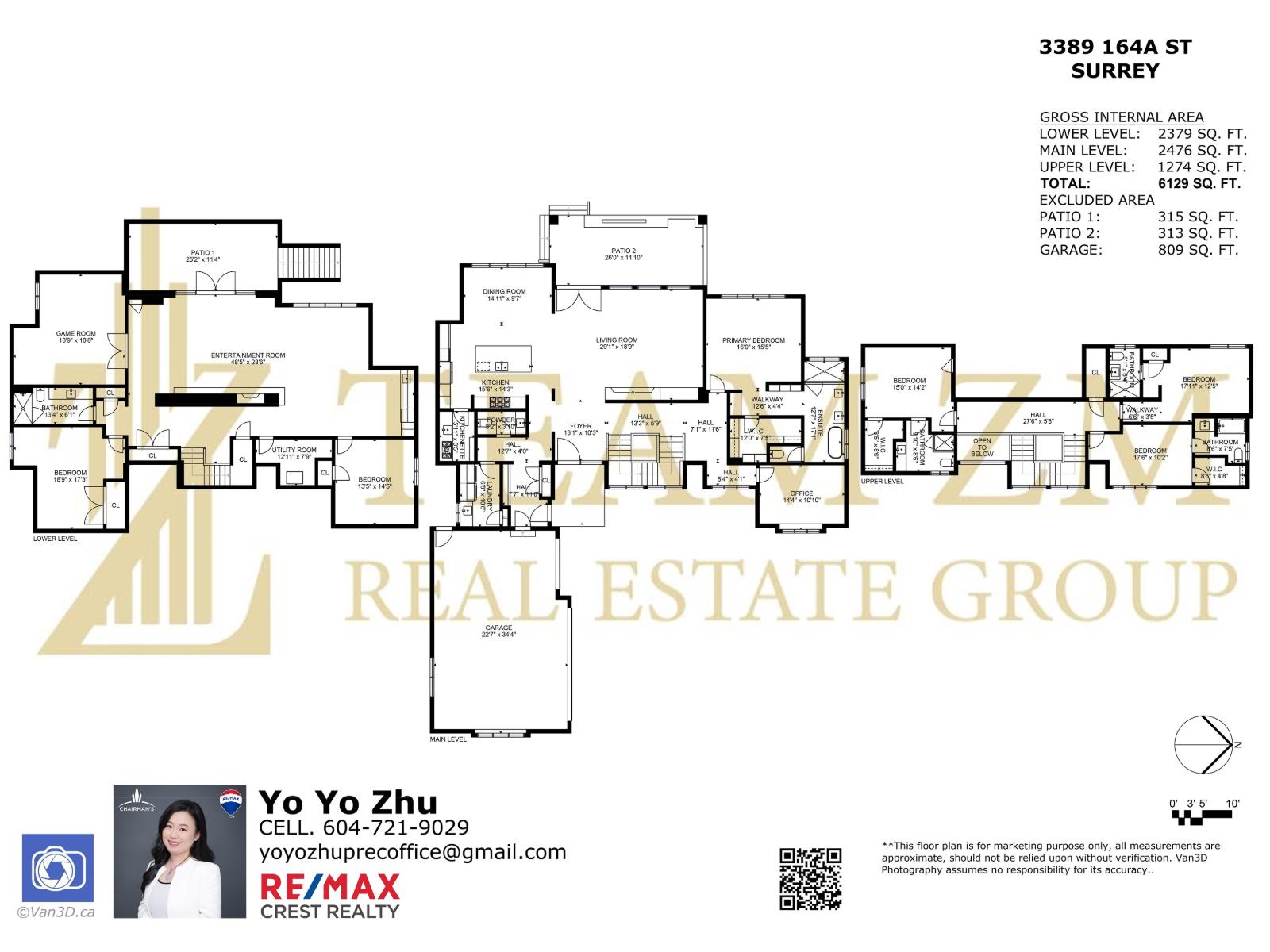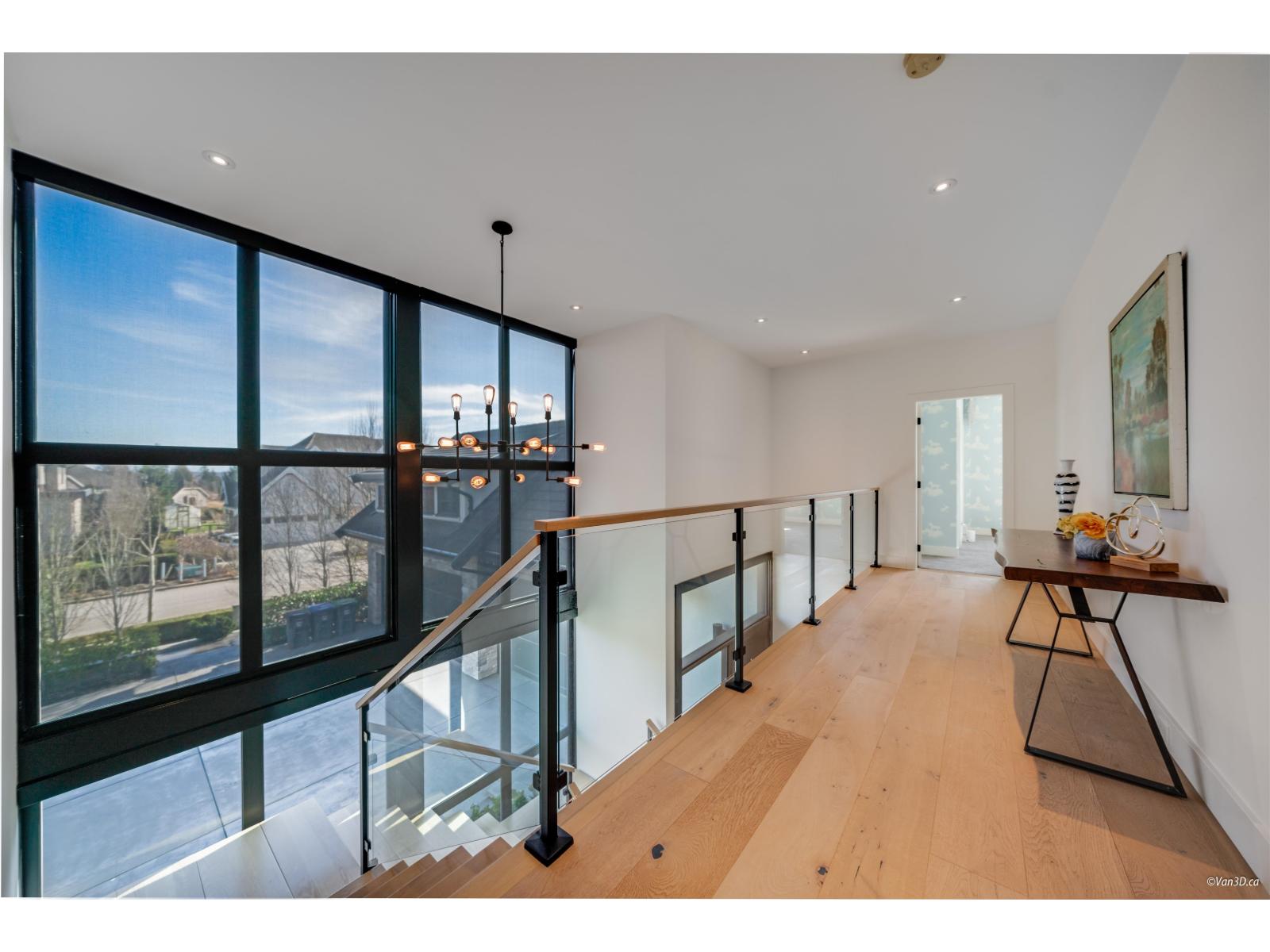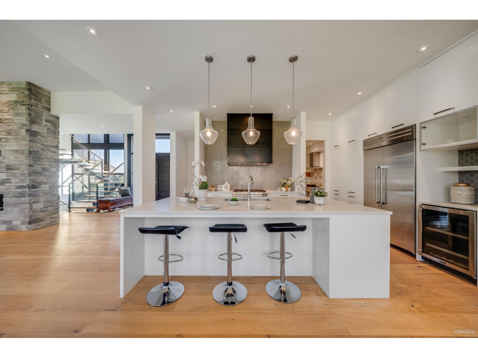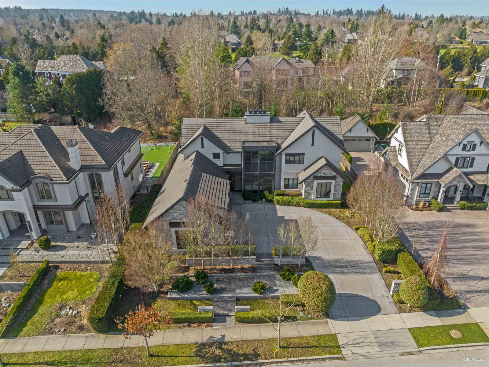 Located in Morgan Creek, this modern Cape Cod home blends luxury with nature, surrounded by greenspace, a golf course, and mountain views. Designed by Norm Friesen and built by M.E.C. Urban Developments, with interiors by Done to the Nines, this 6,129 sq. ft. custom home offers 6 beds and premium finishes, including hardwood, quartz, stone, and stucco. Features include soaring ceilings, a floating staircase, a great room, a main-floor primary suite, a wet bar, and a triple garage. The professionally landscaped yard boasts multi-tiered decks, patios, and lounging areas, backing onto tranquil Wills Brook with a sunlit western backyard. Ideally located near Morgan Creek Elementary and Grandview Heights Secondary. (id:52823)