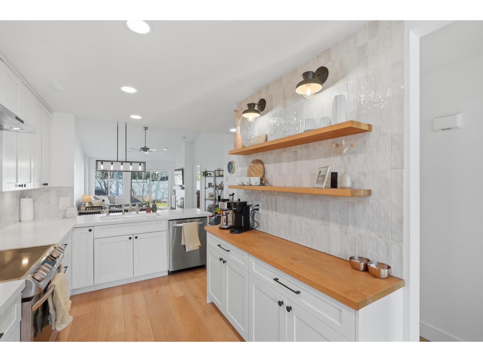 $501.01 MonthlyThe DREAM DOWNSIZE you've been waiting for! FULLY RENOVATED RANCHER TOWNHOUSE inside the highly sought-after community of Douglas Point! Walk into your wide-open floor plan with 12FT vaulted ceiling throughout the living/dining room! This 2 bed 2 bath features a UPDATED kitchen, appliances, hardware & doors, updated light fixtures, oversized flooring & moldings! The washrooms are completely renovated! FIR Ceiling beam & Fir Mantle in the living area! Custom Millwork throughout & even EPOXY coating in the garage! A fully fenced Sunny west facing yard is perfect for pets, kids, or entertaining. Meticulously maintained & proactive strata.This complex has an amazing clubhouse & offers RV parking just minutes to White Rock beach, Peach Arch Park, Hazelmere and Peace Portal golf courses! (id:52823)