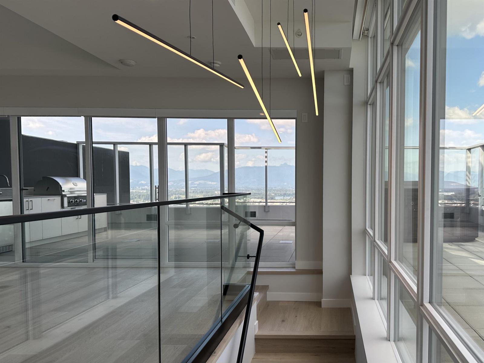 $797.12 MonthlyThe Penthouses at the Towers! Langley's ONLY high rises. Breathtaking mountain views from this NE facing 34th level, 2 storey penthouse. 2 bedrooms plus flex (could be a 3rd bedroom), 3 full and 1 half baths. Incredible finishes including Fulgor Milano professional kitchen appliances, Jenn-Air built in beverage system, a wine fridge, pot filler and oversized island looking out to the incredible view. The floor lit, glass railed stairwell leads you upstairs to your open loft with a full bathroom and sliding glass doors to the incredible outdoor living area with kitchen, hot tub and ample outdoor entertaining space. Viewing by appointment only Saturday through Wednesday. (id:52823)