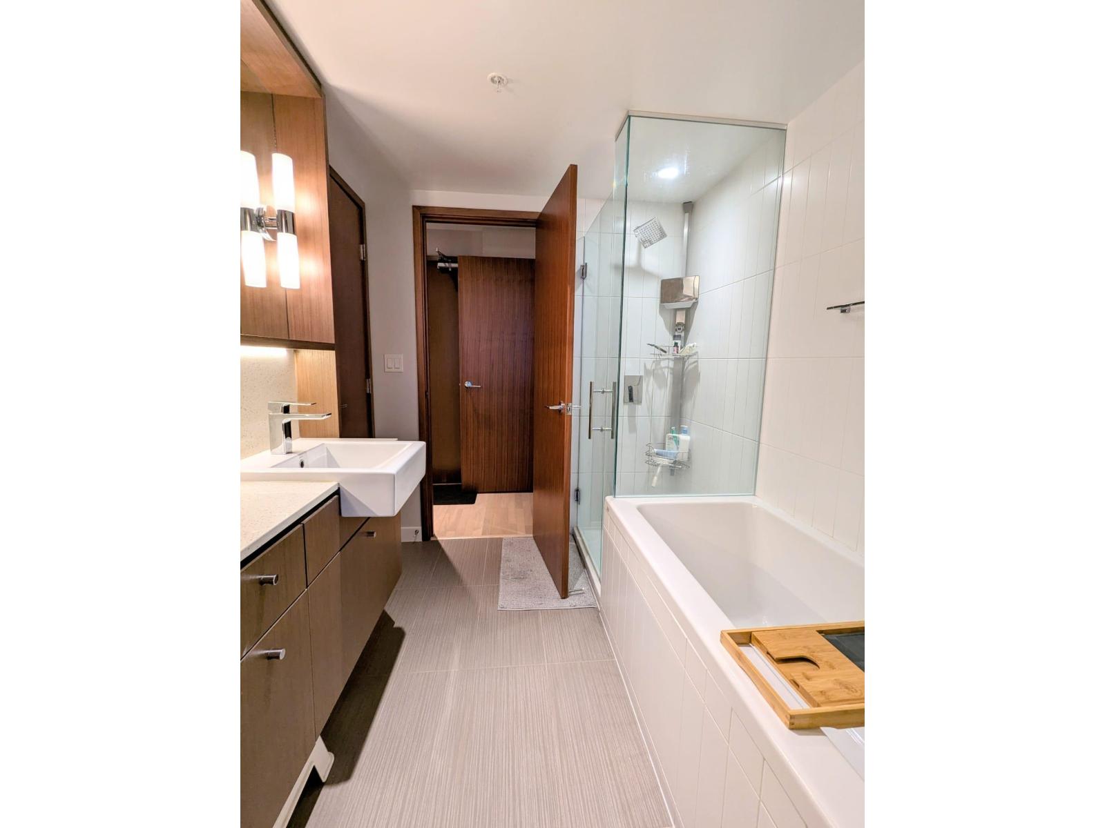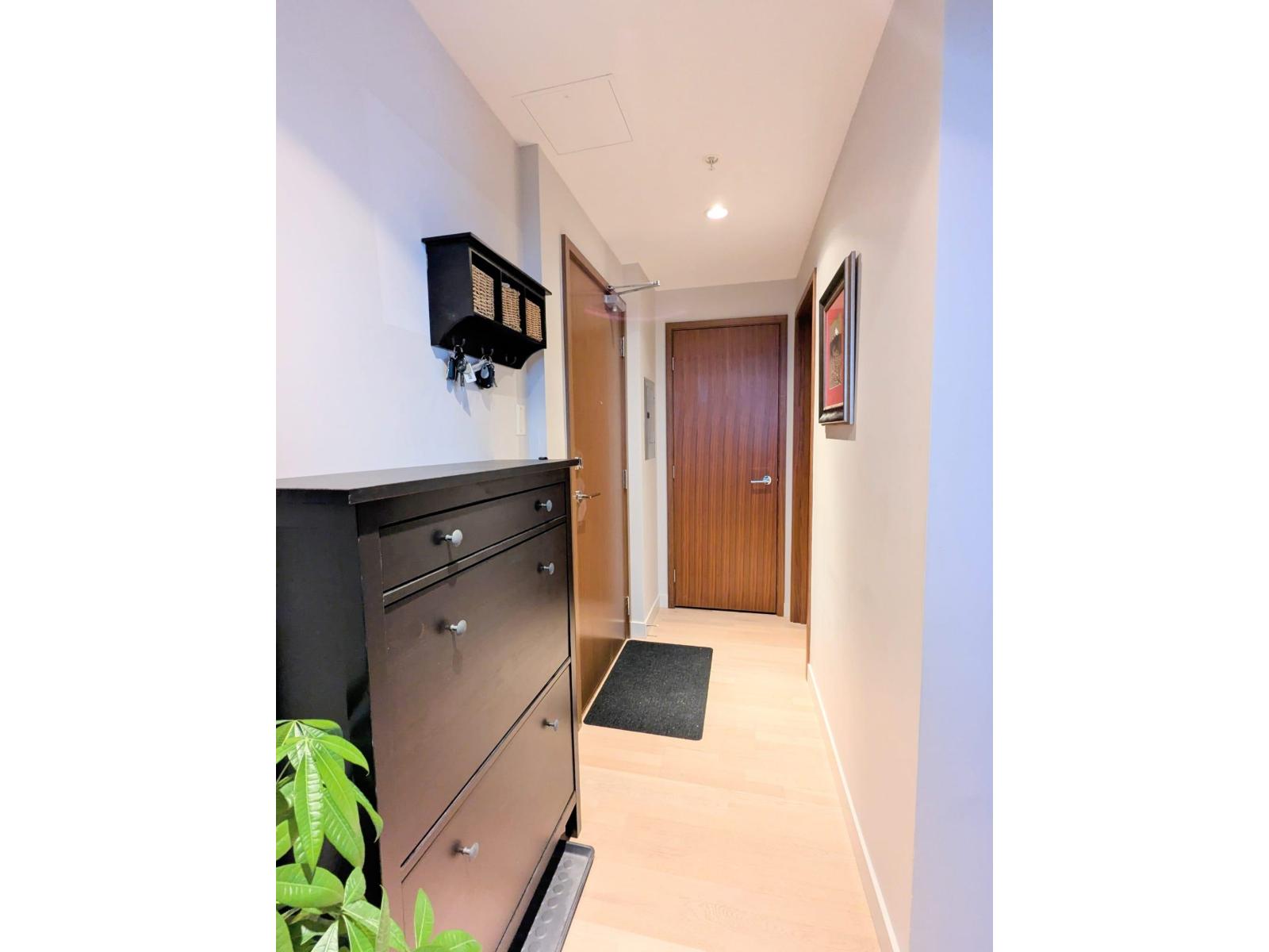 $424.32 MonthlyStunning Corner Unit with Spectacular Views! Welcome to 3 Civic Plaza by Century Group in the heart of Surrey City! This 621 SQF. bright and unique 1 bed + a den, corner unit offers a luxurious living experience with breathtaking southeast-facing views, right from your Livingroom and master bedroom. The open-concept design features a modern kitchen with quartz countertops, a spacious island, and stainless-steel appliances, perfect for cooking and entertaining. Enjoy the thoughtfully designed storage spaces, a spa-inspired bathroom, and the comfort of geothermal heating and cooling. This unit comes with the added convenience of 1 parking space and a secure storage locker, and the hotel amenities w/membership. Don't miss out on this incredible opportunity. (id:52823)