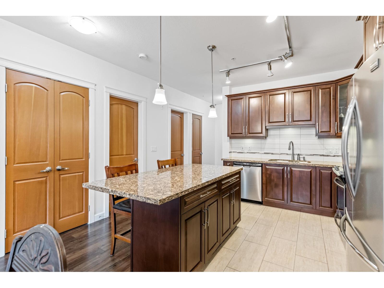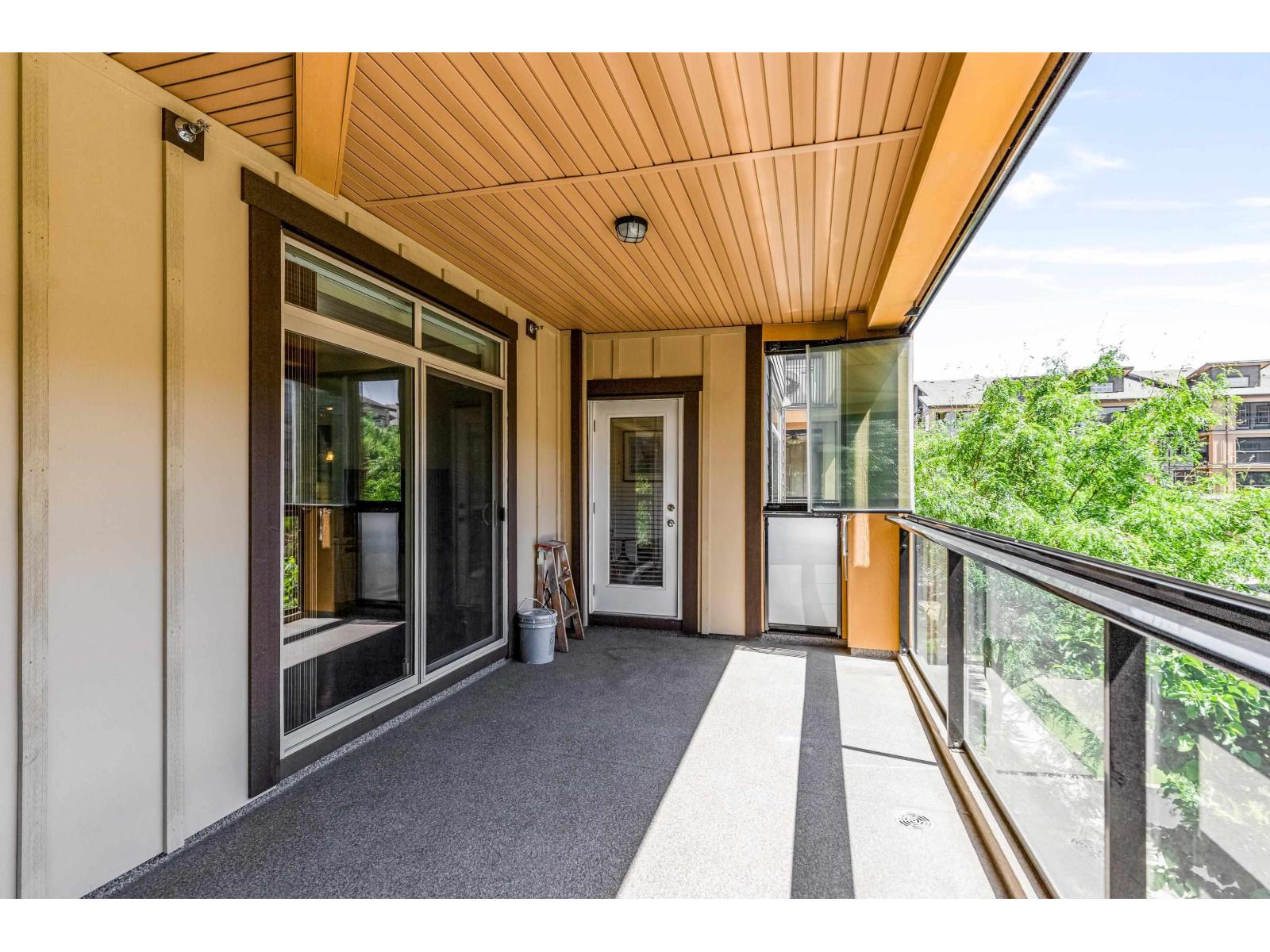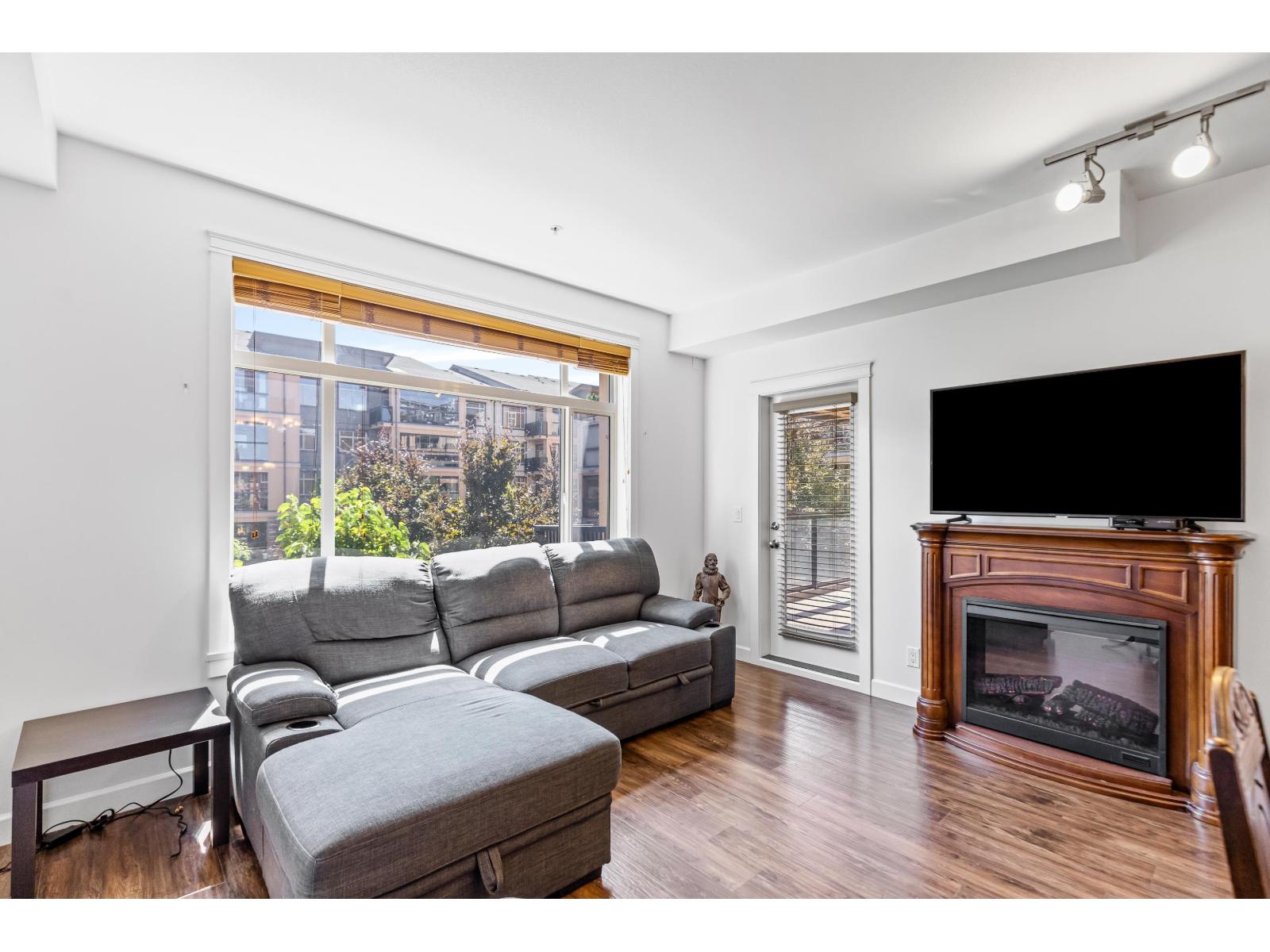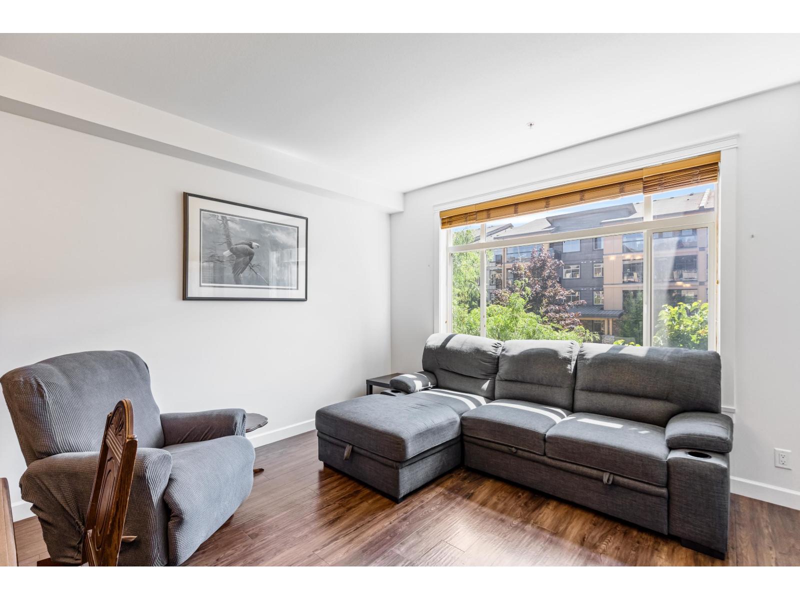 $368.06 MonthlyStunning 2 bed, 2 bath + den (or 3rd bed) corner unit in sought after Walnut Ridge at Yorkson by Quadra Homes. This 1,035FT home features a spacious open layout w/ bedrooms on opposite sides of living for added privacy. Enjoy year round use of the 224FT covered, south facing, wrap around balcony, w/retractable glass, overlooking peaceful courtyard. Chef's kitchen boasts s/s appliances, granite countertops, quality cabinetry & large island. Primary suite inc/walk-in closet & spa like ensuite with large shower. Freshly painted with luxury touches like A/C, heated bathroom floors & anti-fog mirrors. Includes 2 parking stalls & oversized storage w/ electrical outlet & roll-up door. In the heart of Willoughby Heights close to schools, parks, transit, restaurants, shopping & Hwy1 access. (id:52823)