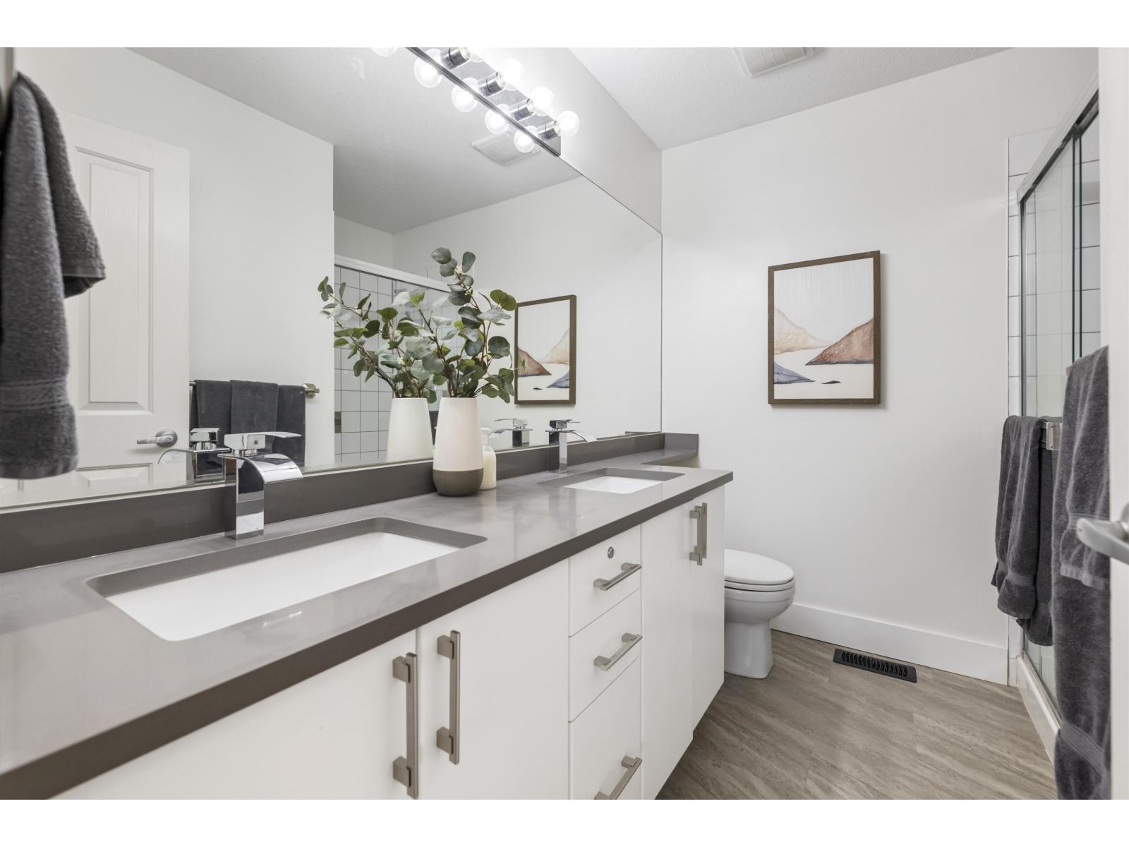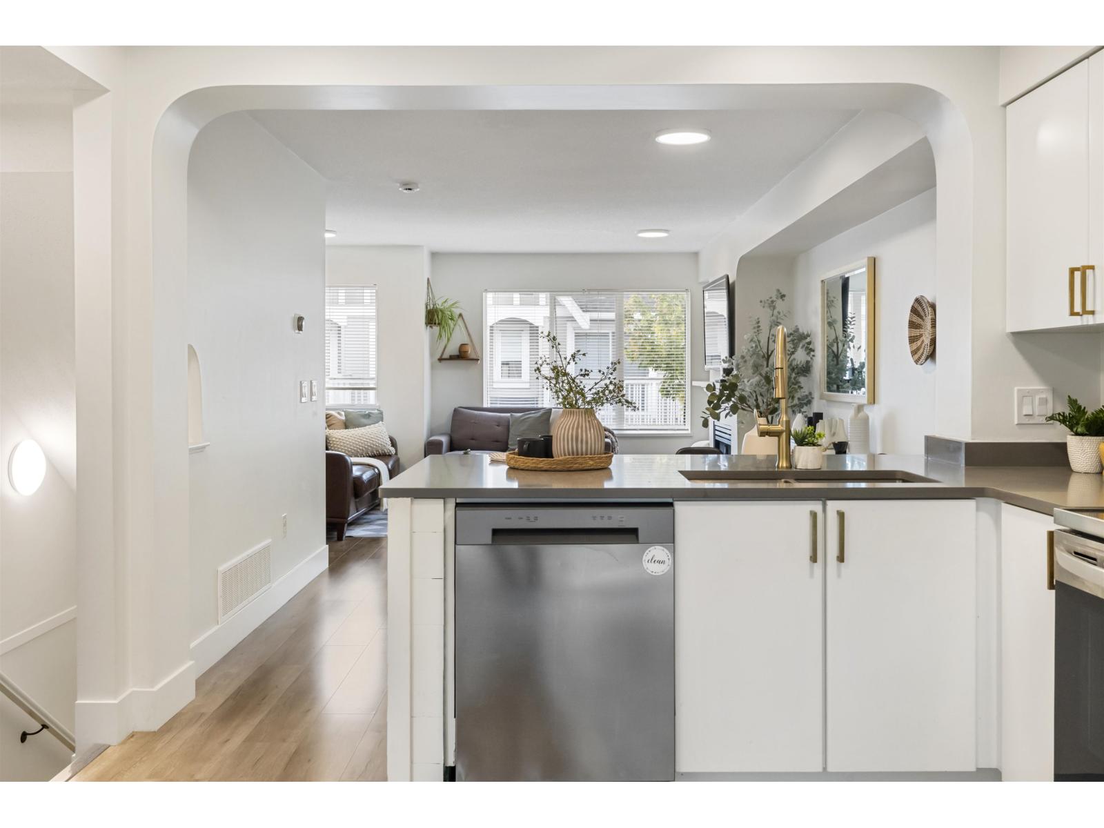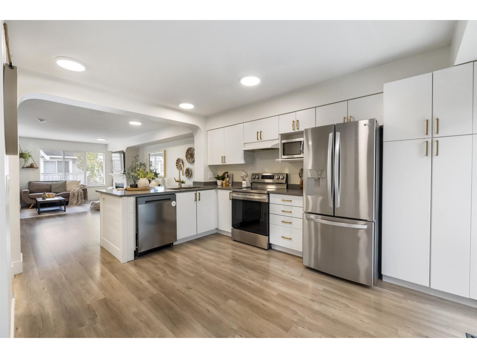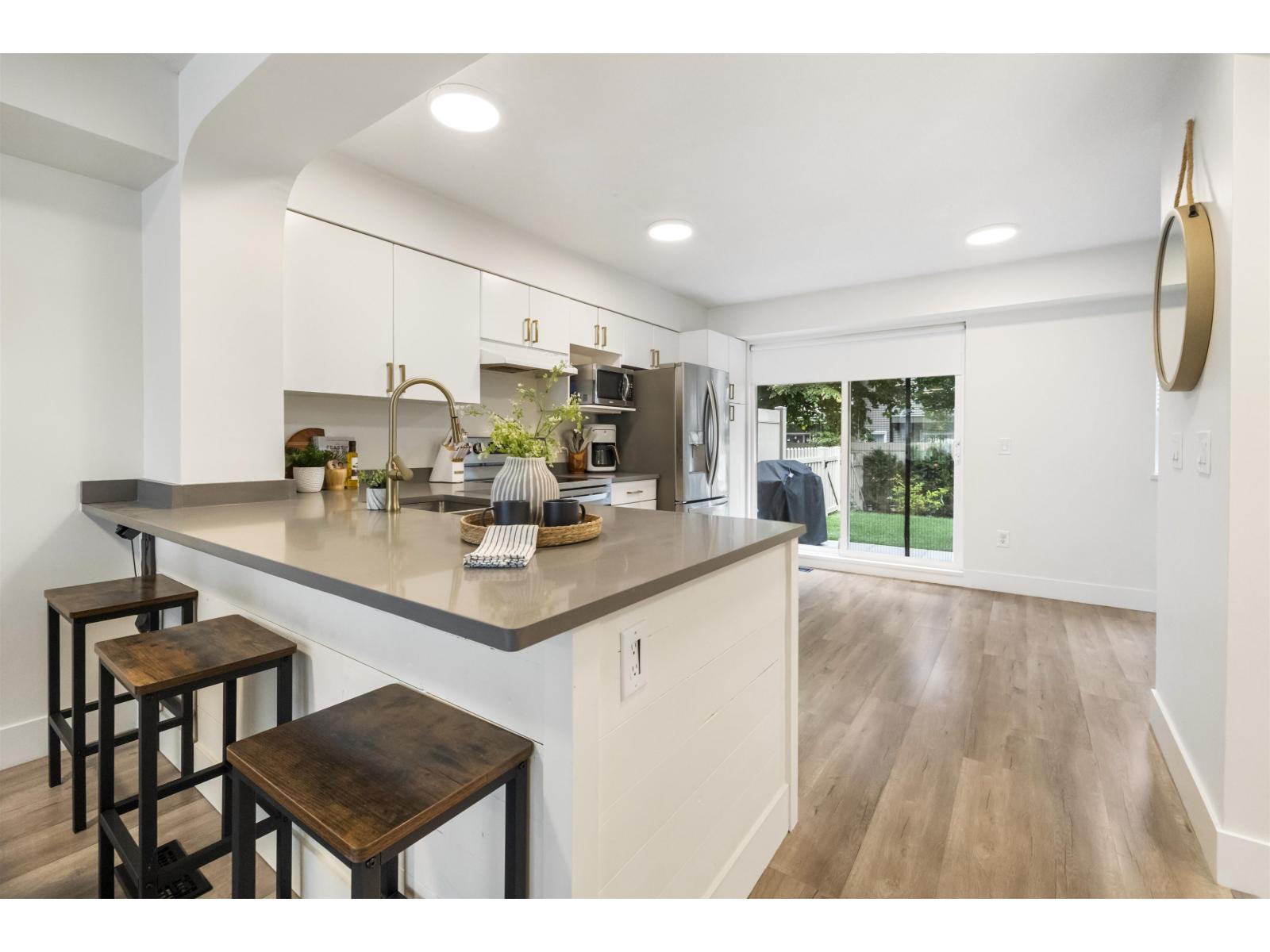 $403.96 MonthlyWelcome to Ballantyne, a highly sought after complex in the heart of Fleetwood, close to schools, parks, shopping, transit, and all amenities. This beautifully updated 2 bedroom 2 bathroom townhome features a bright white kitchen with quartz countertops, gold hardware, fresh paint, and updated flooring throughout. The main floor offers a spacious open concept layout that flows seamlessly to your private walk out backyard, complete with artificial turf for low maintenance year round enjoyment. Both bedrooms are generously sized with plenty of room for your furnishings and personal touches. Located in a quiet and family friendly community, this home is ideal for first time buyers looking for a move in ready property in one of Surrey's most desirable neighbourhoods. (id:52823)