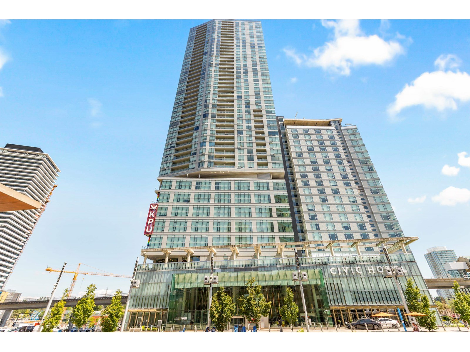 $394.60 MonthlyWelcome to 3 Civic Plaza - Surrey's premier high-rise. This 37th floor corner unit offers 1 bedroom, 1 bathroom, and 603 sq ft of open-concept living with stunning panoramic city and mountain views. Features include floor-to-ceiling windows, quartz countertops, stainless steel appliances, radiant heating, air conditioning, and in-suite laundry. Enjoy spa-like amenities including a fitness centre, steam room, hot tub, concierge service, and on-site café and restaurant. Located in the heart of downtown Surrey-just steps from Surrey Central SkyTrain, SFU campus, Central City Mall, City Hall, and the future UBC campus. Includes 1 secure parking stall and storage locker. Experience luxury living in one of Surrey's most iconic towers. Open House Sat July 26 2-4pm - Call the listing agent (id:52823)