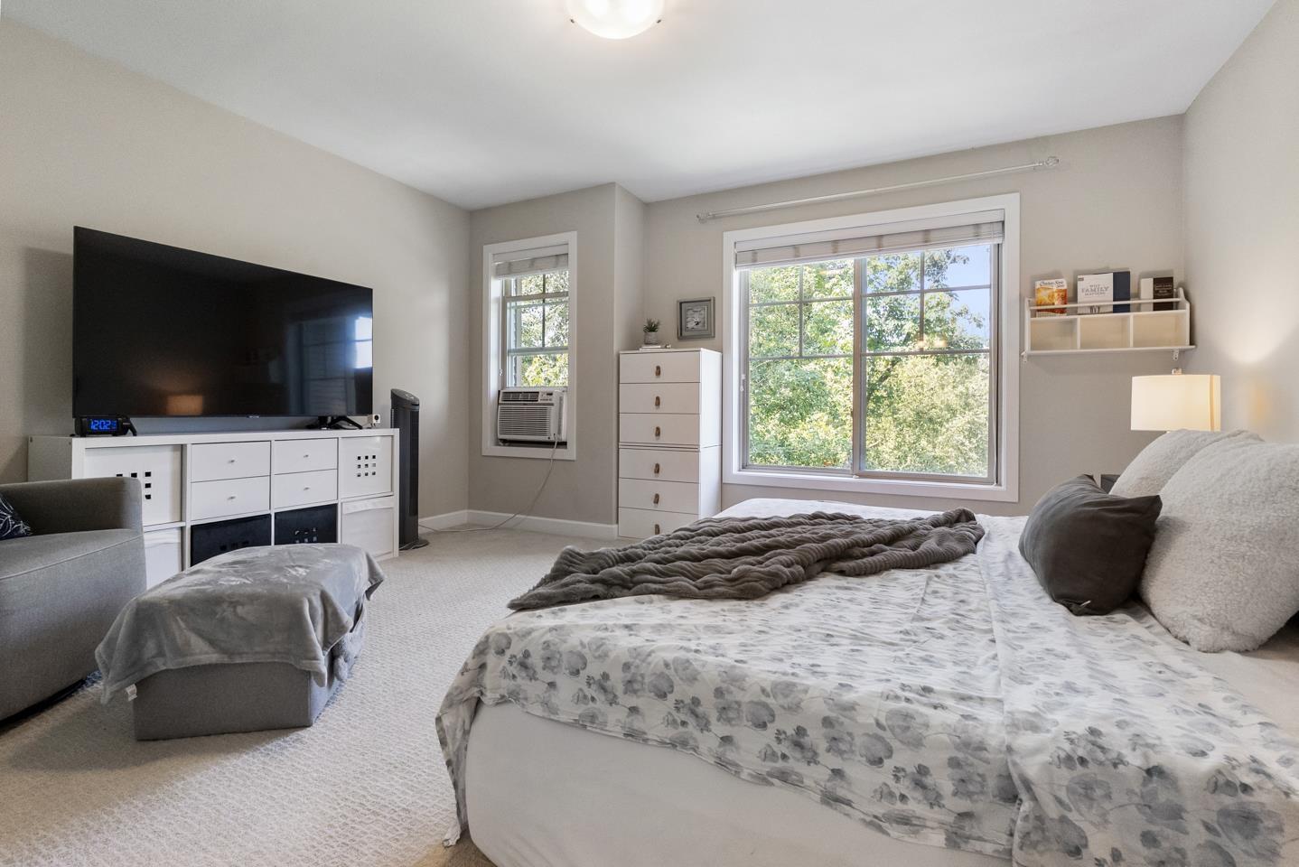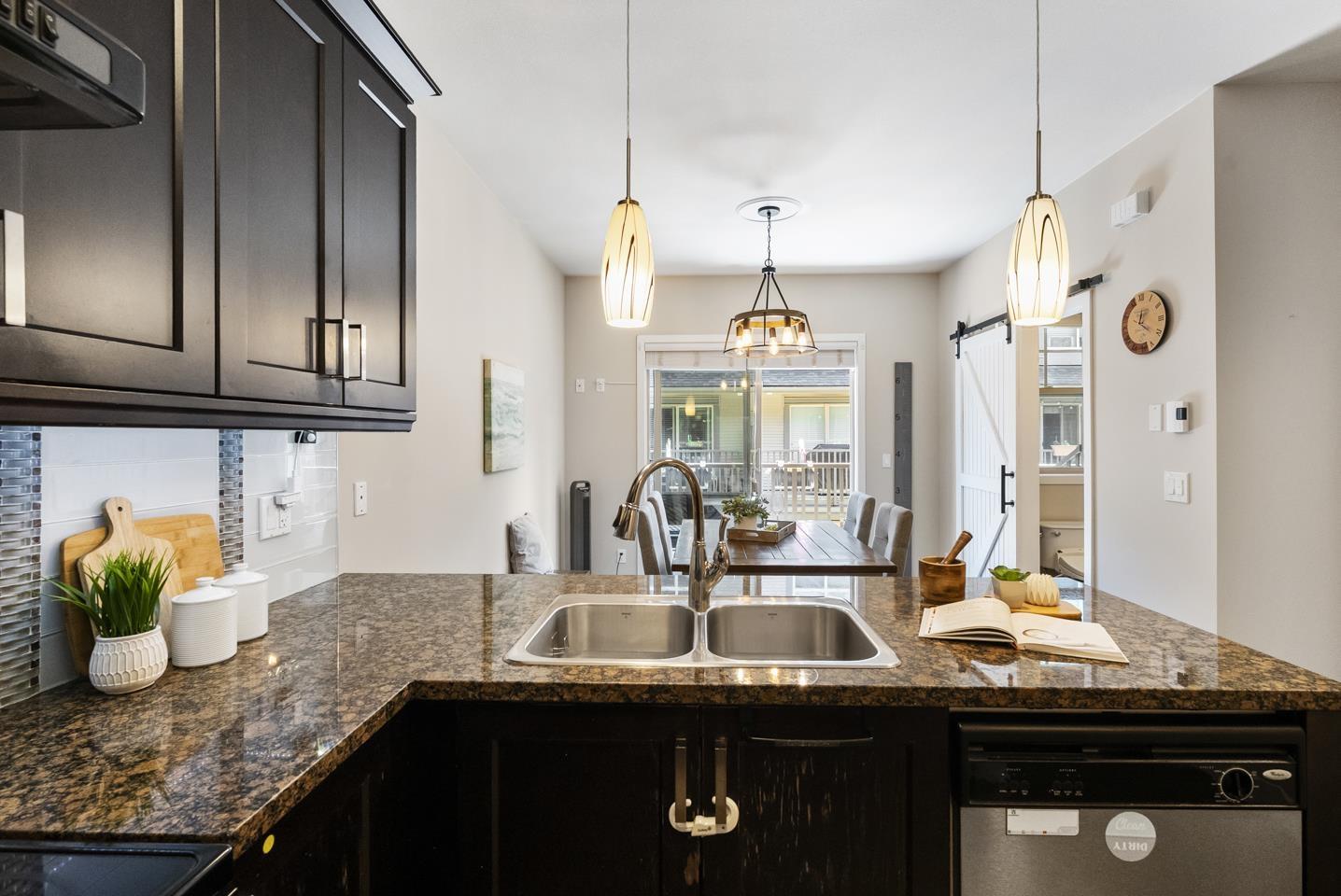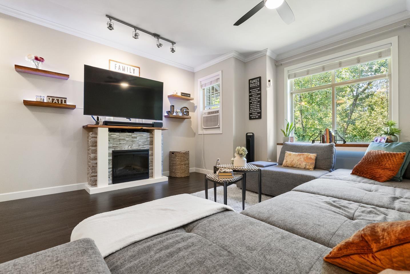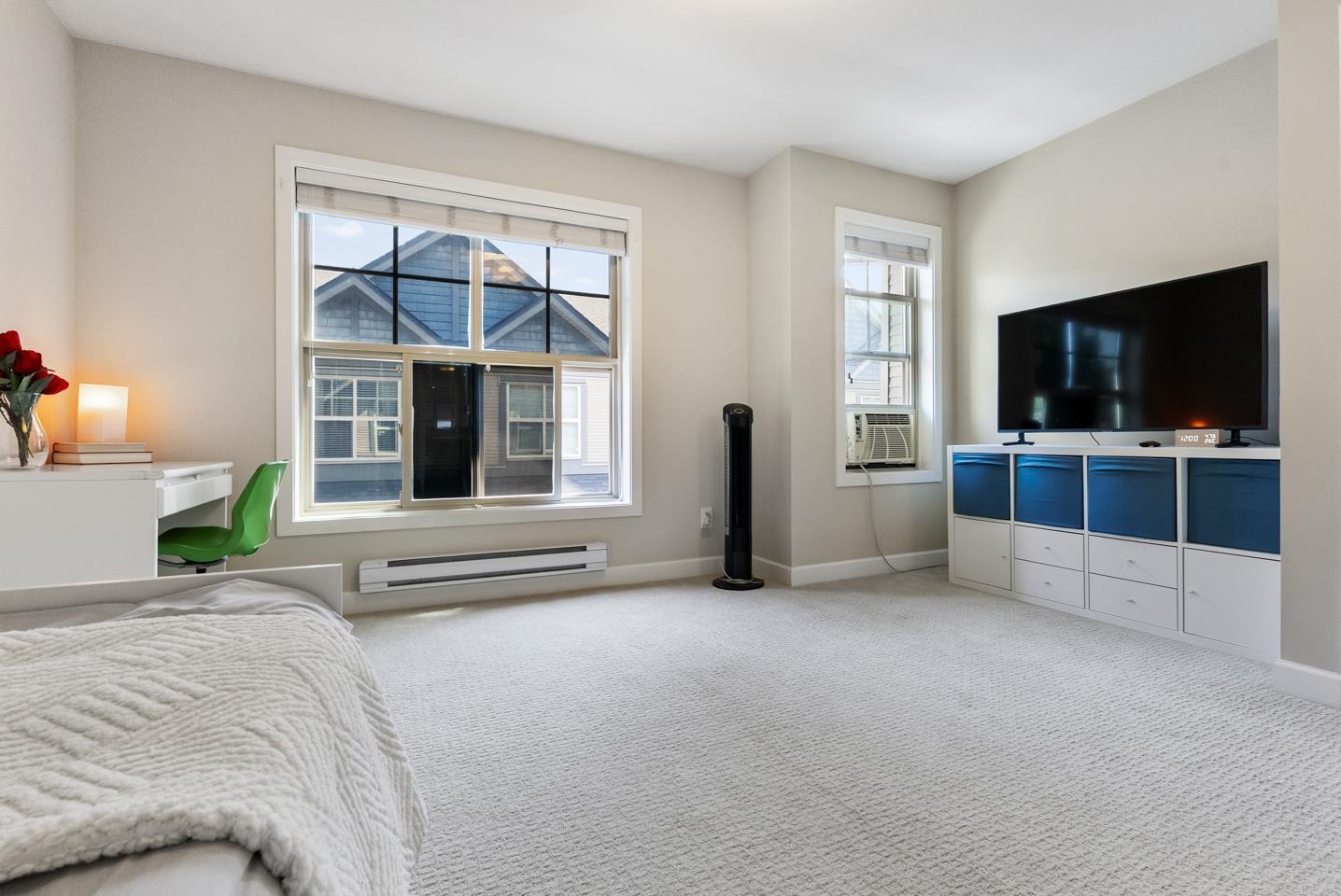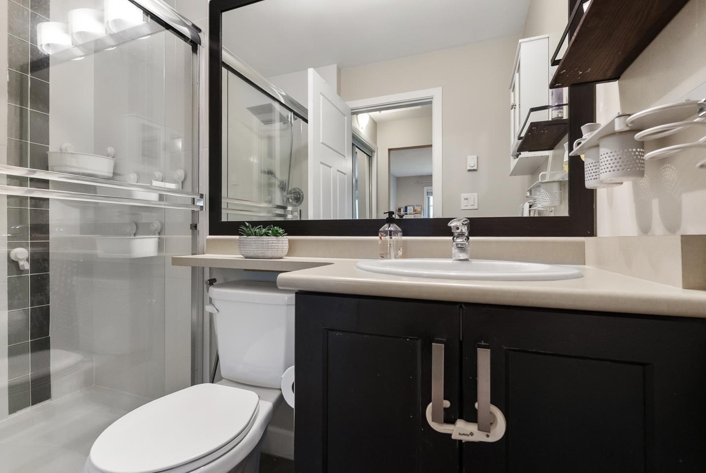 $294.83 MonthlyWelcome to Unit 38 at Allegro in Clayton Heights-featuring a rare floorplan with two oversized bedrooms upstairs, each with its own ensuite, plus a bonus bedroom/flex area on the ground floor ideal for a home office. Enjoy a cozy living room with crown moulding overlooking greenspace, a powder room with barn door, and a well-maintained interior. Equipped with smart light switches, smart thermostat, and motion sensor lights/exhaust fans in washrooms. Double tandem garage includes epoxy flooring and extra storage. Hot water tank replaced in 2022. Family-friendly complex with playground and clubhouse. Minutes to schools, daycares, shopping, and major routes. (id:52823)