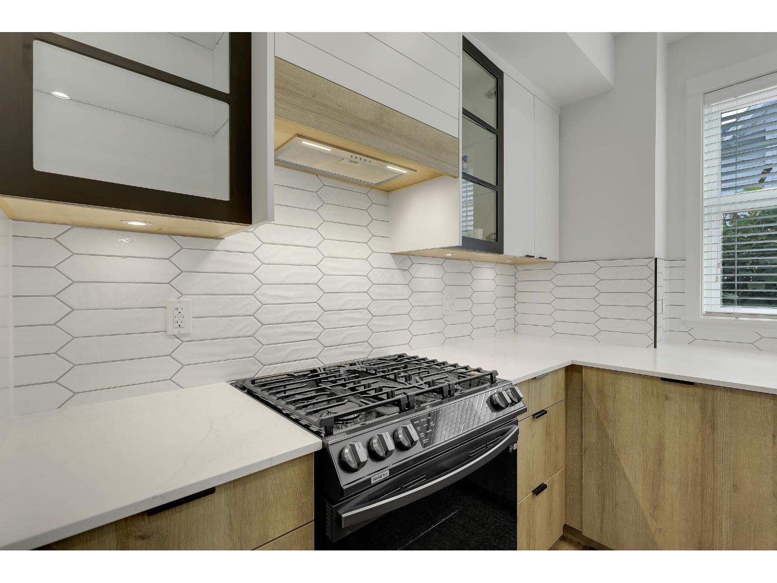 $259.16 MonthlyWelcome to River + Pine - a hidden gem tucked away along the scenic Nicomekl River in sunny South Surrey. Barely lived in and still showing like new, this 1,253 sq. ft. townhome offers a thoughtfully designed layout featuring 2 spacious bedrooms, a versatile flex room, and 2.5 baths. Expansive windows fill the home with natural light, highlighting the 9-ft ceilings, wide-plank laminate flooring, and open-concept design that create a seamless modern aesthetic. The gourmet kitchen impresses with black stainless steel Samsung appliances (including gas range), designer cabinetry, full-height porcelain backsplash, matte black fixtures, under-cabinet lighting, and quartz countertops throughout. Enjoy 2 private outdoor spaces incl front yard & large balcony, tandem garage (in/out) w/ updated epoxy flooring & roughed-in EV charger. Conveniently located near commuter routes, top schools, and local amenities - this home offers the perfect blend of style, comfort, and convenience. Scenic trails and parks just steps away, (id:52823)