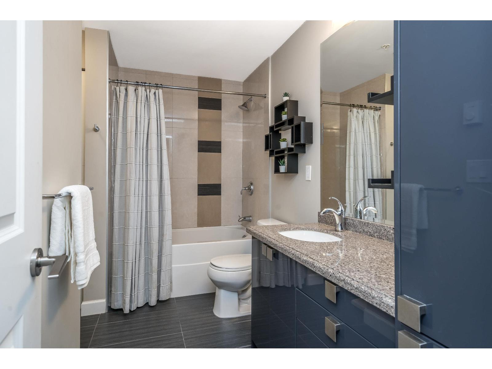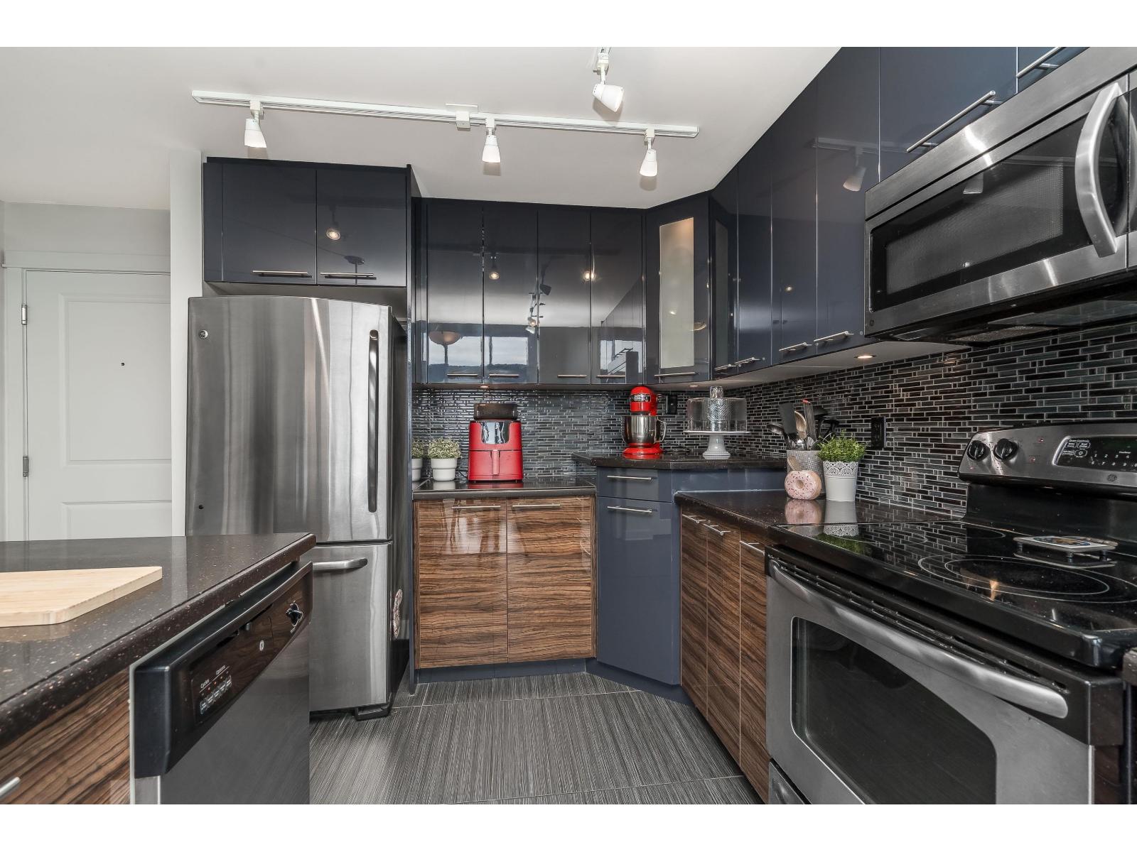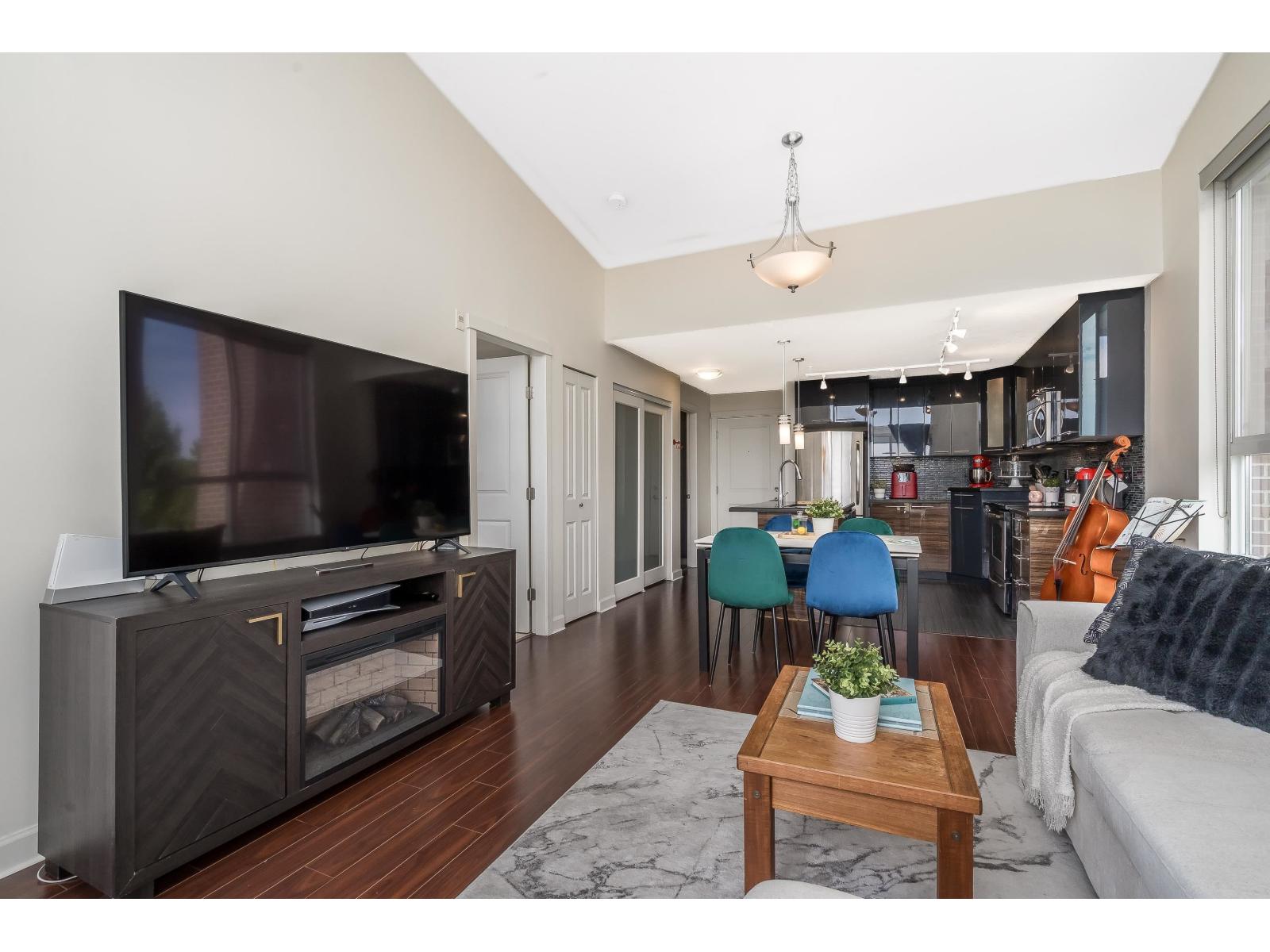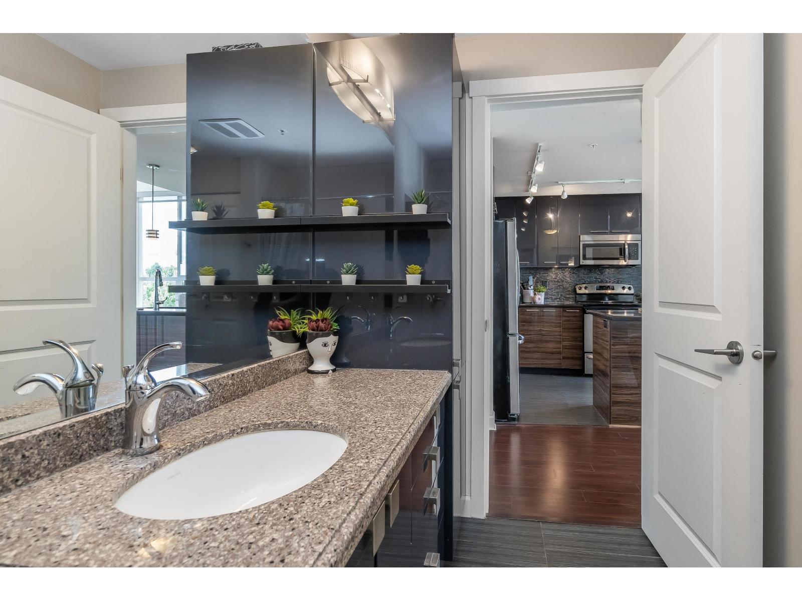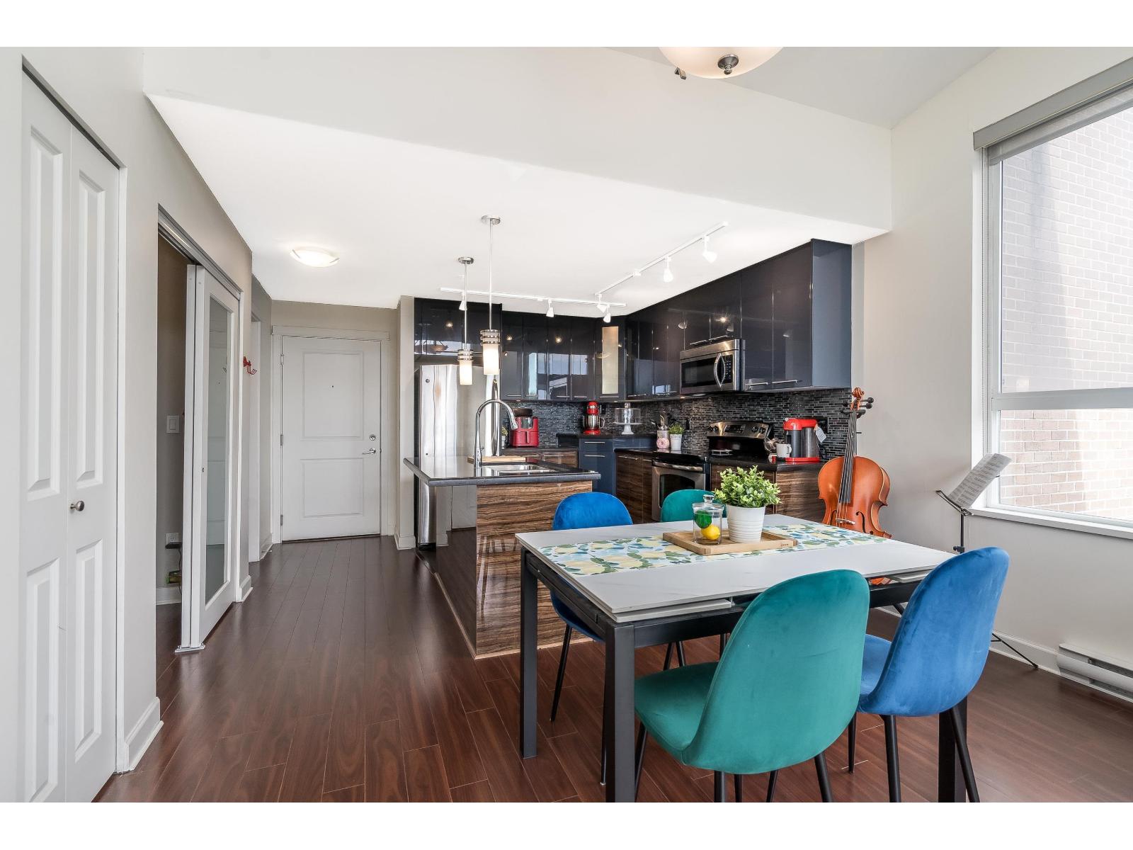 $318.75 MonthlyLuxor Presents: Top Floor Corner Unit 1 Bed PLUS Den! Kitchen features high gloss two tone cabinetry, stainless steel appliances, island with double sink, and quartz counters. Open floorplan with 11ft ceilings, eating area, living room with oversized windows, and den! Spacious primary bedroom with south facing patio and sweeping city views. Attached you will find a 4 pc ensuite and in suite laundry. Unit comes with 1 parking stall and 1 locker. Complex has guest suite, gym, and media room. Walking distance to all amenities: shopping, parks and transit. Quick access to Highway 99 and Alex Fraser Bridge. (id:52823)