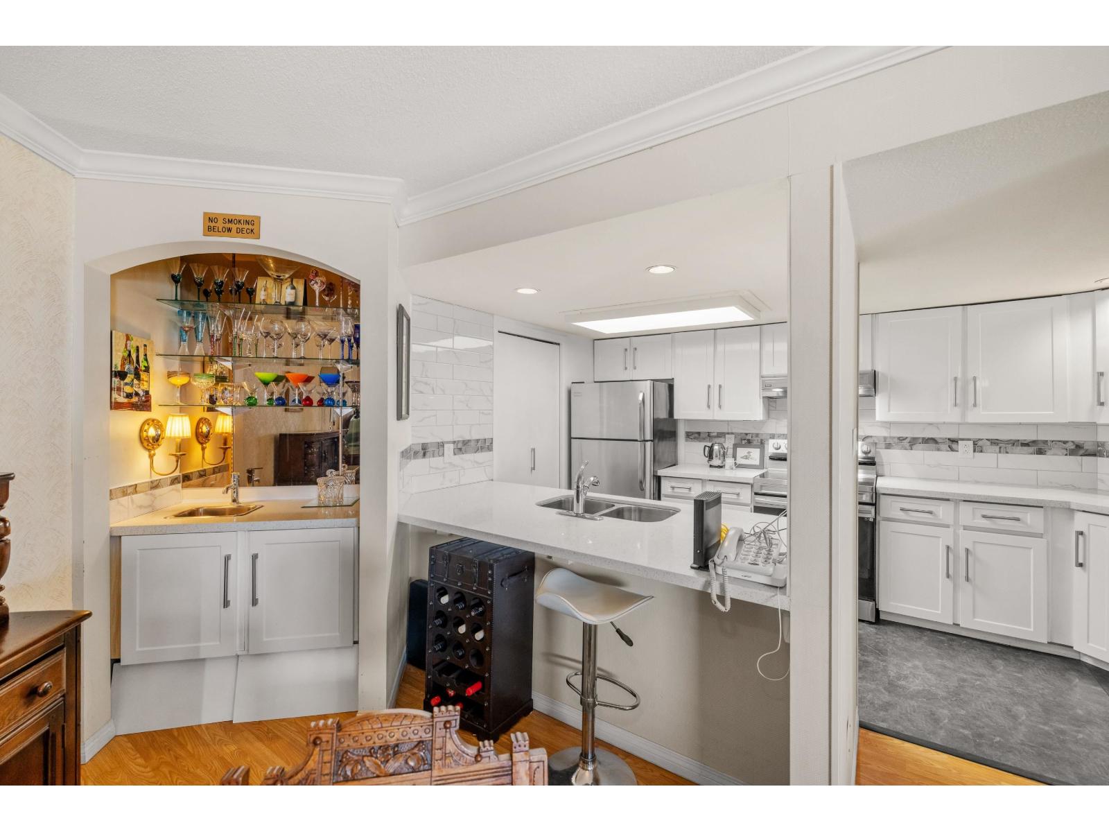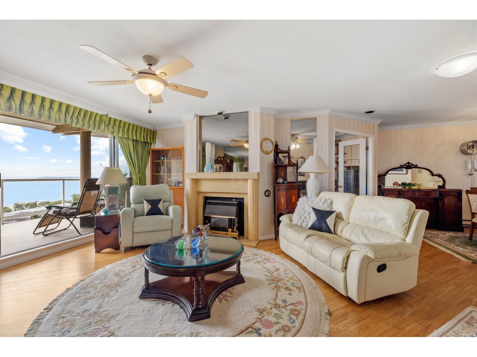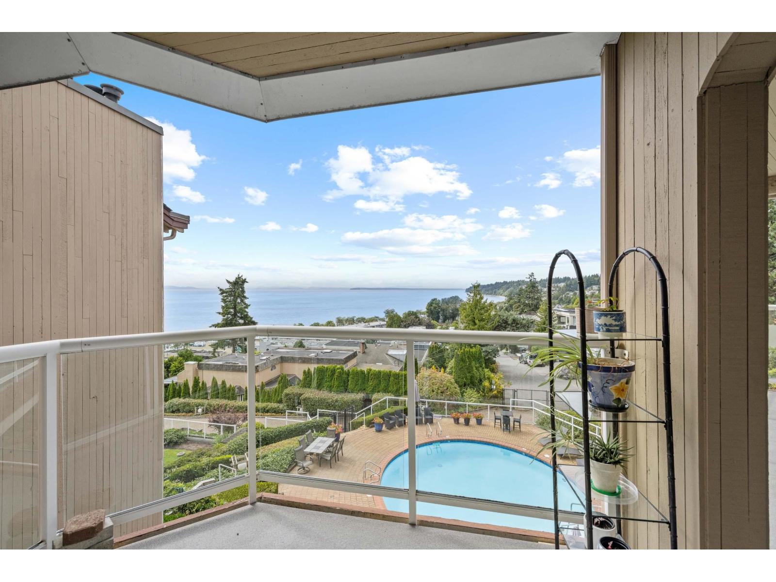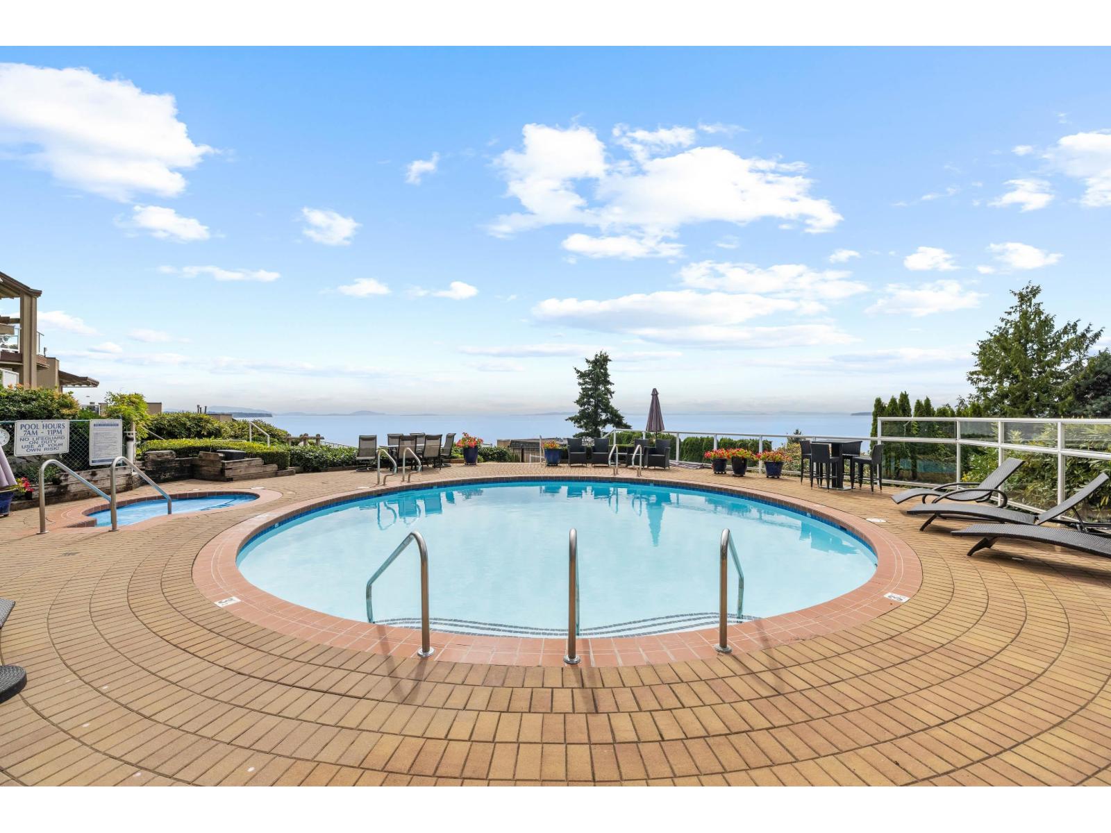$762 MonthlyWelcome to Victoria Terrace by Bosa-your seaside retreat in the heart of White Rock! Perfectly positioned in one of the area's most coveted locations, this 2 Bed + Den, 2 Bath home offers completely unobstructed, panoramic views from your 2 balconies of the ocean, pier & Gulf Islands from every room. Thoughtfully renovated, the kitchen dazzles with sleek cabinetry, quartz counters & stainless steel appliances, while both bathrooms have been beautifully updated with modern finishes. Resort-style living awaits with a sparkling outdoor pool & hot tub overlooking the ocean. Just steps to the promenade, beach, cafés & restaurants, this home truly embodies the White Rock lifestyle. In a well-managed, 55+ community that welcomes pets, Victoria Terrace blends luxury, comfort & tranquility. (id:52823)