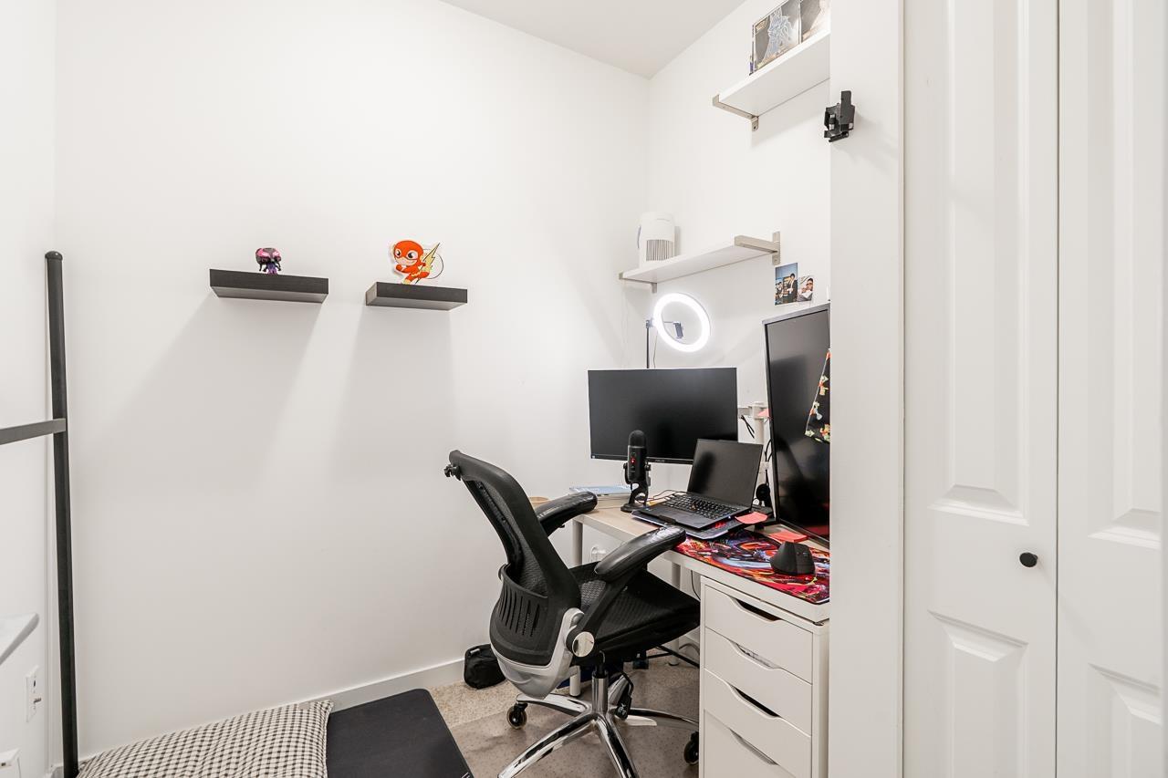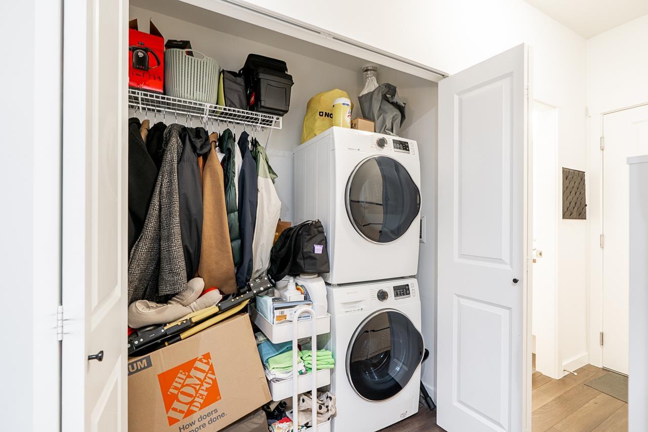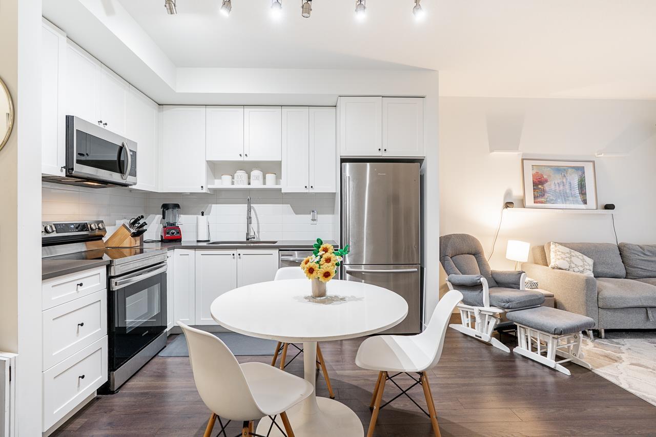 1 bed + den at Fleetwood Village by Dawson + Sawyer! Offering 613sqft of well designed living space plus a 62sqft covered balcony overlooking the landscaped courtyard. Bright open layout with generous ceiling height, stainless steel Samsung appliances, quartz countertops, sleek white cabinetry, and durable laminate flooring. Spacious bedroom with walk in closet, versatile den ideal for a home office, and full size in suite laundry. Enjoy peaceful courtyard exposure away from busy roads. Quiet 4th floor location. Fantastic amenities including fitness centre, lounge, games room, music room, yoga space, landscaped courtyard, playground, and outdoor ping pong. Steps to shopping, schools, parks, and short walk to future SkyTrain station. Excellent opportunity for first time buyers or investors. (id:52823)