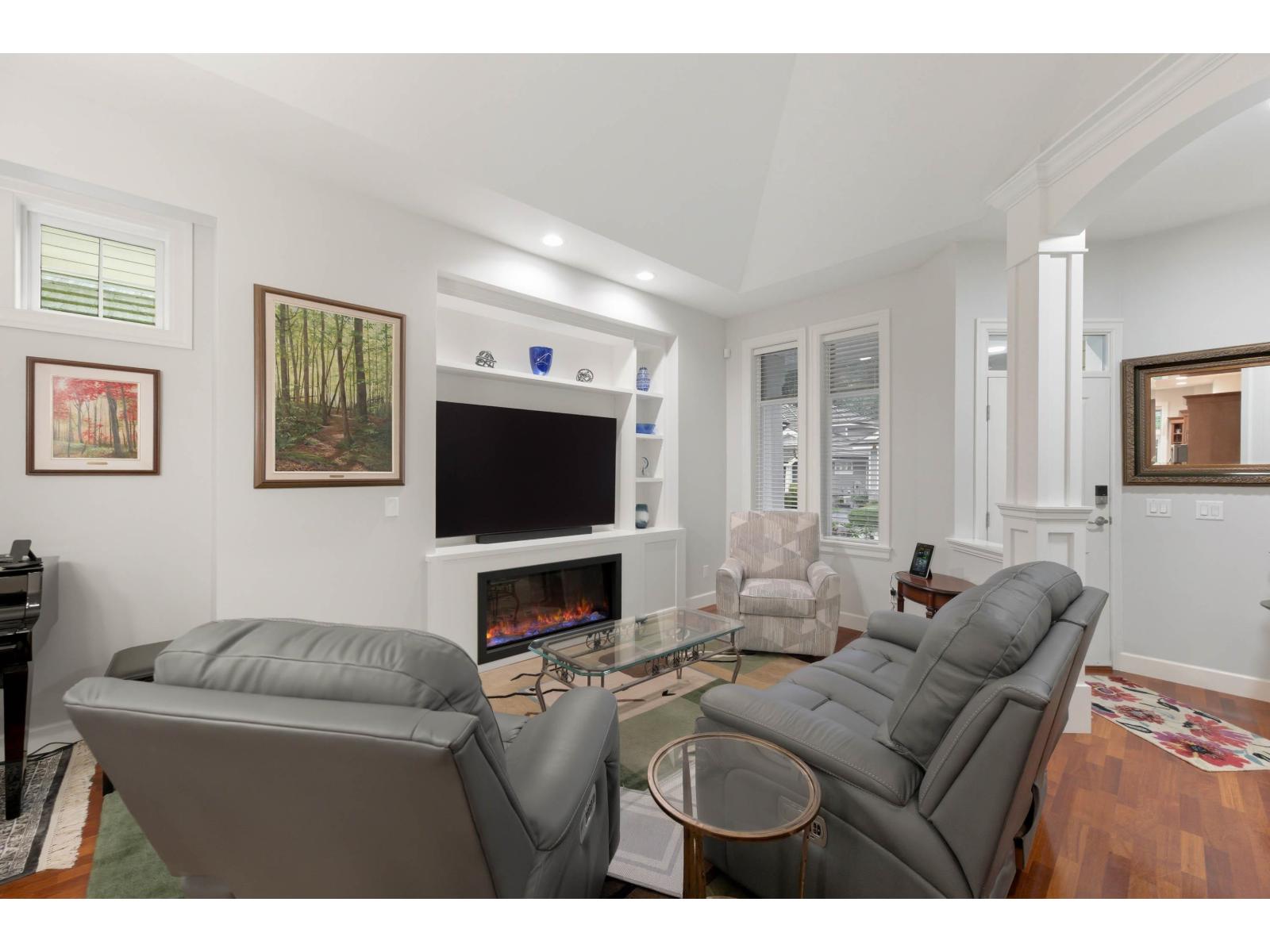 $545.16 MonthlySouth Surrey's premier gated community ELGIN POINTE. This beautifully updated townhouse combines the privacy of a home with the ease of strata living. The main floor features vaulted ceilings, LED flame effect fireplace, custom cabinetry with accent lighting, Bright kitchen with Island. The huge primary suite offers a renovated ensuite with double sinks, walk-in shower. New carpet, paint & Brazilian hardwood floors. Upstairs includes 2 bedrooms, full bath, and large den/office. The fully finished lower floor features full height ceilings, rec room, bedroom, bath, and oversized utility/storage w/ high eff furnace and A/C. Full size 2 car double garage with storage. Enjoy the quiet & private fenced yard with garden & extended patio. Well run gated community.OPEN HOUSE SAT JANUARY 17TH 2-4 PM (id:52823)
