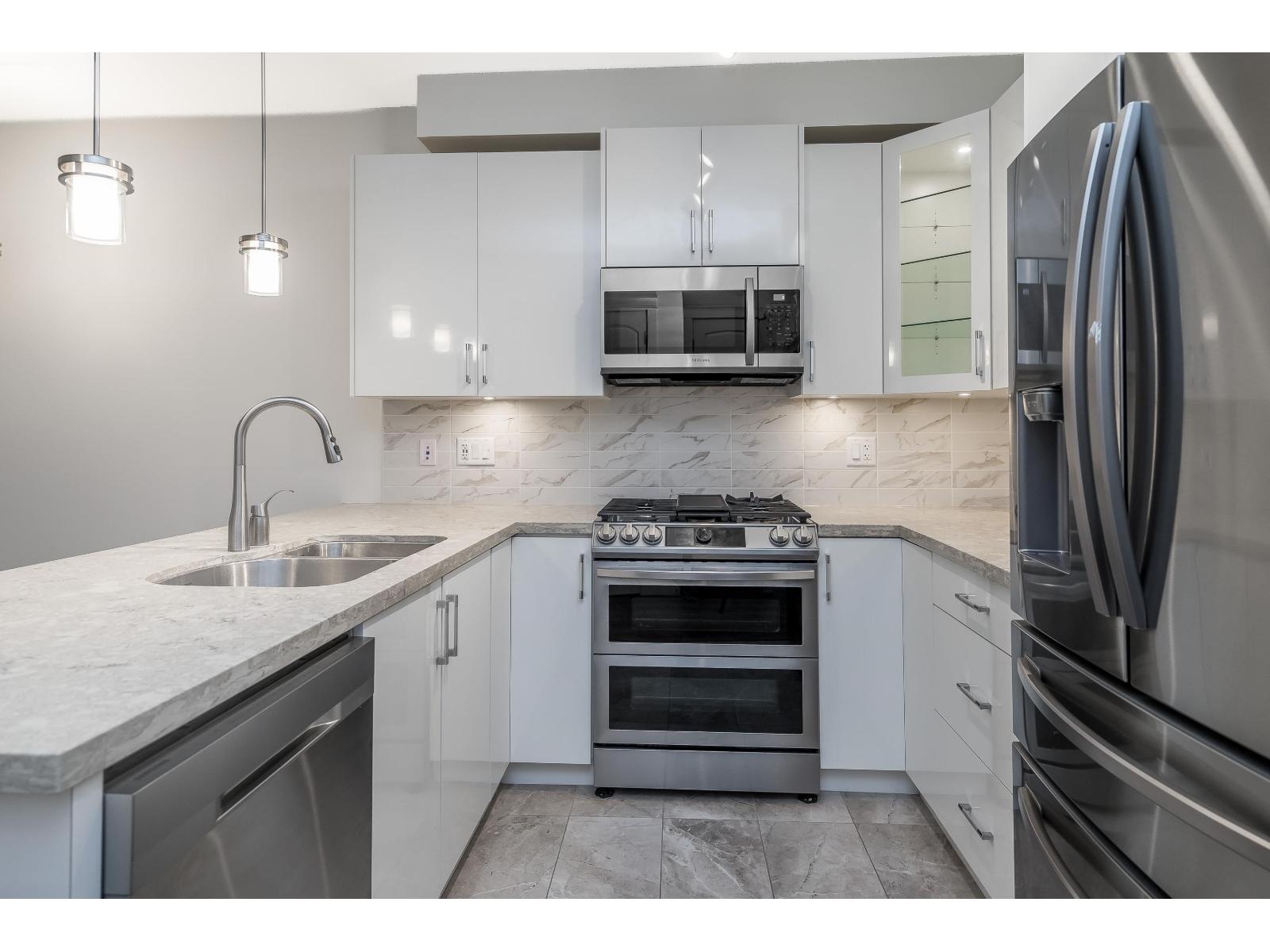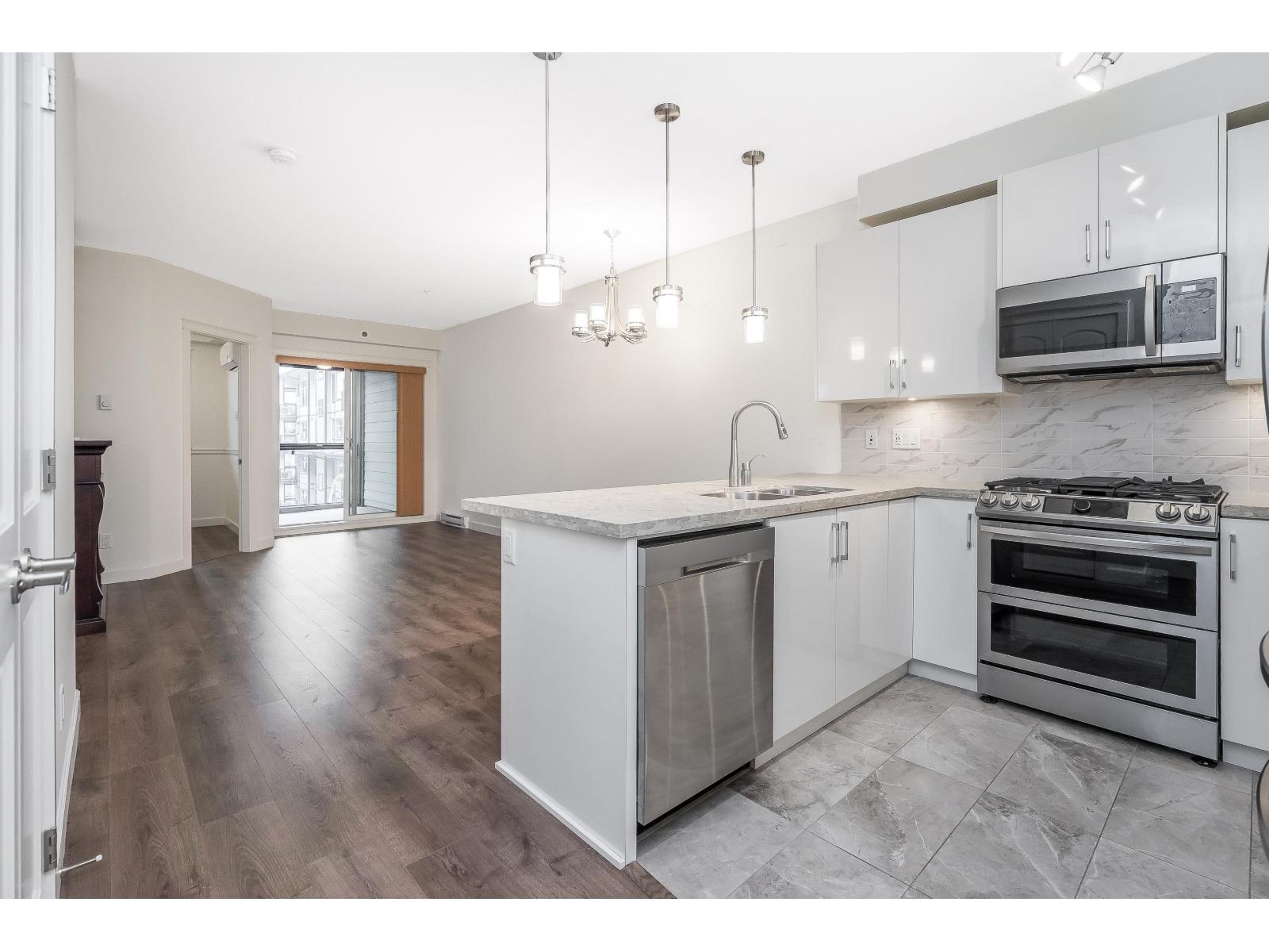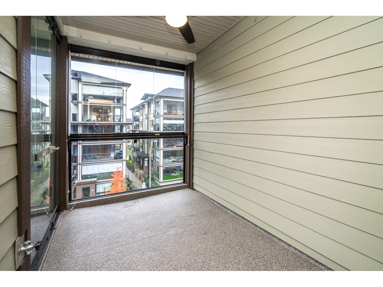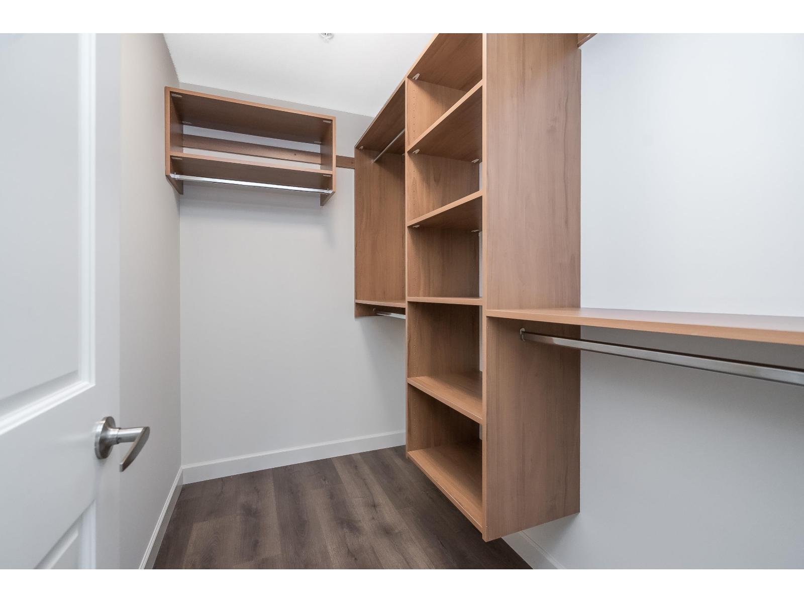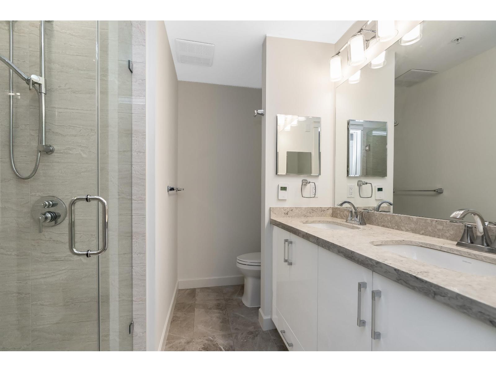This bright 2-bedroom + den, 2-bathroom home offers over 1,000 sq. ft. of open-concept living with 9' ceilings, large windows, and engineered hardwood floors. The gourmet kitchen features granite counters, stainless steel appliances, and a central island. Enjoy a spacious living/dining area with fireplace and access to a covered balcony. The primary suite includes a walk-in closet and ensuite with heated floors, double sinks, glass shower, and soaker tub. A second bedroom, versatile den, full bathroom, air conditioning, and in-suite laundry add comfort. Rent includes 2 secure parking stalls and a large storage locker. Yorkson Creek provides a fitness centre, amenity room, and landscaped grounds. Steps to Willoughby Town Centre, schools, - Yorkson Creek Middle & R.E. Mountain Secondary! (id:52823)