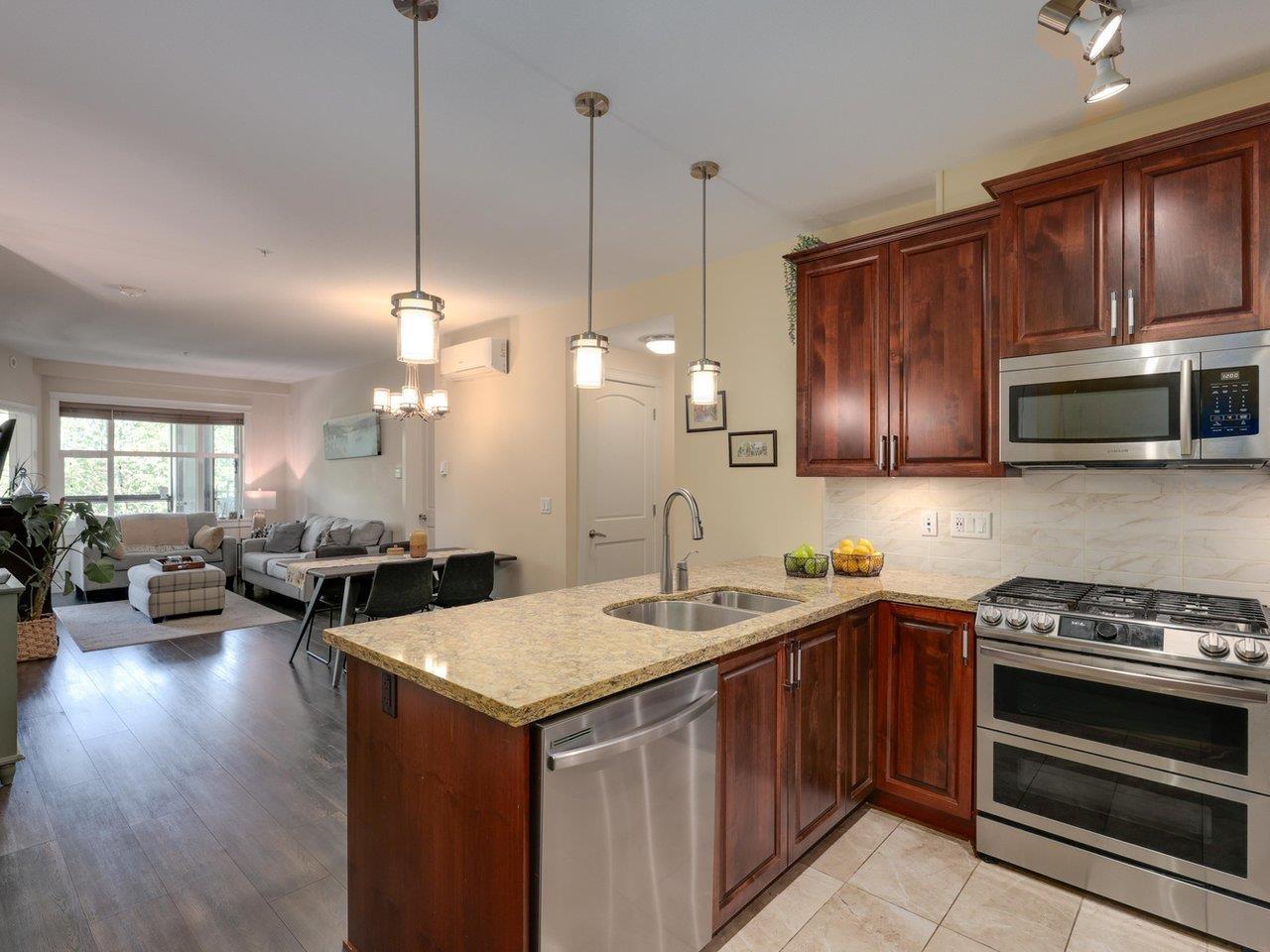 $414.07 MonthlyBeautiful 2-Bedroom + large flex room in Coveted Yorkson Park -- Willoughby Heights. Don't miss this incredible opportunity to own a stunning 2-bedroom +large flex room, 2-bathroom home in the highly sought-after Yorkson Park Development in Willoughby Heights. This well-designed unit features a bright, modern kitchen equipped with high-end stainless steel appliances, including a gas stove with double oven.The spacious primary suite offers a walk-through closet leading to a luxurious 4-piece ensuite. Two additional bedrooms and a second full bathroom provide ample space for family, guests, or a home office. Enjoy open-concept living with a cozy dining area and living room that opens onto an oversized, covered deck -- complete with a BBQ hookup. 2 parking, 1 large locker, AC. SUN OPEN 2-4PM (id:52823)