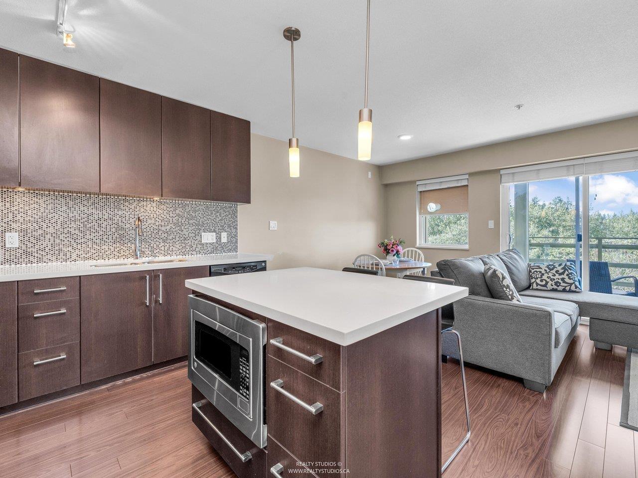$331.62 MonthlyWelcome to Morgan Crossing, a vibrant community where all amenities are just steps away! This stunning Top Floor 1 bedroom + den feels like new! Featuring a smartly designed open kitchen with quartz island overlooking the dining and living room--perfect for entertaining and everyday comfort. Stainless steel appliances, granite bathroom counters and in-suite laundry with bonus storage add convenience! Surrounded by 50+ retail shops, trendy eateries, fitness club, Thrifty's, London Drugs, banks, dentists, wellness services and more! Lifestyle here will not disappoint (Parking #337, Locker #191). (id:52823)