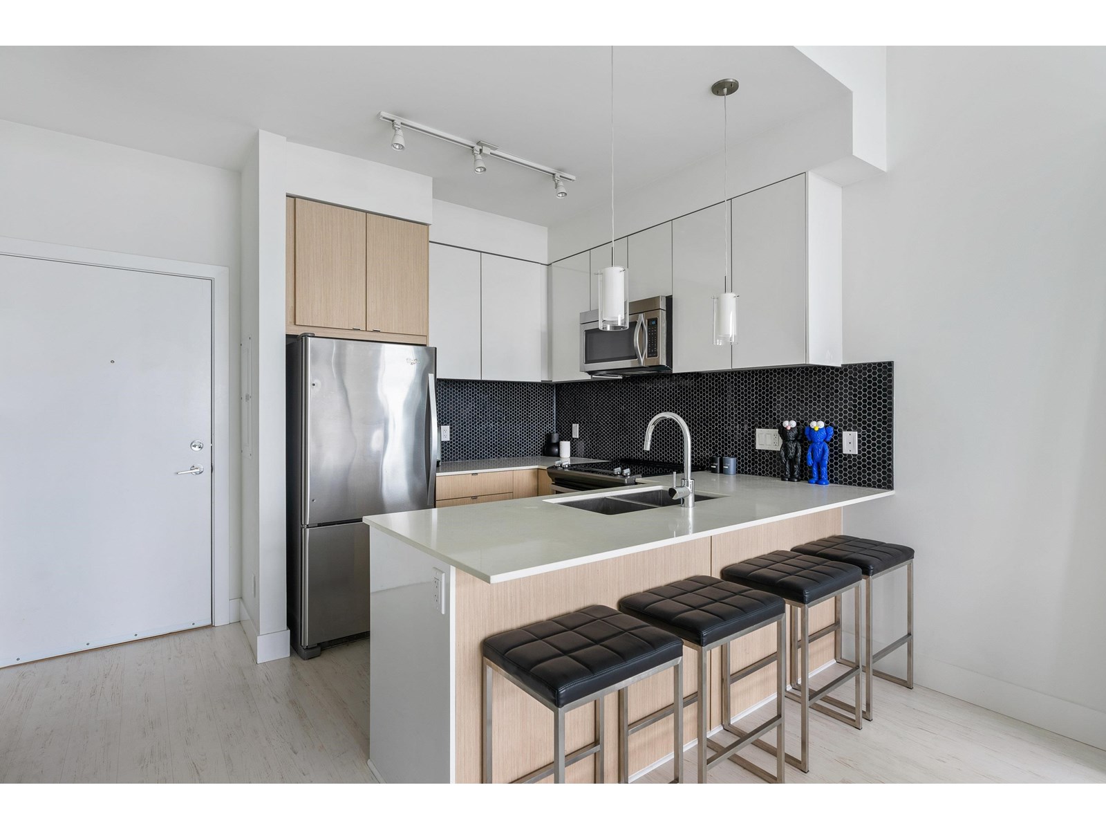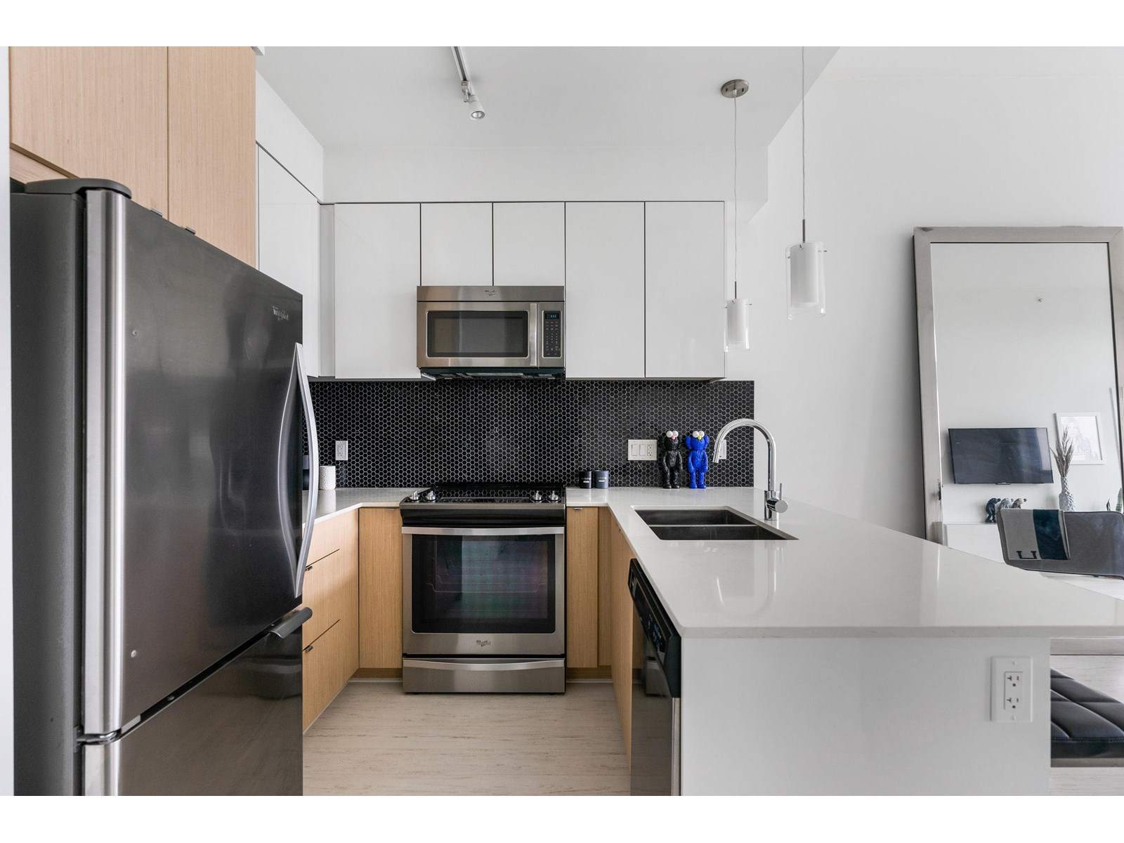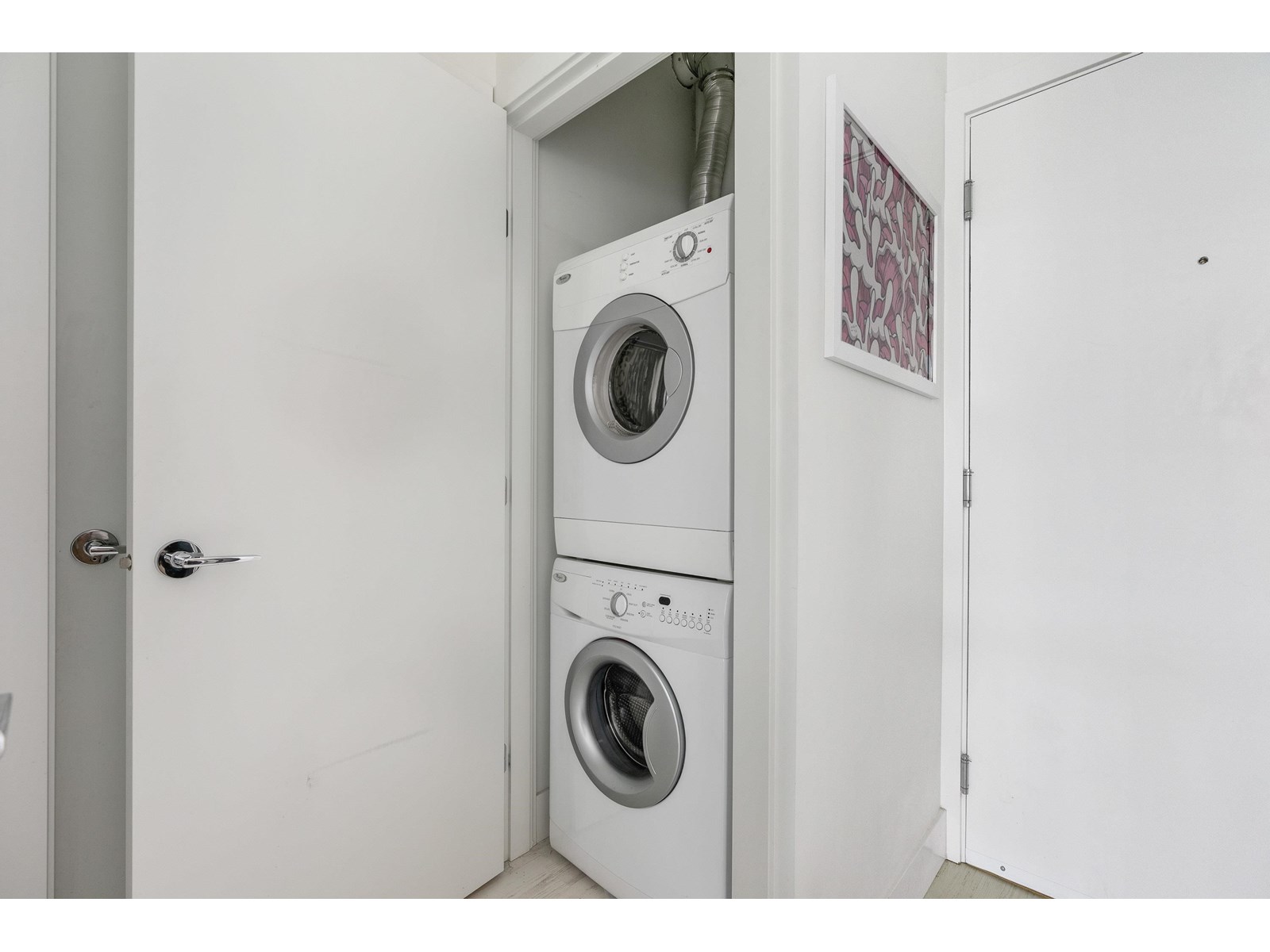 $355.80 MonthlyWelcome to Yale Bloc - Top Floor Living with Stunning Mountain & Valley Views! Soaring 11-foot ceilings and expansive windows flood the space with natural light, creating a bright and airy atmosphere. The open-concept layout showcases light laminate flooring, white oak cabinetry, stainless steel appliances, and an upgraded washer/dryer, combining modern style with everyday functionality. The entire unit has just been freshly painted, making it move-in ready. Residents of Yale Bloc enjoy access to a fully equipped fitness center, community lounge, and secure underground parking. Conveniently located just steps from shopping, dining, parks, and transit, everything you need is right at your doorstep. Includes 1 parking stall and 1 storage locker. (id:52823)