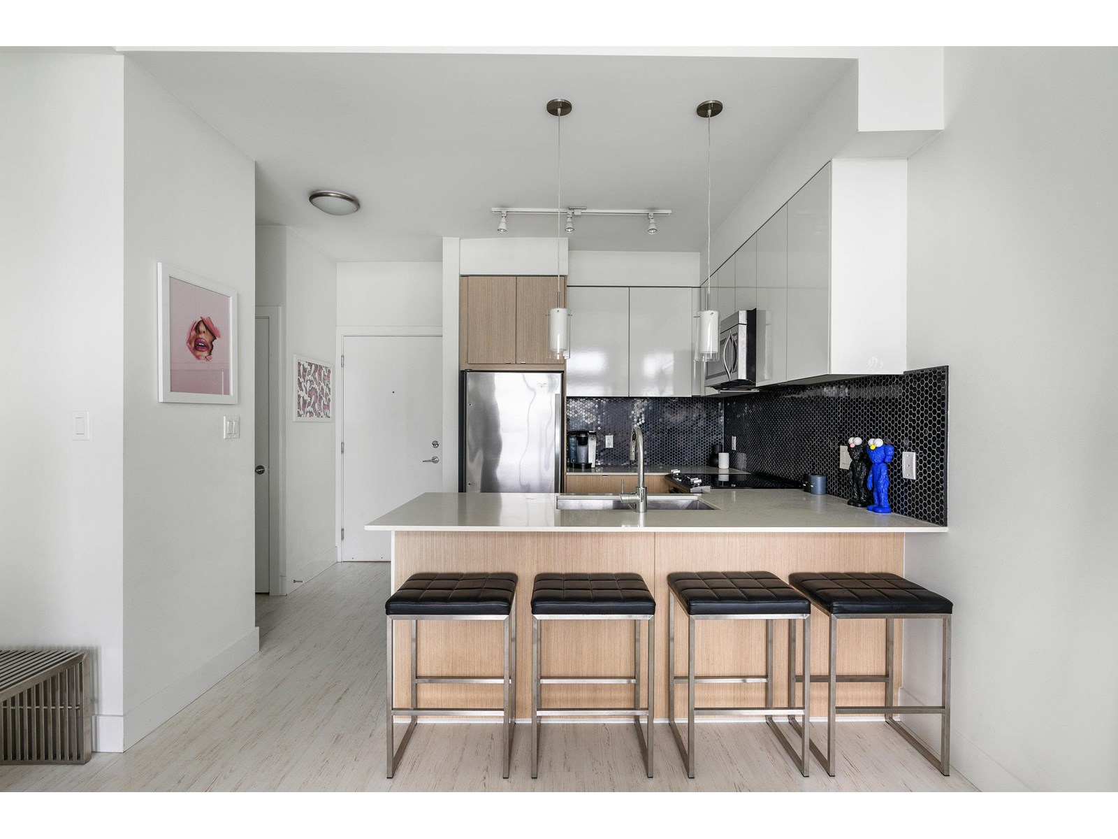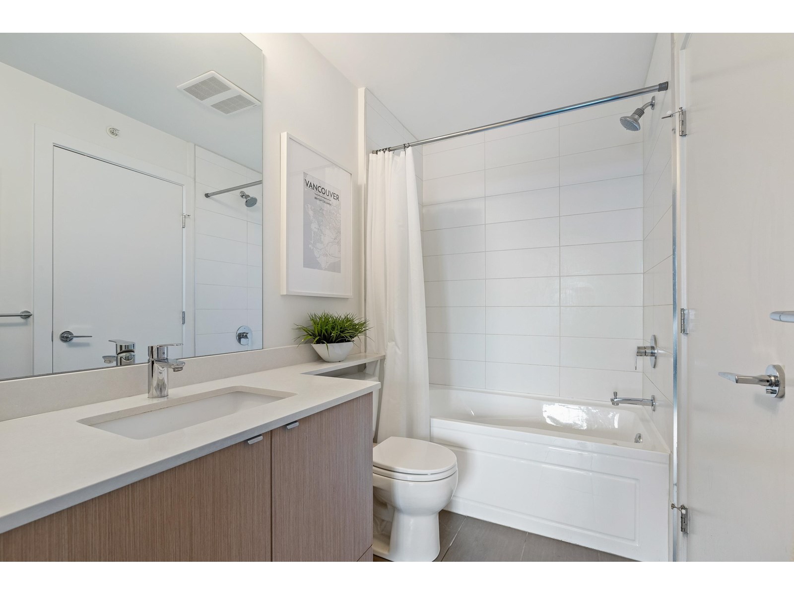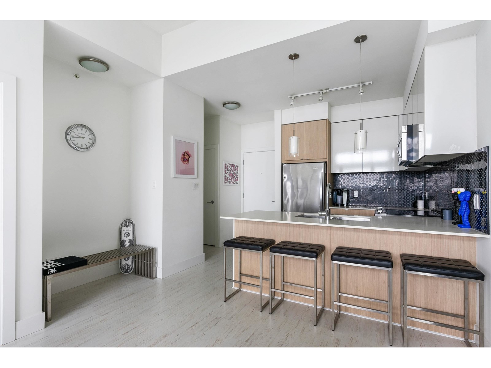 $355.80 MonthlyWelcome to Yale Bloc - Top Floor Living with Stunning Mountain & Valley Views! Soaring 11-foot ceilings and expansive windows flood the space with natural light, creating a bright and airy atmosphere. The open-concept layout showcases light laminate flooring, white oak cabinetry, stainless steel appliances, and an upgraded washer/dryer, combining modern style with everyday functionality. The entire unit has just been freshly painted, making it move-in ready. Residents of Yale Bloc enjoy access to a fully equipped fitness center, community lounge, and secure underground parking. Conveniently located just steps from shopping, dining, parks, and transit, everything you need is right at your doorstep. Includes 1 parking stall and 1 storage locker. (id:52823)