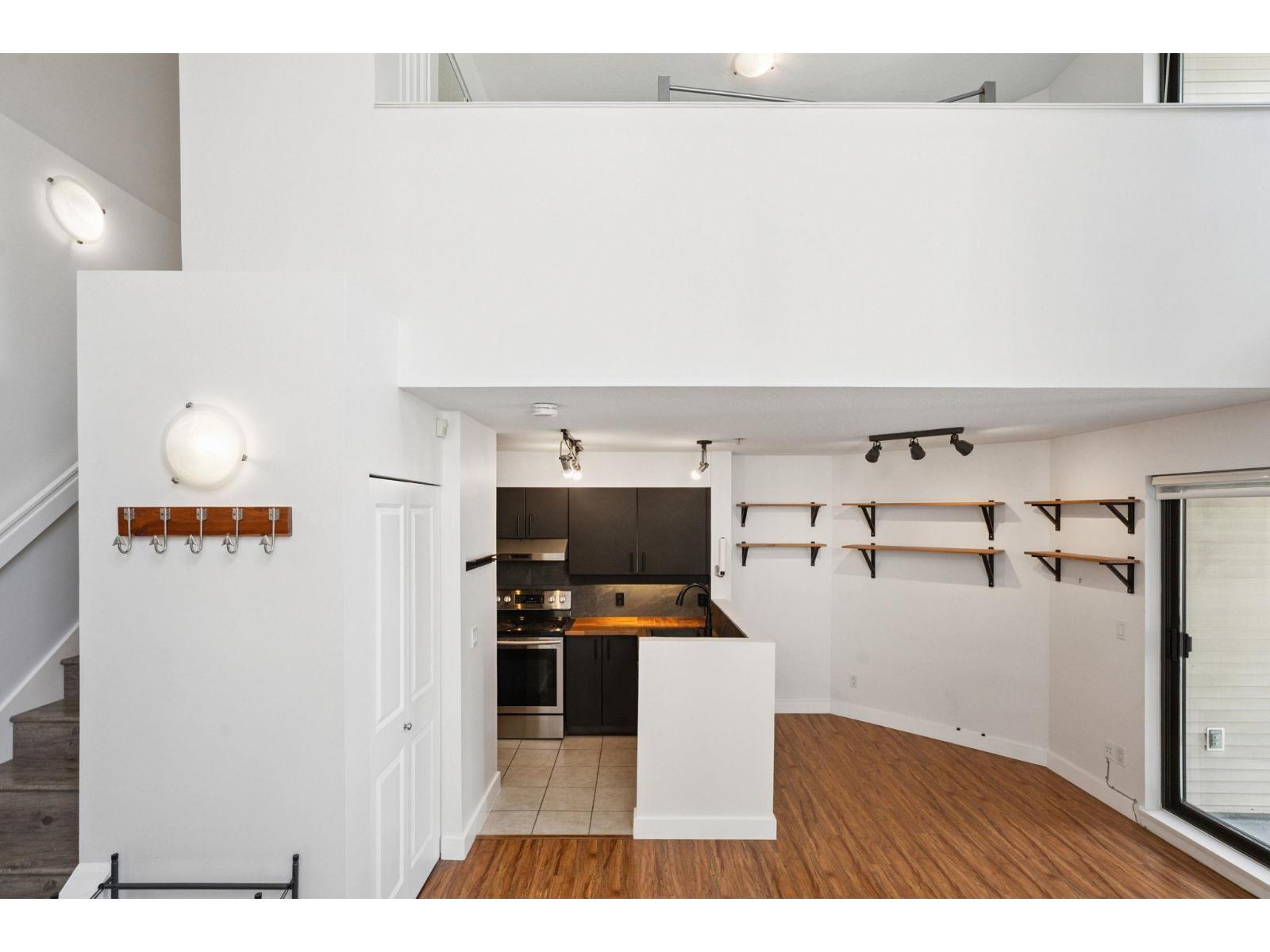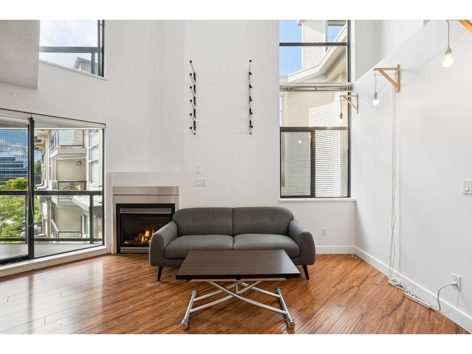 $355.01 MonthlyWelcome to The Access! This stunning 1 bedroom, 1 bathroom TWO LEVEL top floor PENTHOUSE-LOFT has been beautifully updated and is move-in ready. Soaring 18' ceilings and floor-to-ceiling windows flood the home with natural light, while dual balconies provide city views from both levels. Recent renovations include wide-plank flooring, modern kitchen counters, stylish backsplash, s/s appliances, updated bathroom. Enjoy the fireplace, open-concept layout, and contemporary design throughout. The community offers fantastic amenities-clubhouse, gym, hot tub.. All this in an unbeatable location, just steps to Gateway SkyTrain, shopping, parks, and everyday conveniences. A perfect opportunity for first-time buyers, students, or investors! 1 Parking 1 Locker. (id:52823)