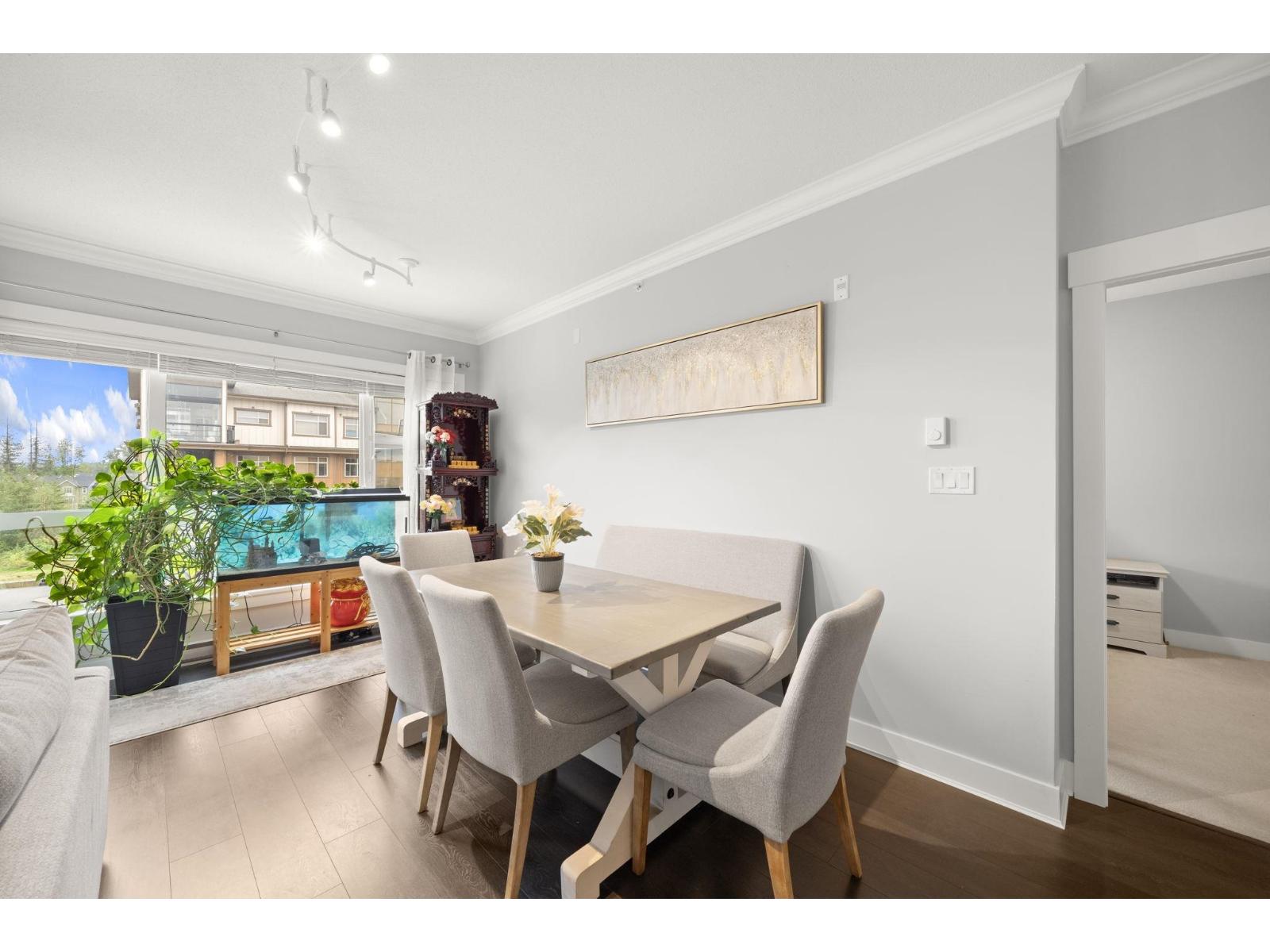 $523 MonthlyExquisite Top-Floor Residence at The Kensington, Willoughby Town Centre. This 1,240 sq.ft. south-facing home offers a sophisticated open layout with 2 bedrooms + den, soaring 9-ft ceilings, and two private sundecks. Elegant details include crown mouldings, a feature fireplace, and a refined neutral palette. The gourmet kitchen showcases a large island, quartz counters, and premium stainless steel appliances. Added conveniences: in-suite laundry with storage, two prime parking stalls (fits full-size truck), and a storage locker. Perfectly located steps from fine dining, boutique shops, transit, and Hwy 1 access. A rare opportunity for elevated living. (id:52823)