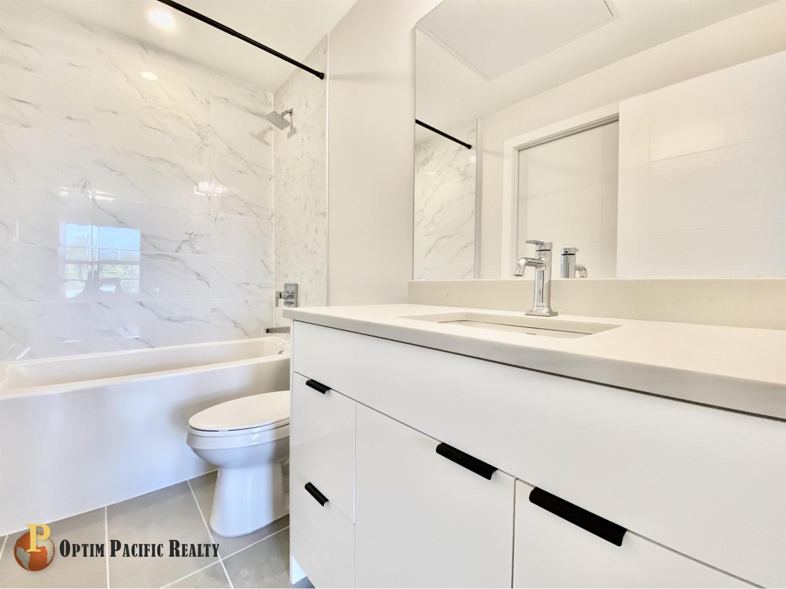 Welcome to this beautiful BRAND NEW 1 bed 1 bath at Galilea! The unit features laminate flooring throughout, S/S appliances & comes with 1 parking & 1 storage. Unit features: Open-concept rectangular floor plan w/ no wasted space, North facing quiet residential street, Laminate flooring throughout, Kitchen w/ quartz countertops & high-end S/S appliances, In-suite front load washer & dryer, Jack & Jill style ensuite bathroom, Pre-installed AC exhaust ports for easy portable AC set-up, Modern finishings throughout. Building Amenities: Fitness Centre, Galilea Club, Wellness Centre. Galilea is located in a quiet residential neighborhood just south of Surrey Central & minutes away from the City's shopping, entertainment, universities & parks-giving you the best of both worlds! (id:52823)
