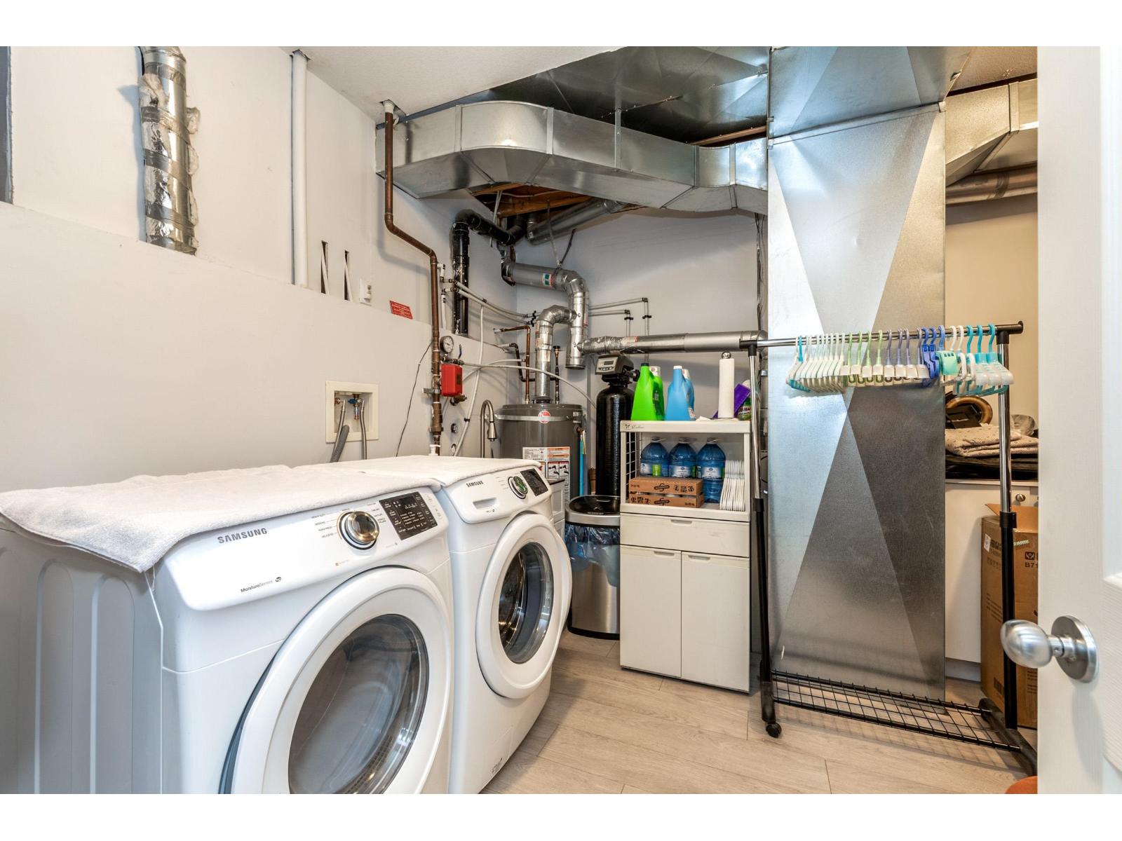 $401.28 Monthly10/10! Stunningly renovated 2,000+ sqft end-unit townhome surrounded by nature with a side-by-side double garage. Features a modern kitchen with new cabinets, stone countertops, and stylish backsplash, Reverse Osmosis water filter for entire home, extra washing sink in laundry room, new large hot water tank. Enjoy breathtaking views of the Burnaby skyline and mountains from both the main and upper floors. Fresh paint, new carpet, and a spacious open-concept layout with walkout patio to a private backyard. Tons of storage, central location with easy access to major routes-this home truly has it all! (id:52823)