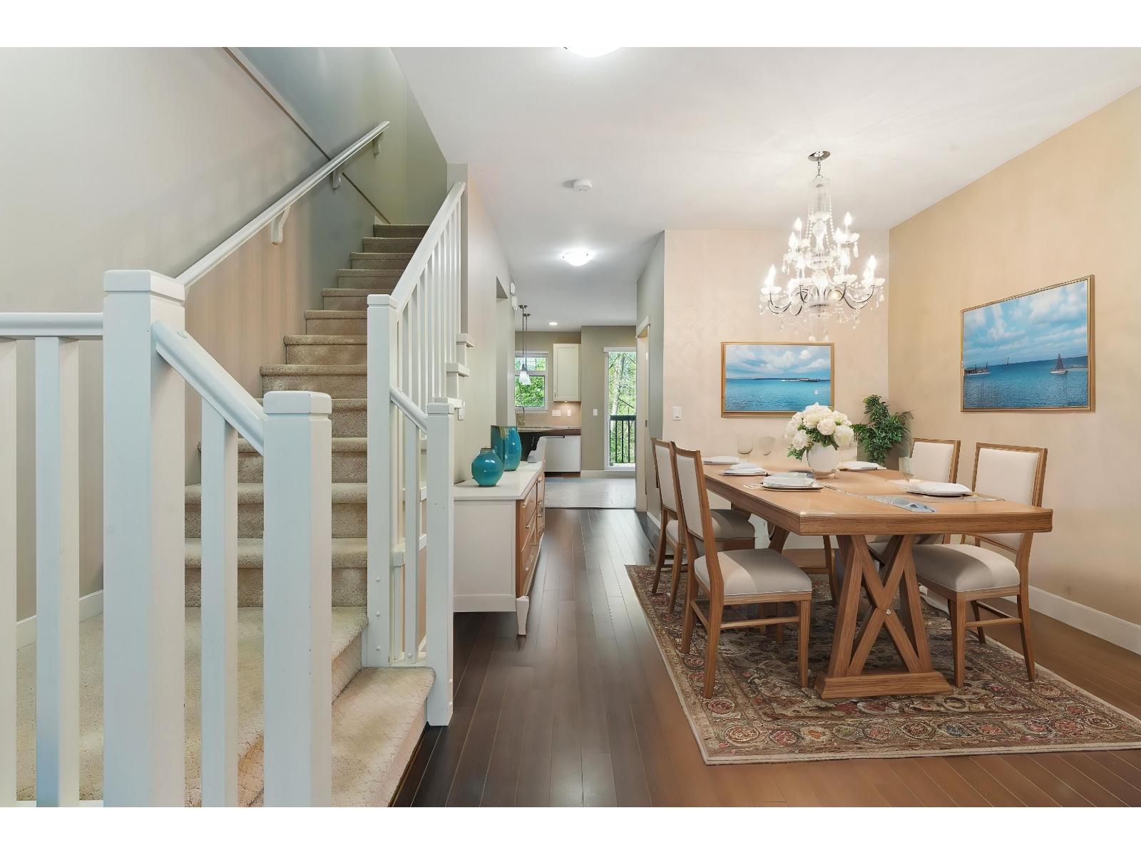 $486.41 MonthlyWelcome to Enclave - one of South Surrey's most desirable communities! This beautifully maintained 3-bedroom, 3-bathroom townhome offers a functional and stylish layout. The elegant kitchen features classic white cabinetry, a gas range, stainless steel appliances, and a large center island-perfect for entertaining. Enjoy the open-concept main floor with a cozy living room complete with custom built-in cabinetry and a convenient powder room. Upstairs you'll find full-size laundry, three generously sized bedrooms, and two full bathrooms. The oversized tandem garage provides extra space for a home office, gym, or potential fourth bedroom. Enjoy gardening or relaxing in your own private yard. Located in the catchment for Sunnyside Elementary and the highly regarded Semiahmoo Secondary. (id:52823)
